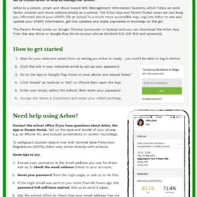 If you have any issues logging on or using the Arbor App or Parent Portal, please contact the school office.