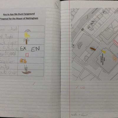 As part of Year 5's local history topic in Autumn 1, they used Digimaps to compare  historical land use with today.  They also made their own maps when creating their own fair on school grounds.  Children practised their field work skills at the Forest Recreation ground while Goose Fair was packing away!