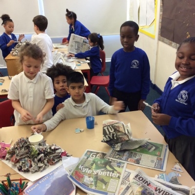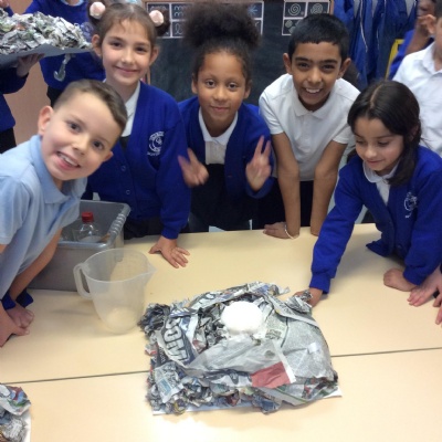 Year 3 making volcanoes on WOW day to kick of their topic on volcanoes