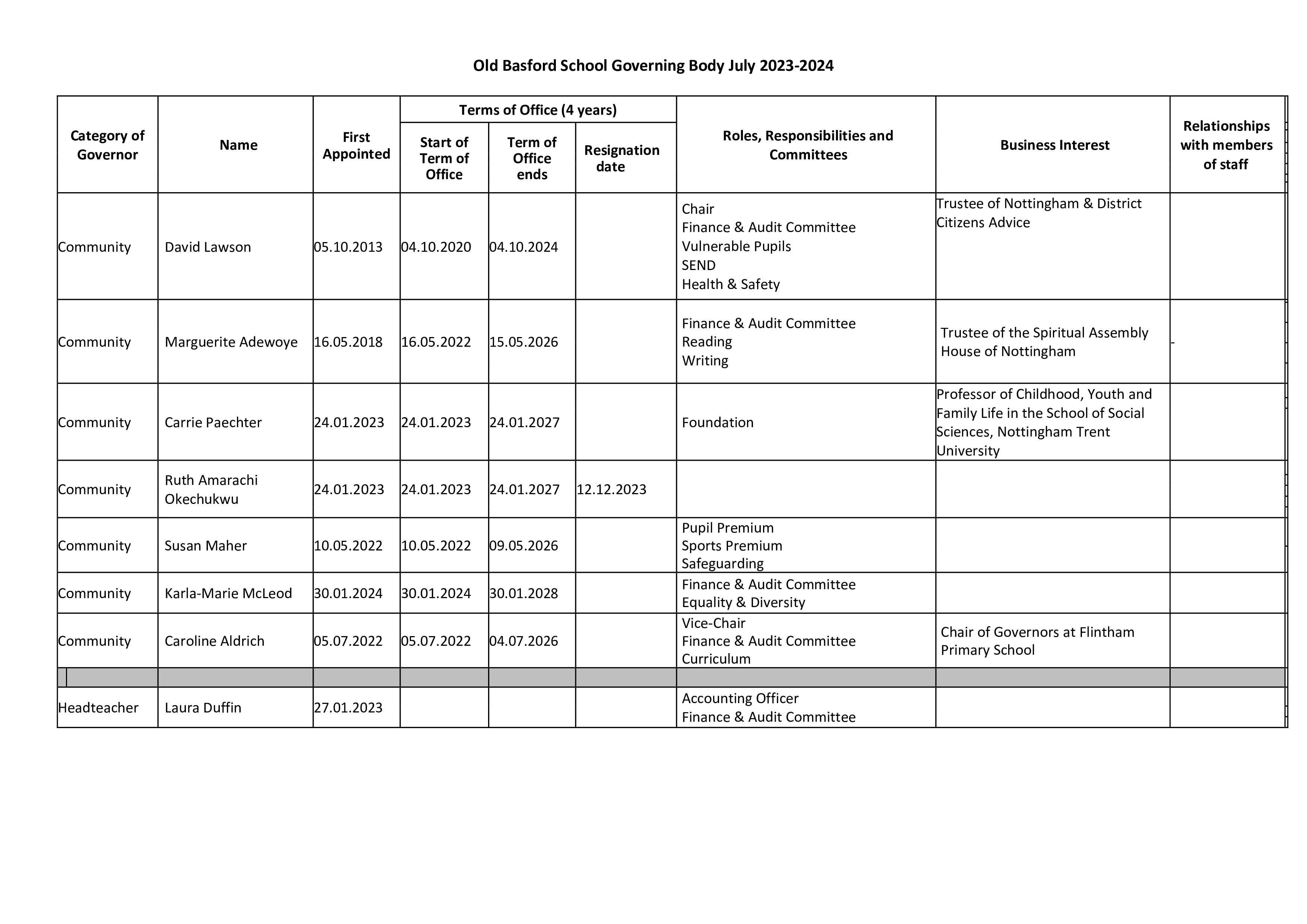 The Governors of Old Basford School are: