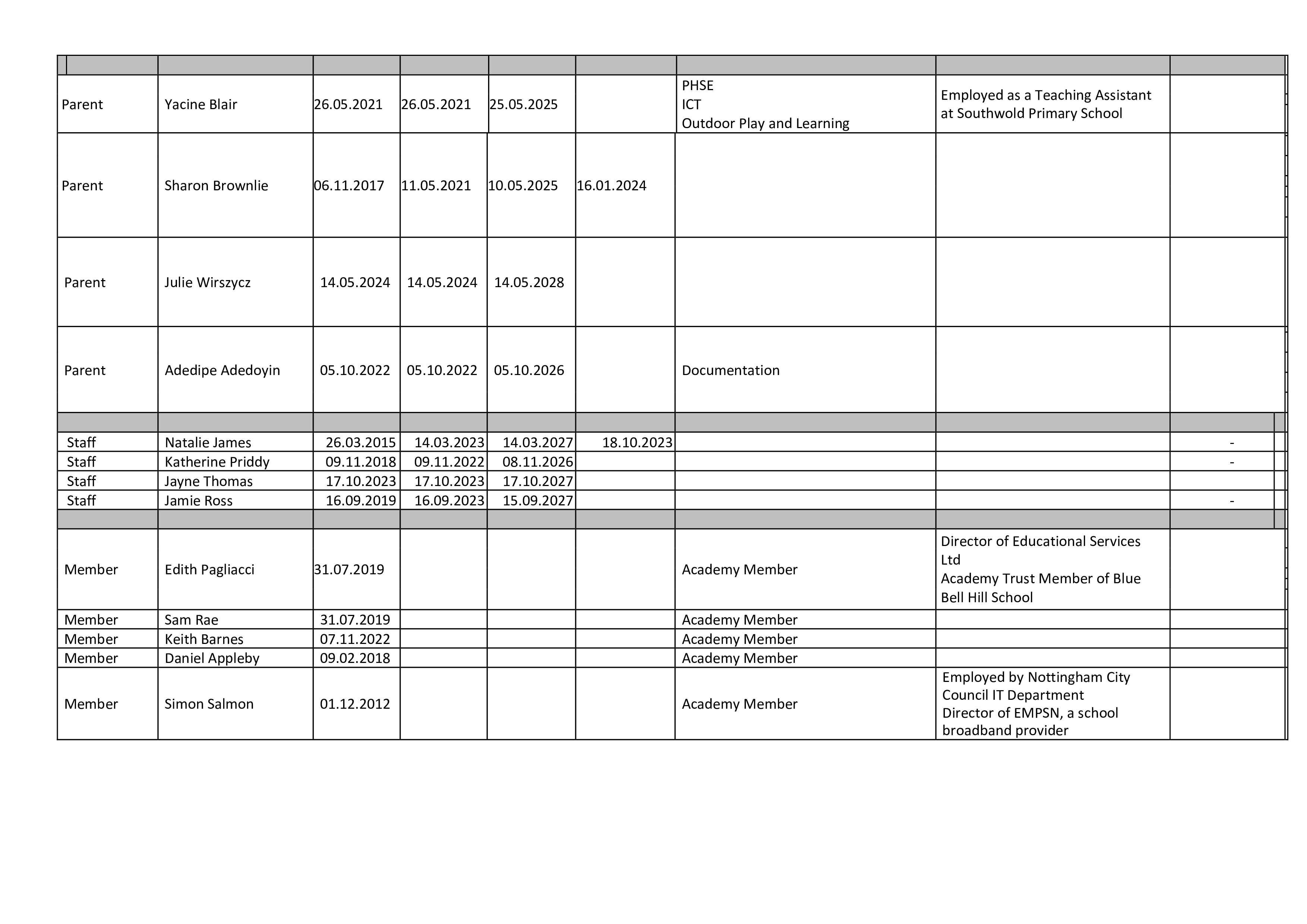 Staff Governors: