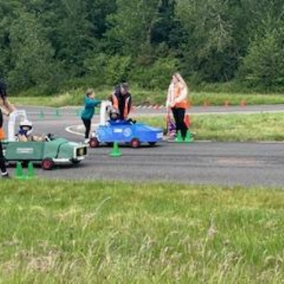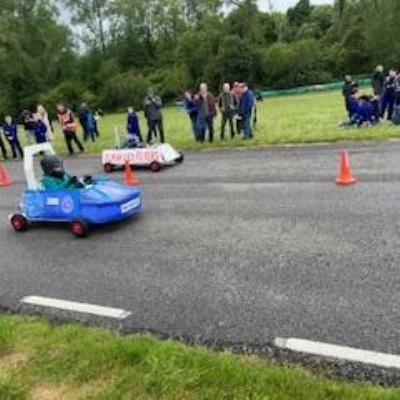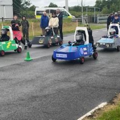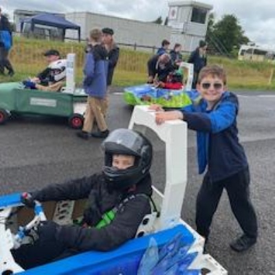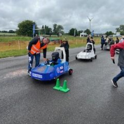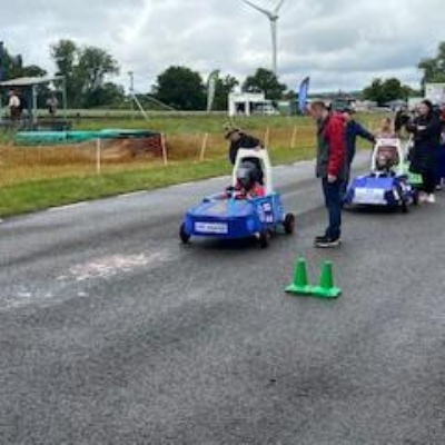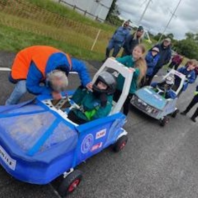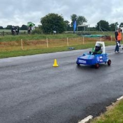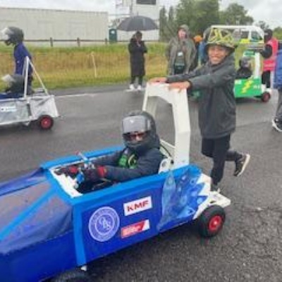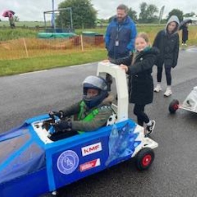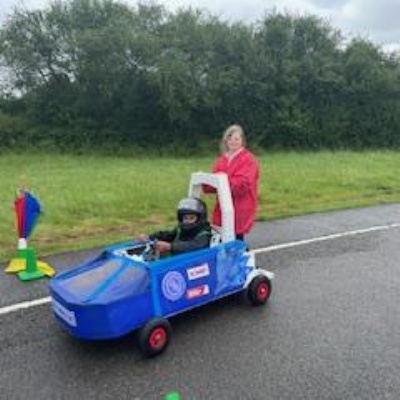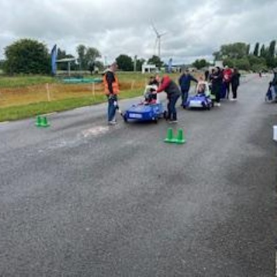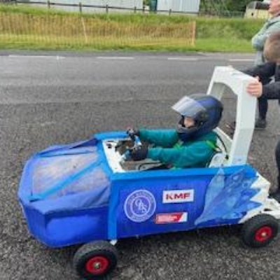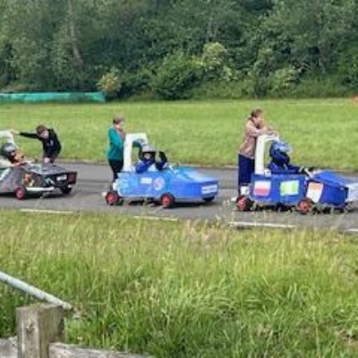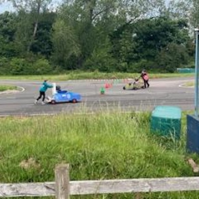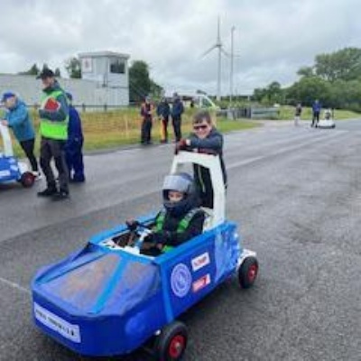 On Thursday 5th June the Kit car club children were part of the annual Greenpower Goblin Event in Lichfield. There were 25 other schools involved in the event all with their own kit cars. The races were divided into drag races (straight sprints) and slalom races. Each race needed a driver and a pusher. The races looked daunting to our children at first as the courses looked so different to our school playground! At first the children were nervous to have a go but eventually they all plucked up the courage and they all had at least one turn at driving. In the afternoon each school entered a timed race around the whole track, then competed against another school in the following rounds. We were so proud to reach the final 8, which is a fantastic achievement for our first time in the competition. In fact we were as "proud as peacocks"!