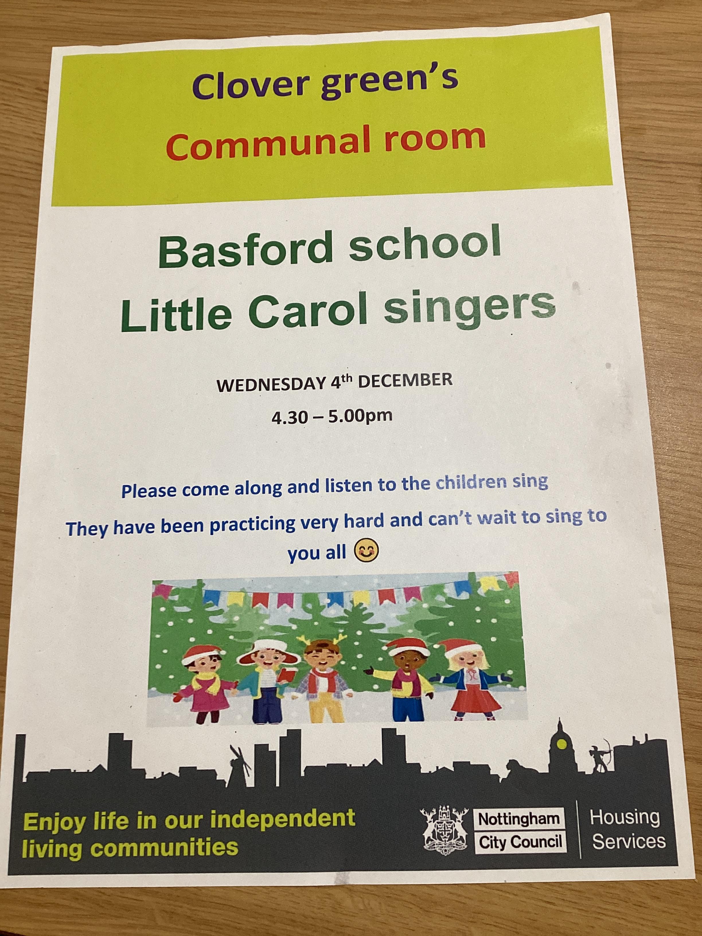 On Wednesday 4th December, Choir Club were invited to join Nottingham City Council members to sing Christmas Carols, help decorate the Christmas tree and watch the Christmas lights turn on at the Broad Walk Garden (opposite the fire station.) The children then sang to the residents at Clover Green and enjoyed some festive mince pies.