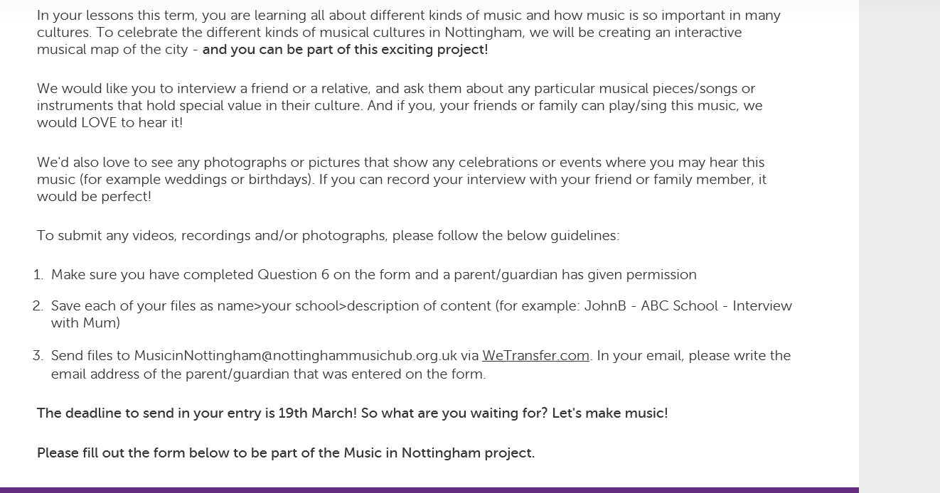 Did you know Nottingham is one of the most diverse cities in the country? We have such an exciting mix of different cultures and each culture has its own kind of music. To celebrate these rich musical traditions, we are launching an exciting project called Music in Nottingham!