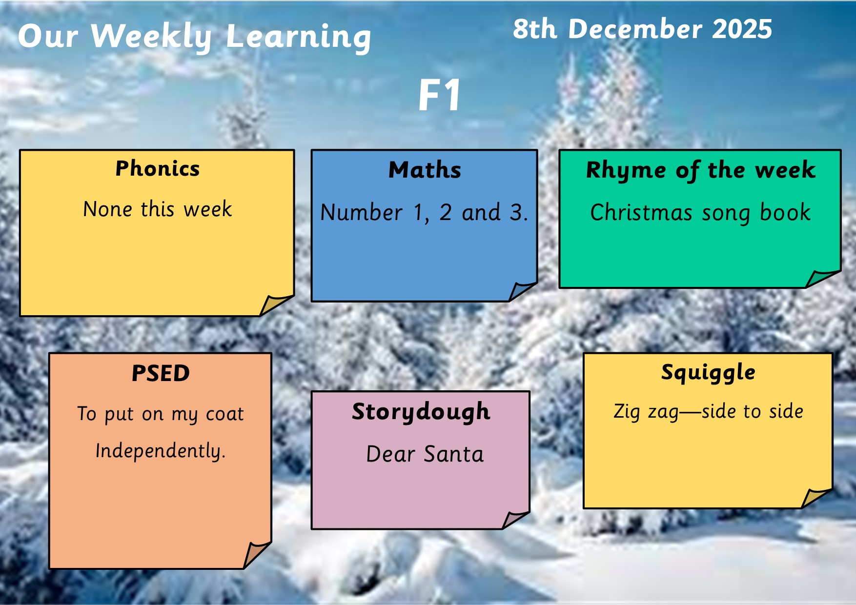 Wow, what a busy week in Nursery! We started our week with our Christmas sing-a-long, I'm sure you will all agree that our children did an amazing job, they all sang so beautifully - it was so wonderful to see and hear! On Thursday, we had our Christmas 'Stay and Create', a huge 'thank you' to you all for taking the time to come into Nursery and create with your child, they absolutely loved the Christmas crafts and we hope you did too! We are now approaching our final week of school and your child has completed the first term of the academic year. The Nursery Team are so proud of the children's resilience, they really have embraced Nursery! Next week we have our PROUD assembly on Tuesday at 11am, each child will be awarded a certificate to celebrate their achievements in Nursery - it would be lovely to see you all there. On Thursday, we have our Nursery Christmas Party - children can come to school in party clothes but please remember we will be going outside so sensible shoes will be needed. If you haven't already done so, please could you send your child to school with a £1 contribution, this will help greatly with the cost of party food.