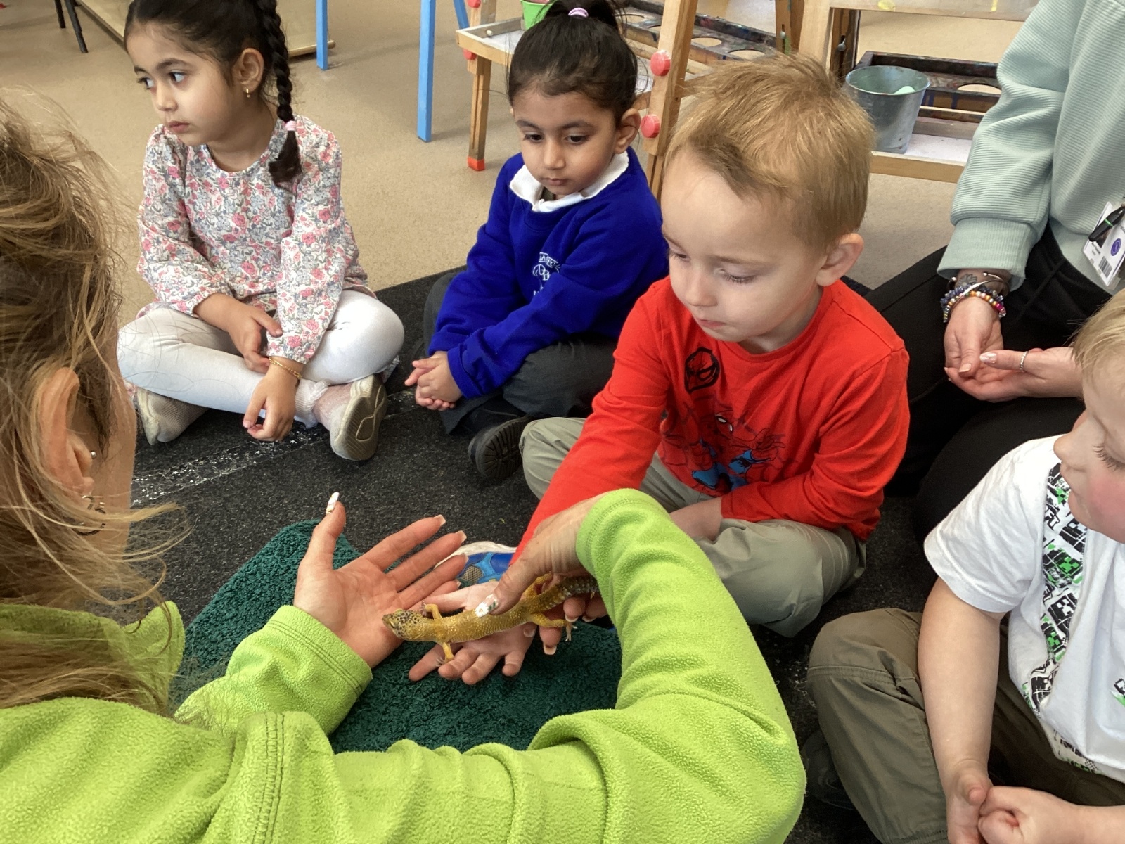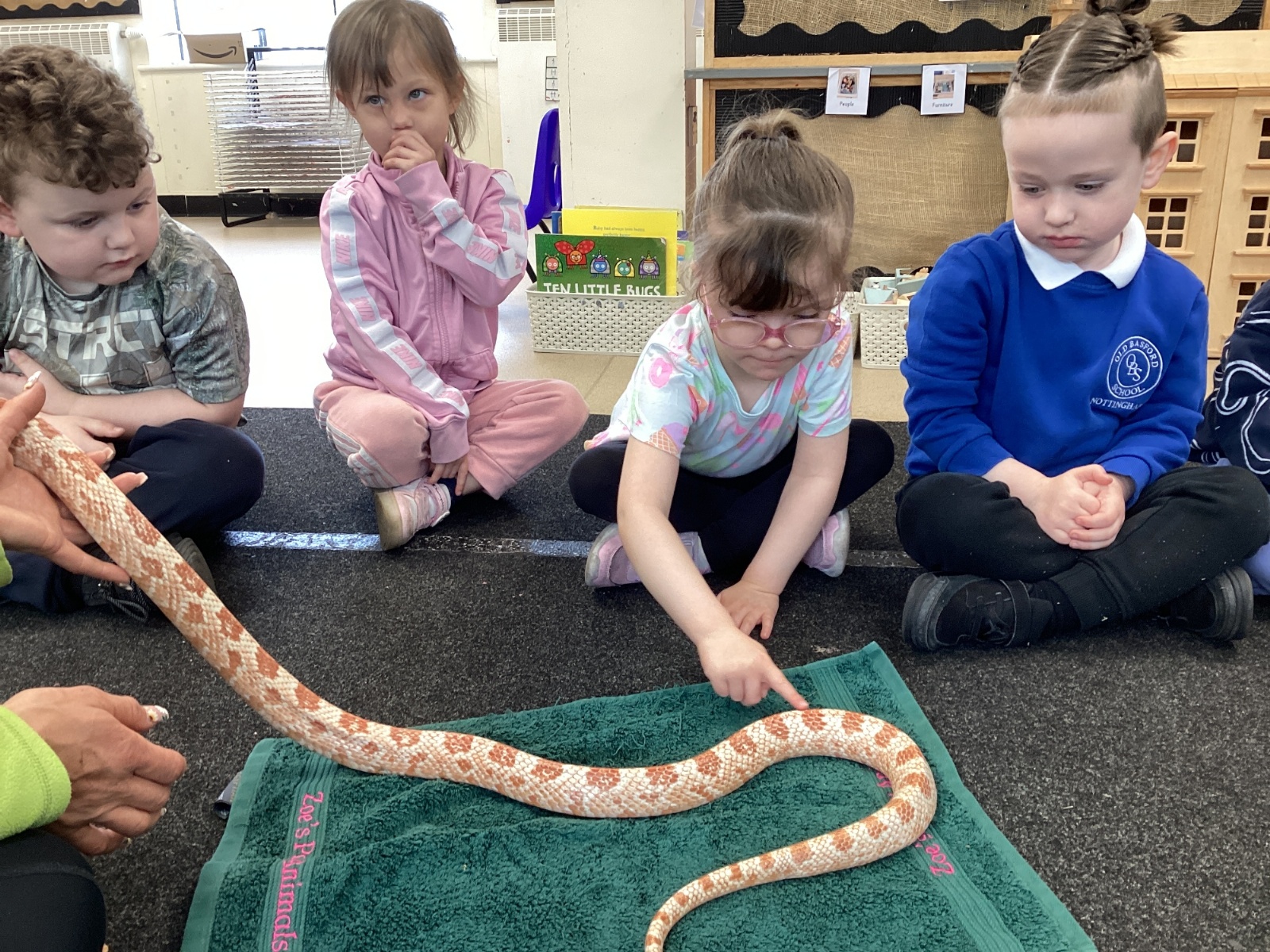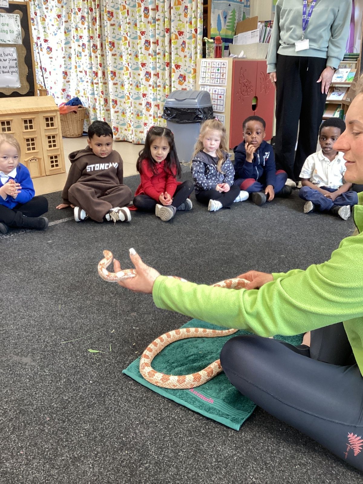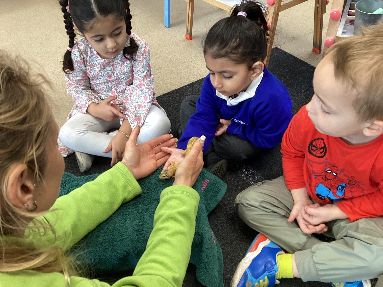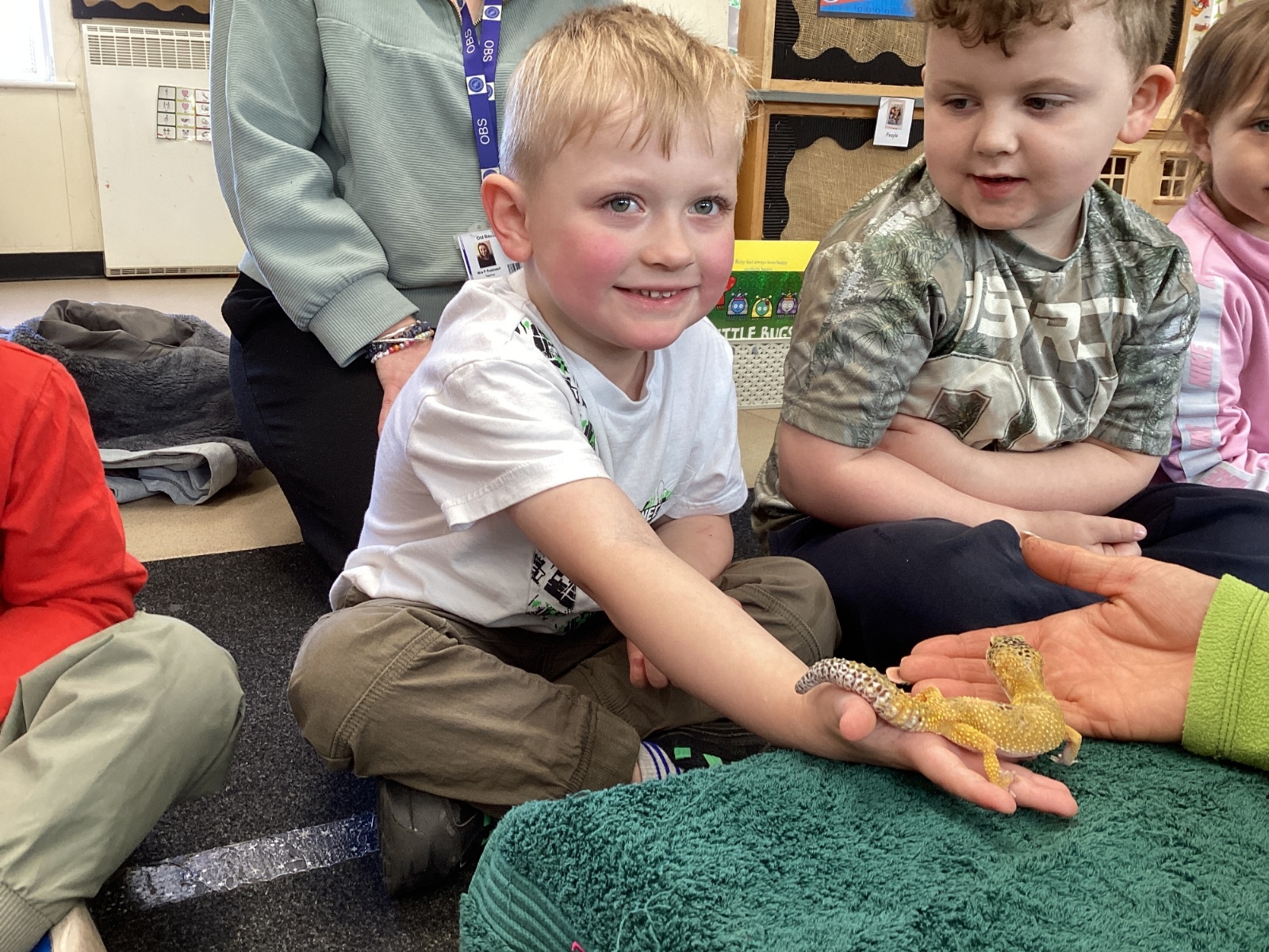 What an exciting week we have had in Nursery! This week we had Zoe and her Party Animals join us for a animal handling experience and we all loved it! Children got the chance to hold a lizard, stroke a snake and feel the little legs of a millipede tickle their fingers. The resilience from our Nursery children was amazing, every child had a go despite showing some nerves.