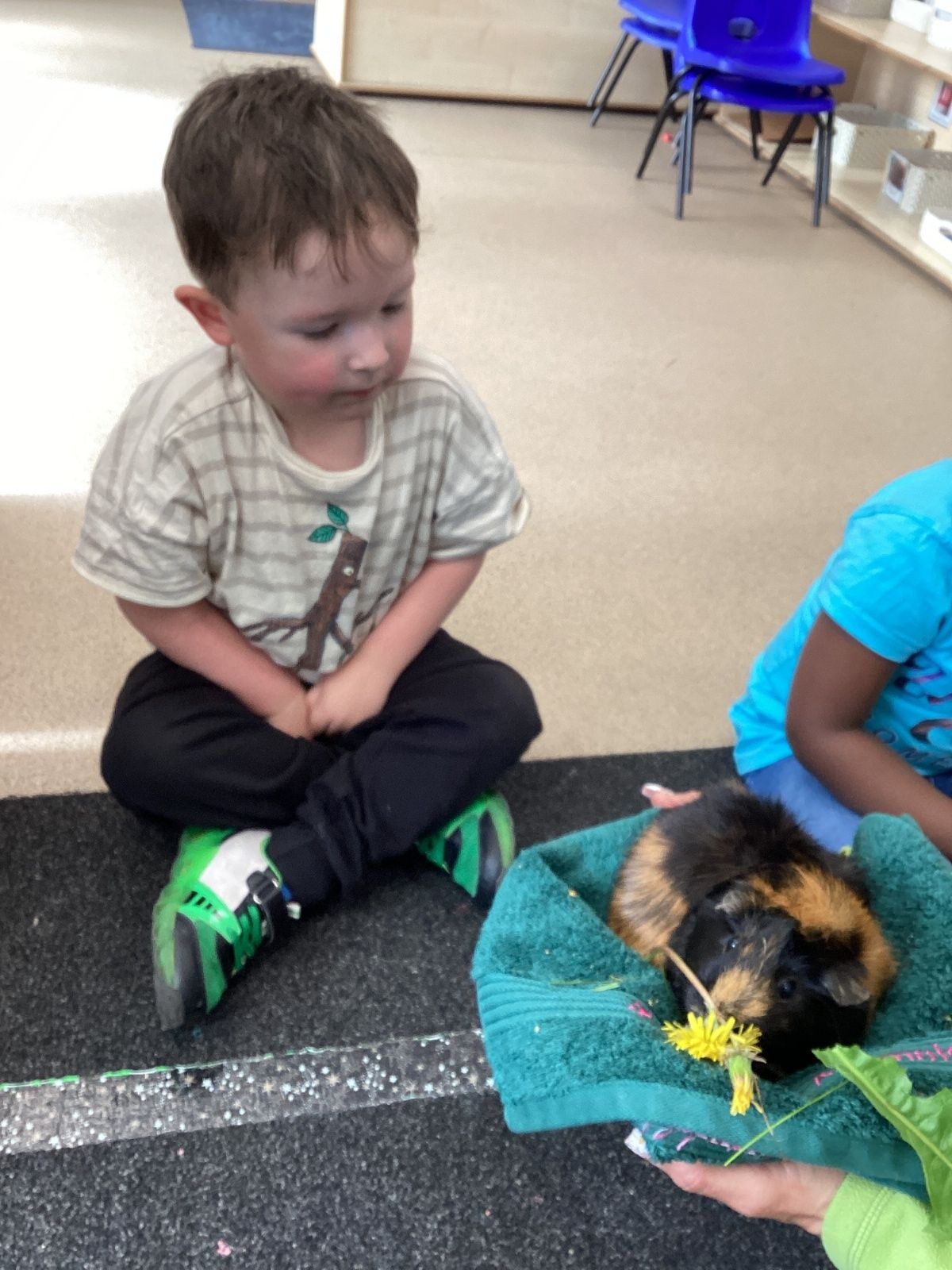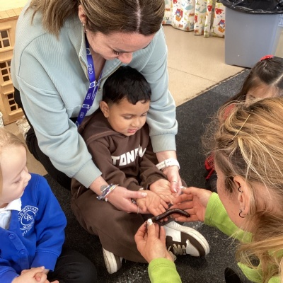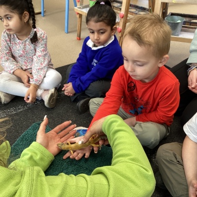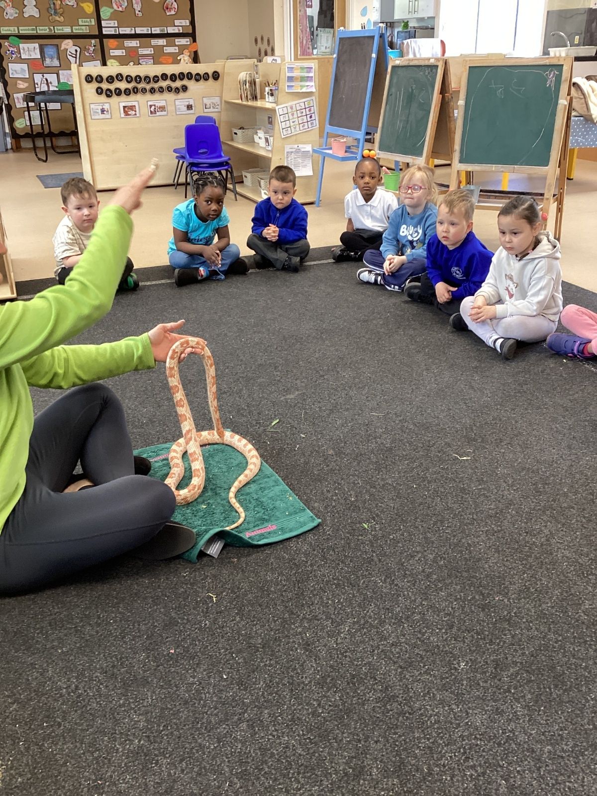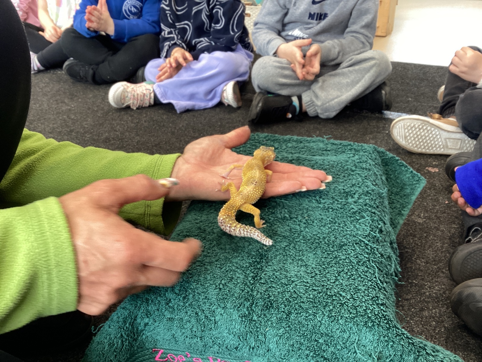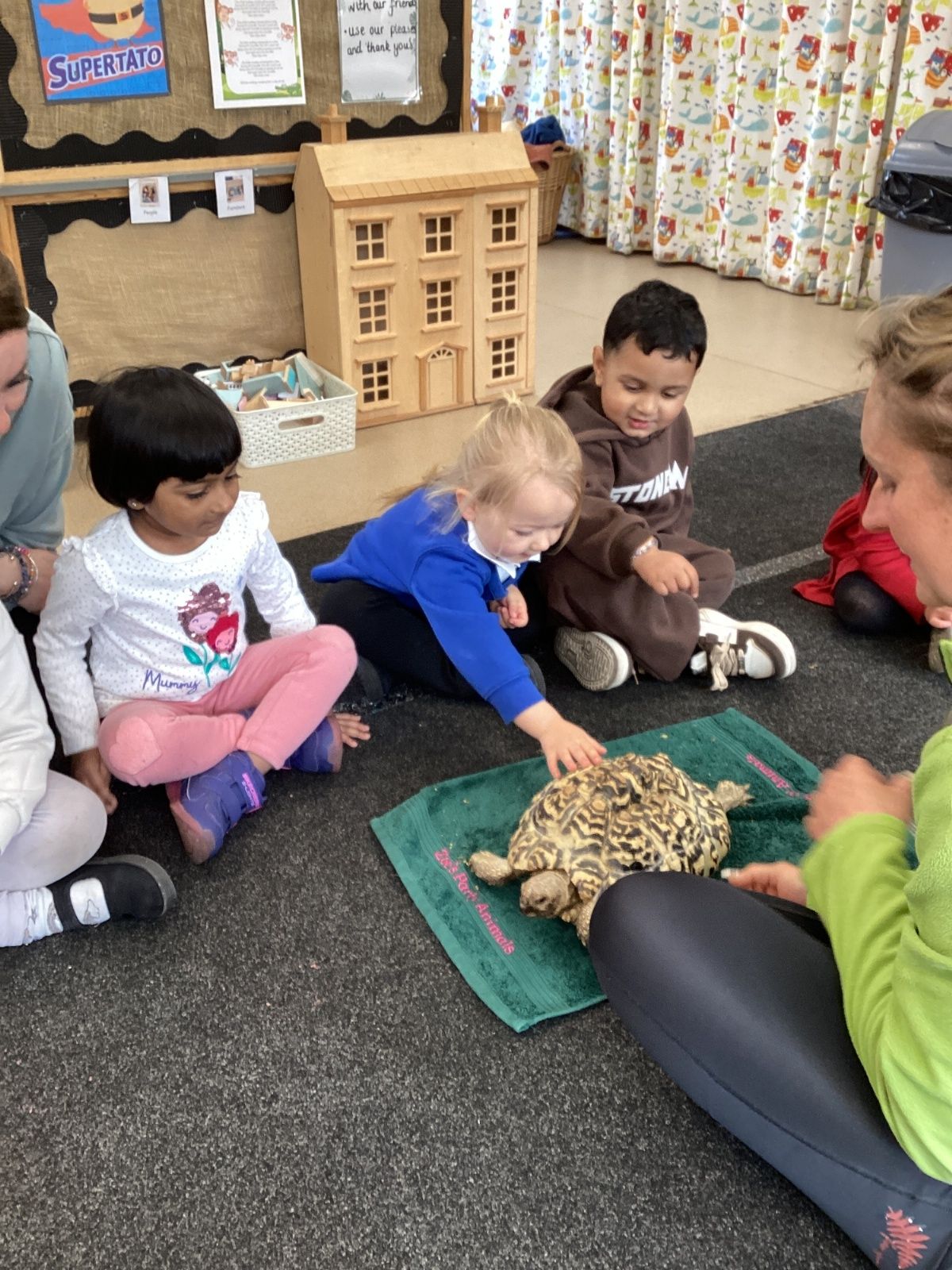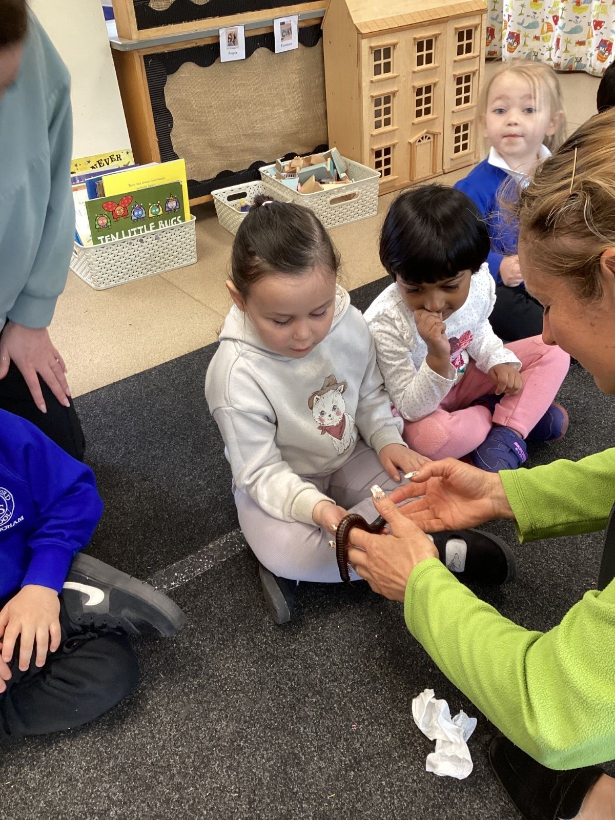 What an exciting week we have had in Nursery! This week we had Zoe and her Party Animals join us for a animal handling experience and we all loved it! Children got the chance to hold a lizard, stroke a snake and feel the little legs of a millipede tickle their fingers. The resilience from our Nursery children was amazing, every child had a go despite showing some nerves.