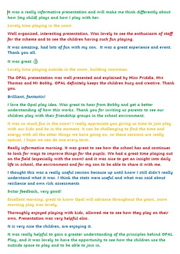 What a fabulous morning we had! Our parent event was a huge success and much fun was had in the snow. Please take a look at our gallery below and check out the feedback received from the parents who attended. We have fed back to Bobby and his response to us was just how special it was!