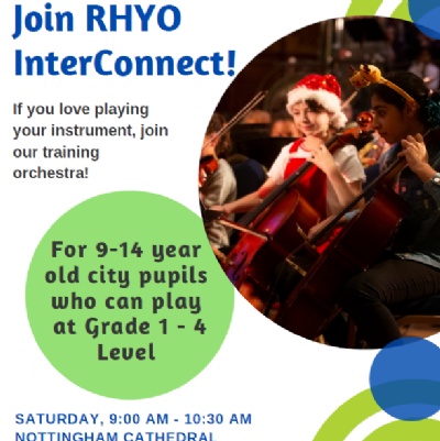 For pupils who play brass and woodwind instruments at around Grade 1+ Level. The group will meet once a week on Fridays, 4:30 PM - 5:30 PM at Nottingham Playhouse.