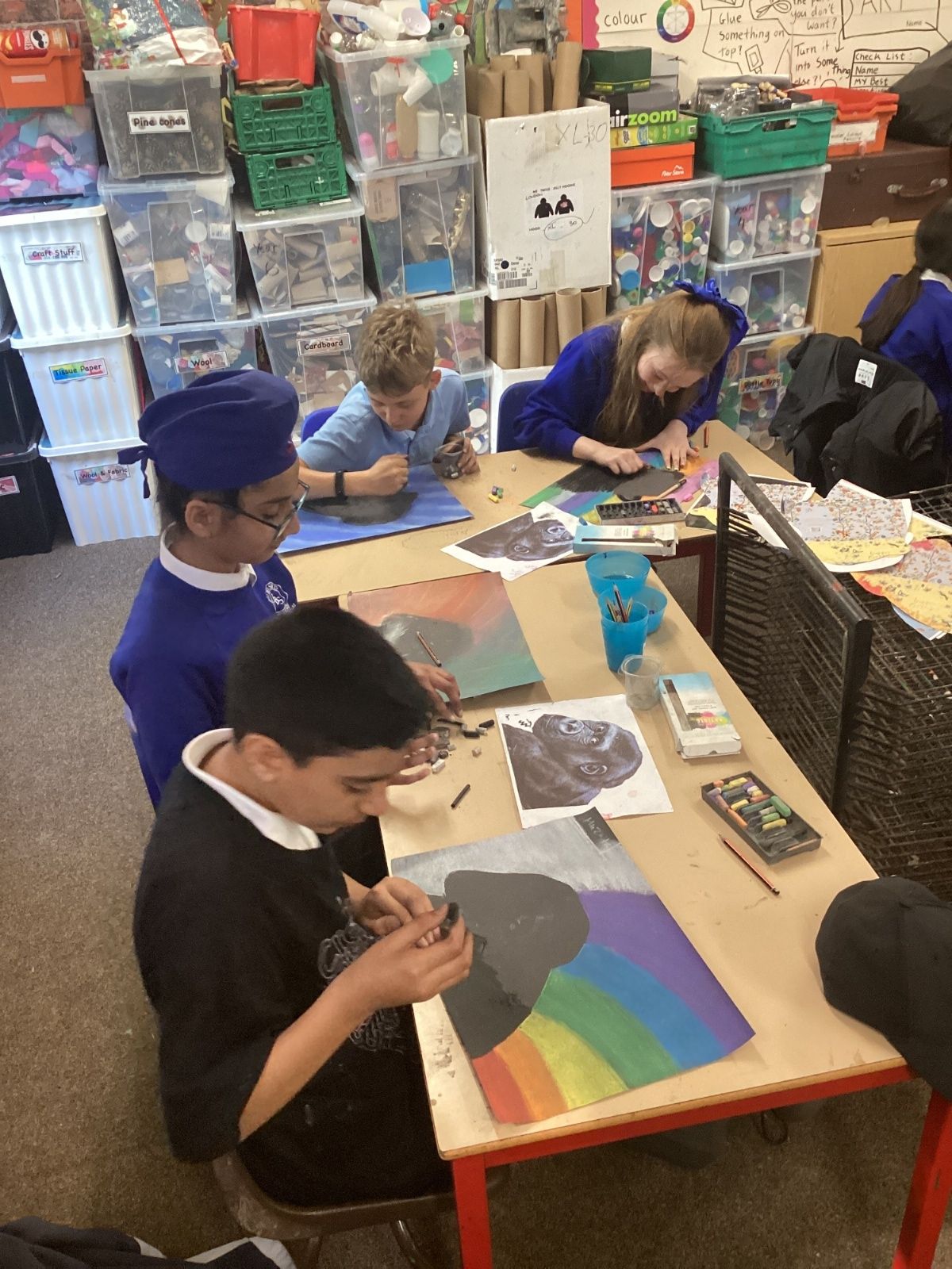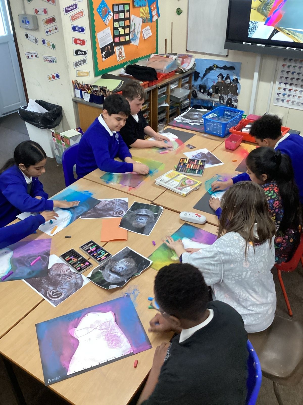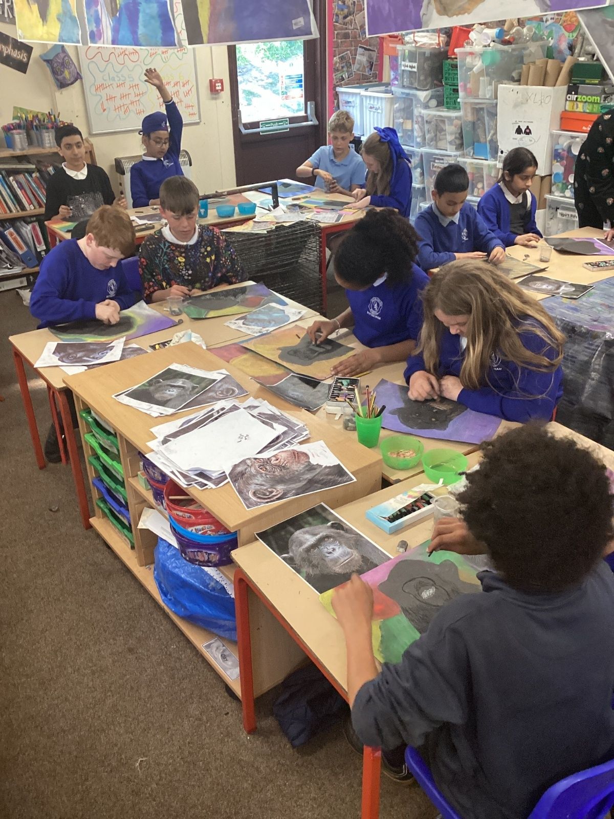 This week in art, we have been studying the artist Sophie Bliss who is a UK based professional wildlife artist. We looked at her pieces on gorillas and used oil pastels to create our own versions. To kick start our topic on 'Survival of the Fittest' we had a challenge afternoon where we had to complete various challenges but with some adaptations. For example, some children could only use one arm or some children had no voice! We had lots of fun but it was also a great way to learn about how animals adapt and how the strongest of the species will be the one to survive. Come and have a look these photos showcasing our week below!