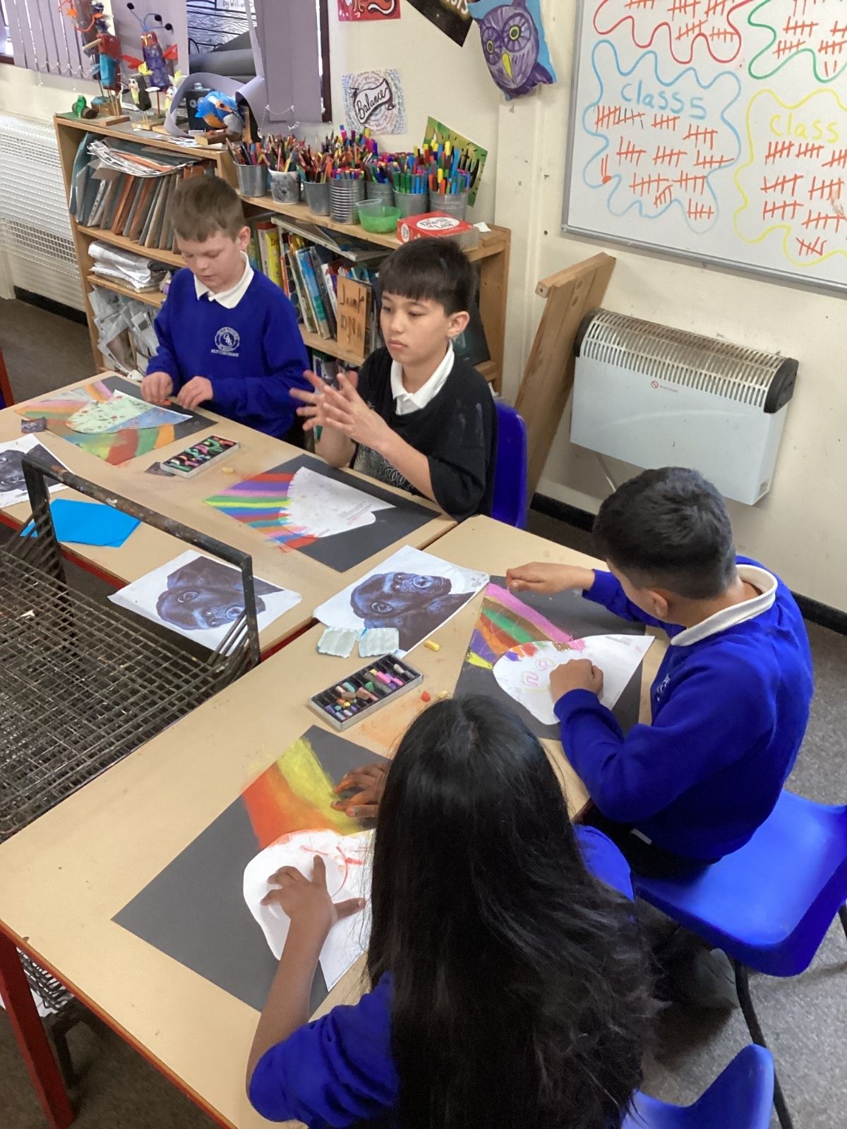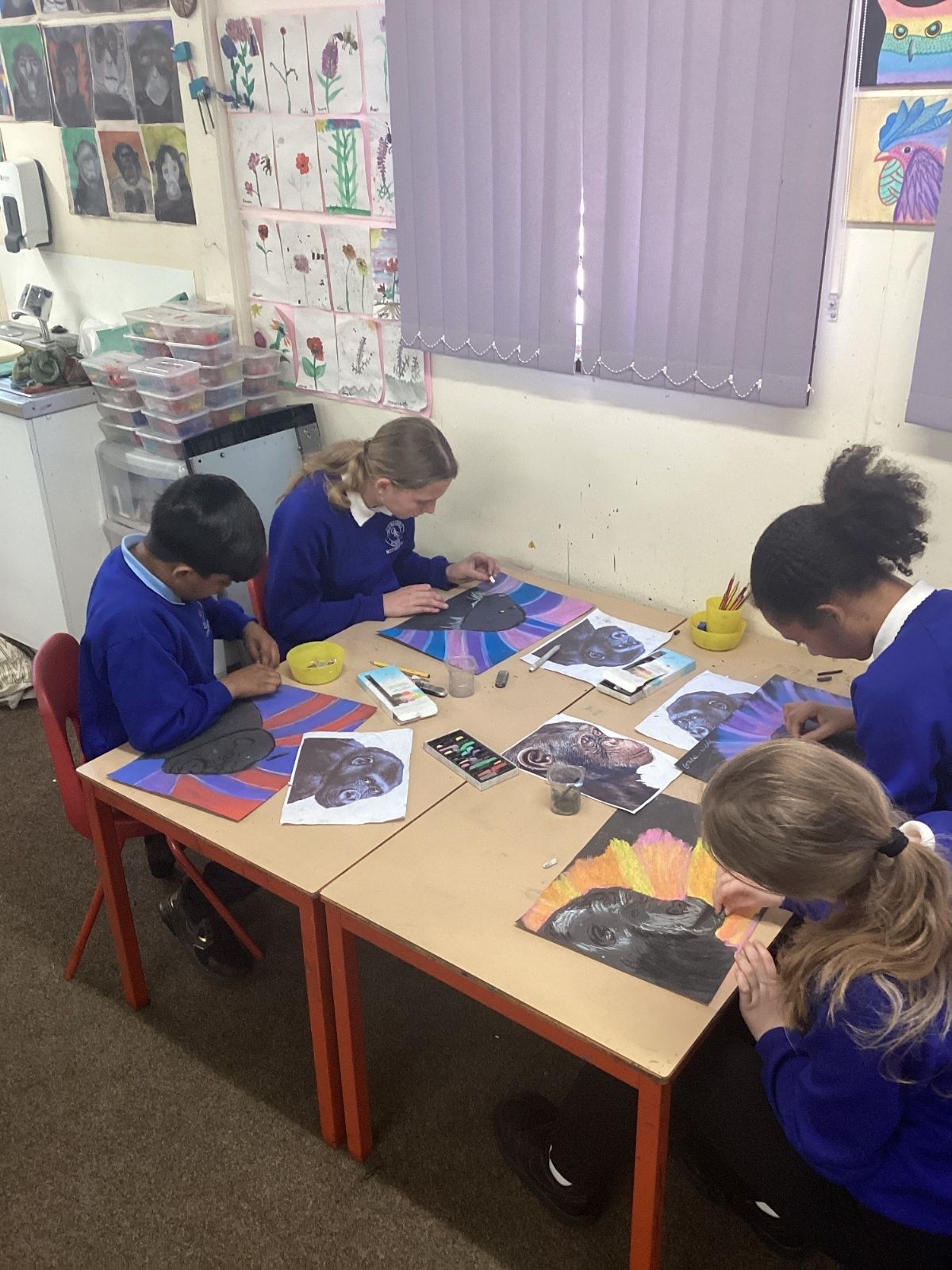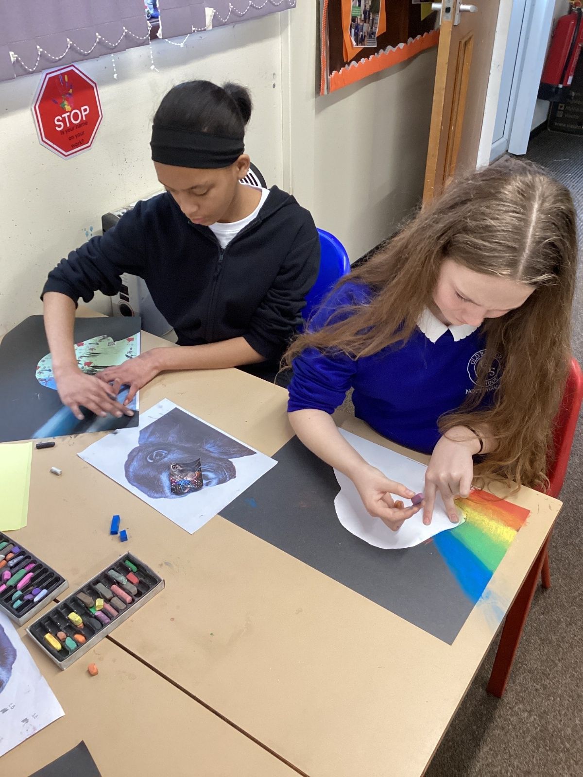 This week in art, we have been studying the artist Sophie Bliss who is a UK based professional wildlife artist. We looked at her pieces on gorillas and used oil pastels to create our own versions. To kick start our topic on 'Survival of the Fittest' we had a challenge afternoon where we had to complete various challenges but with some adaptations. For example, some children could only use one arm or some children had no voice! We had lots of fun but it was also a great way to learn about how animals adapt and how the strongest of the species will be the one to survive. Come and have a look these photos showcasing our week below!