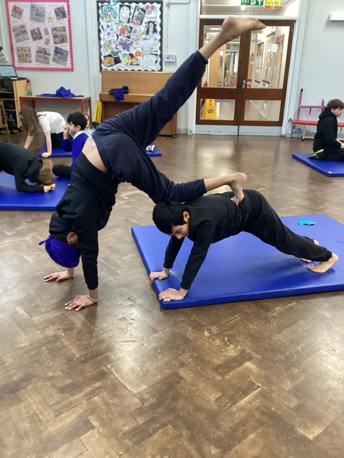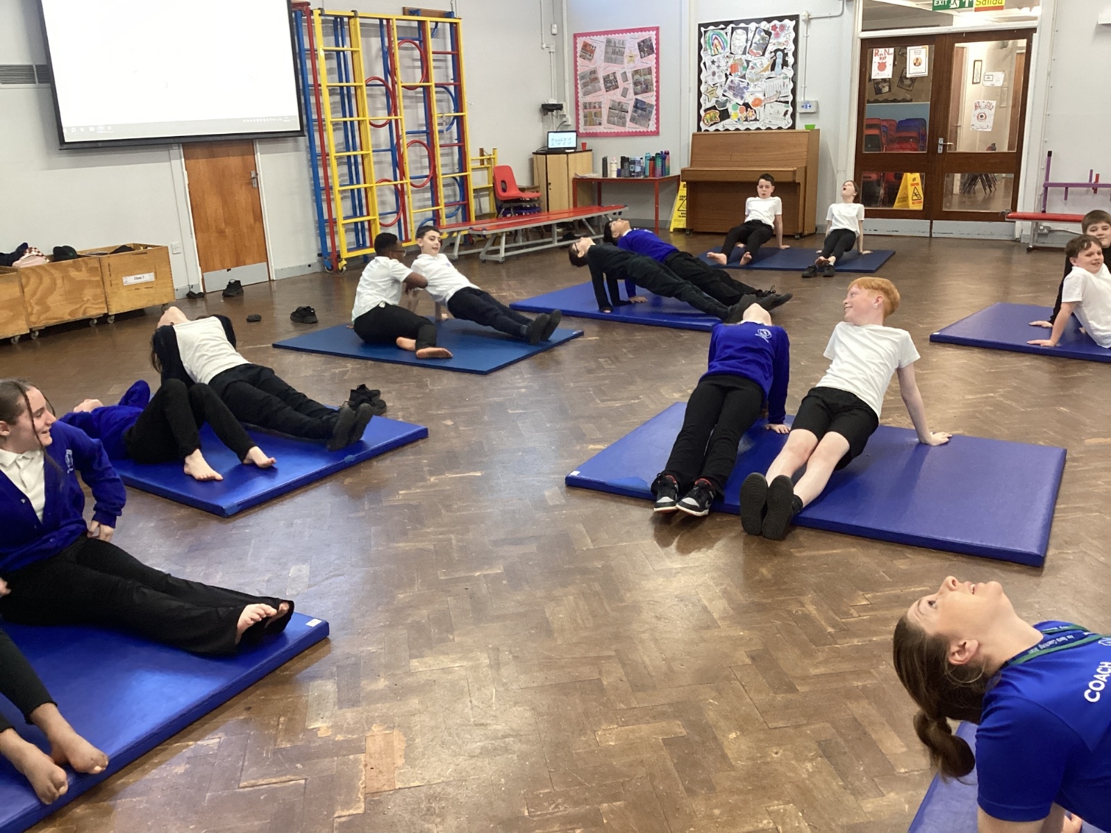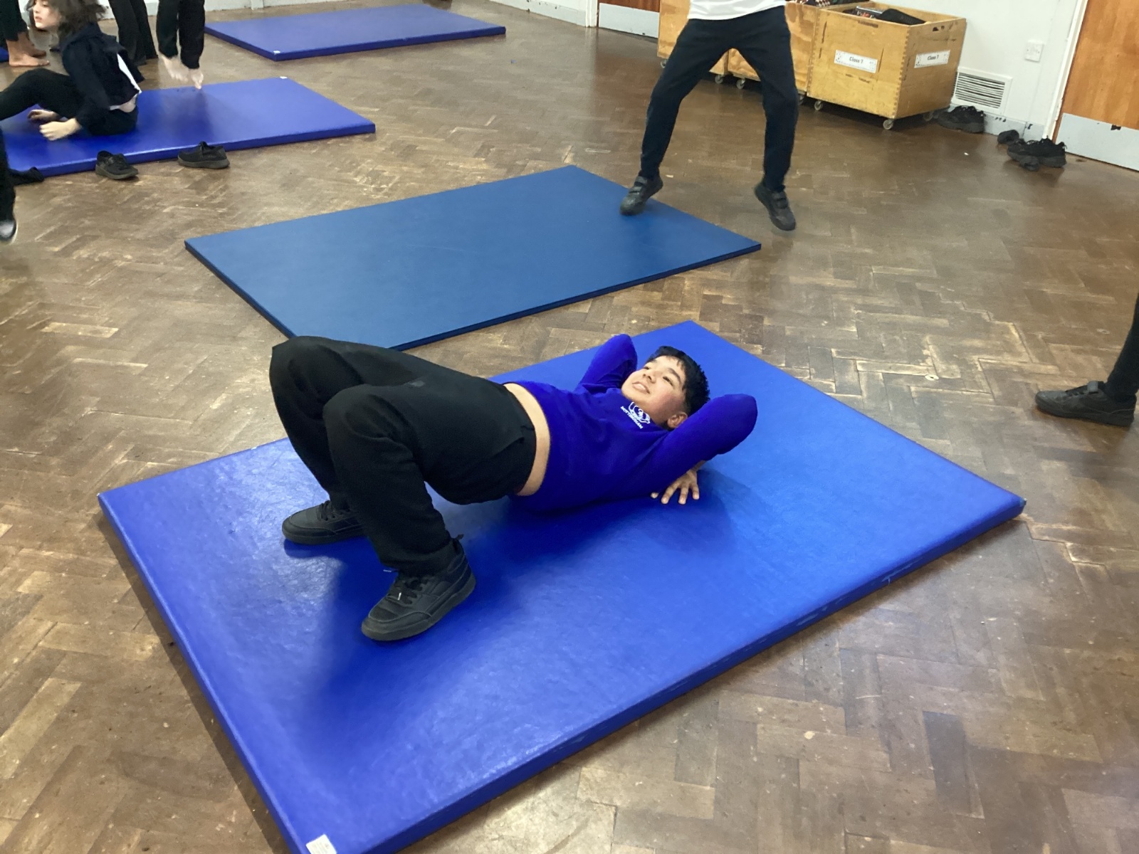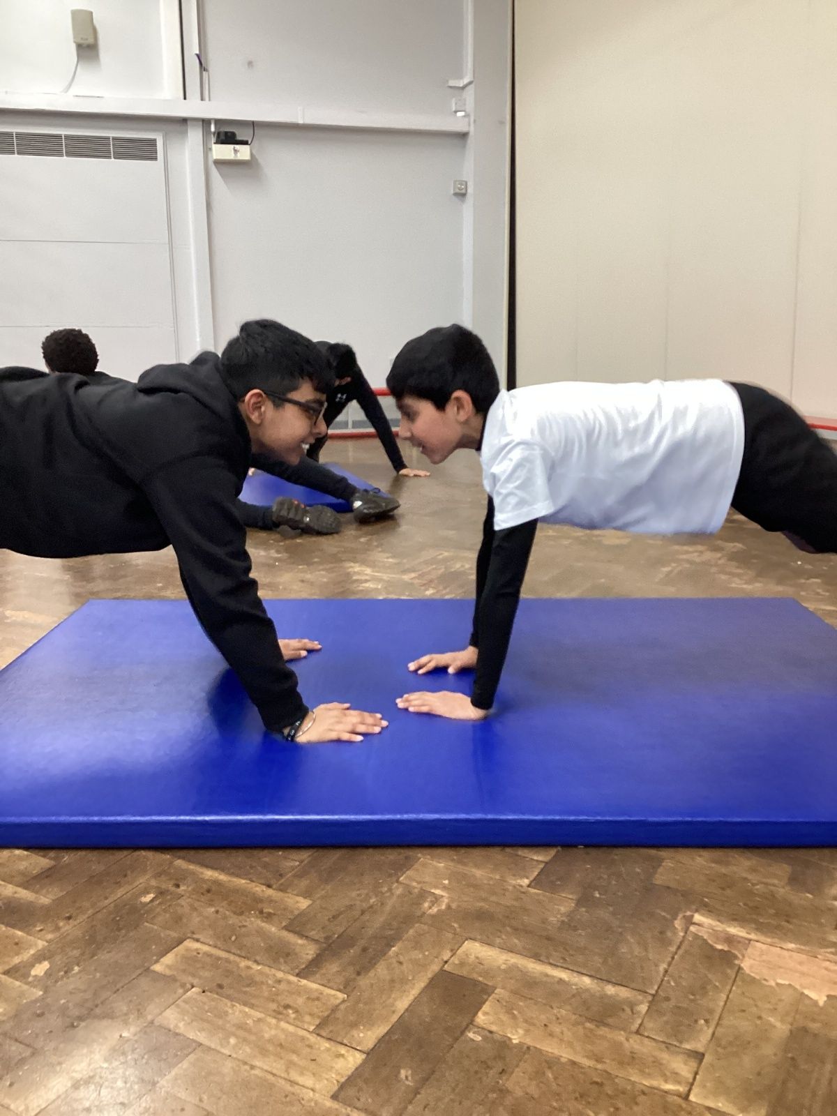 In our indoor PE session this week, we continued with our circuit training to improve our overall health and fitness. We worked in pairs and moved round a variety of stations completing each activity for one minute. This is our second week on our circuits unit so we were trying to beat our scores from last week. The activities included burpees, sit ups, tricep dips, the plank, star jumps and many more!