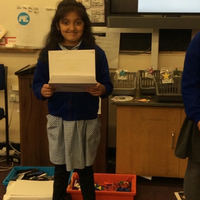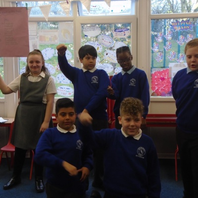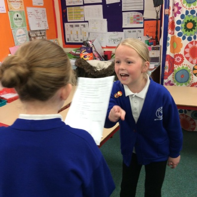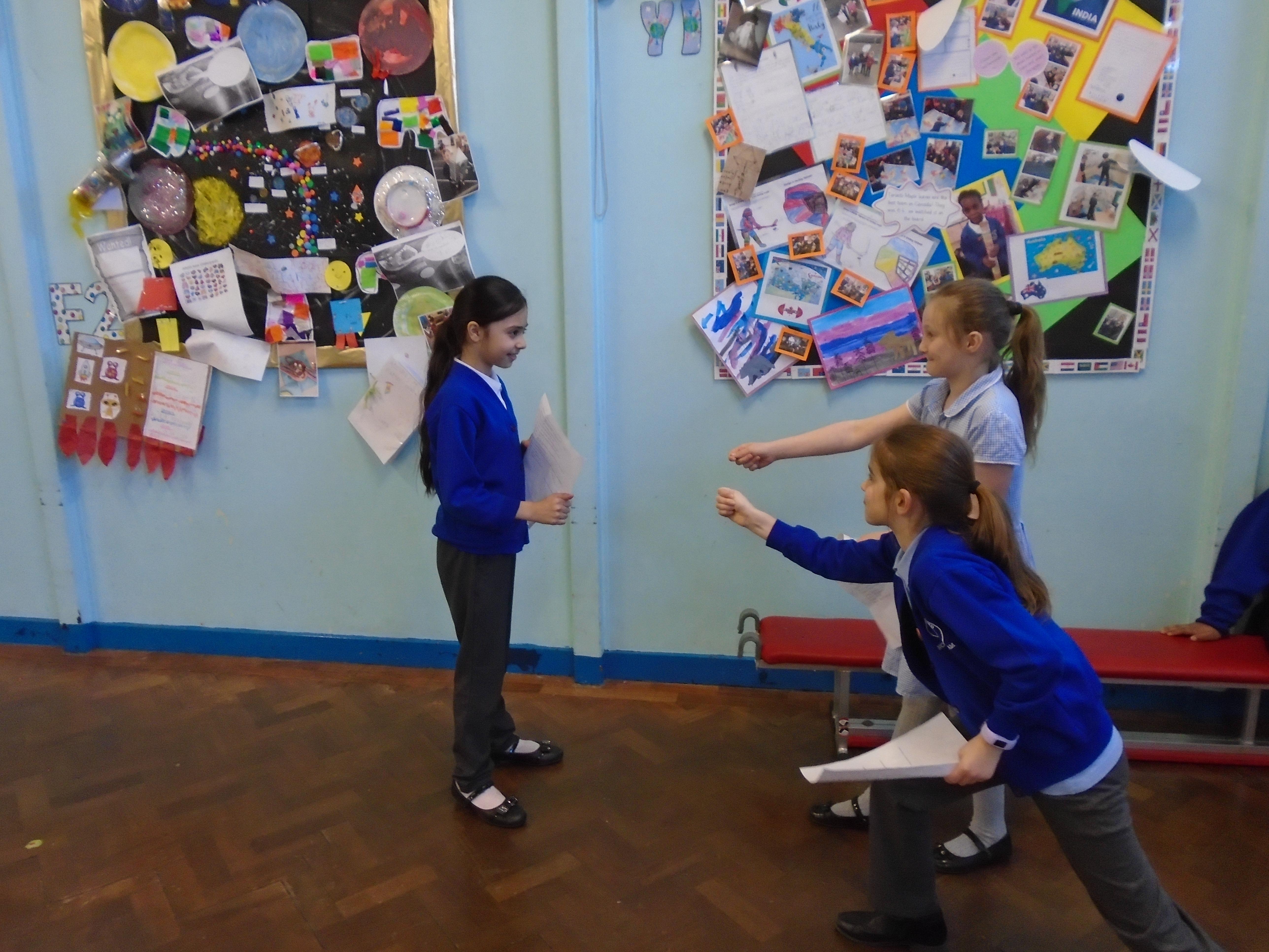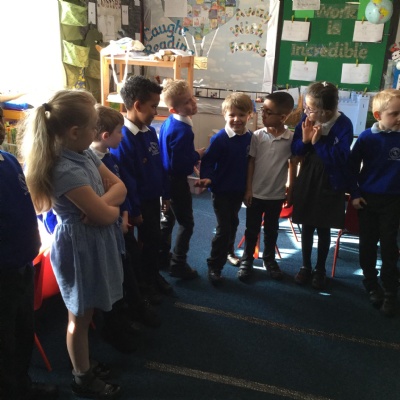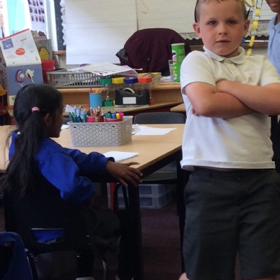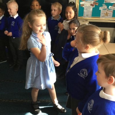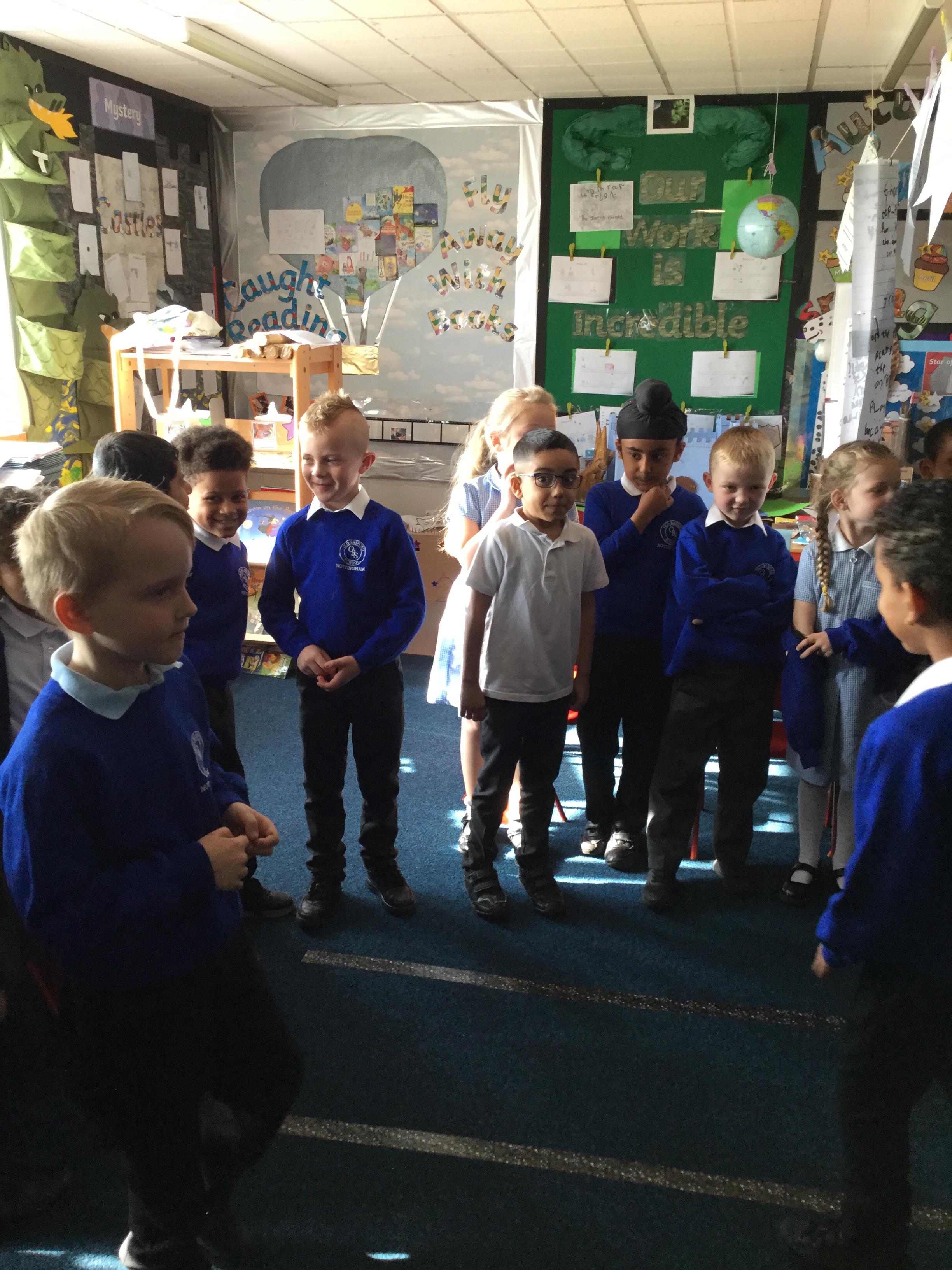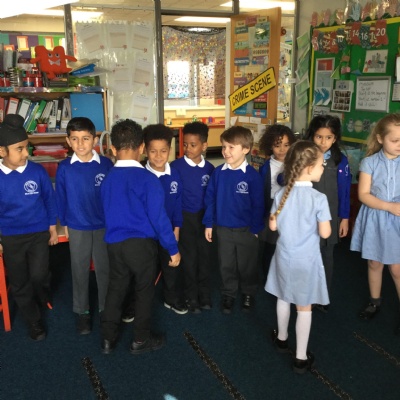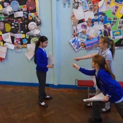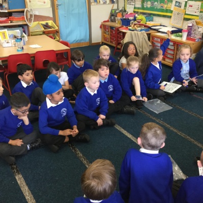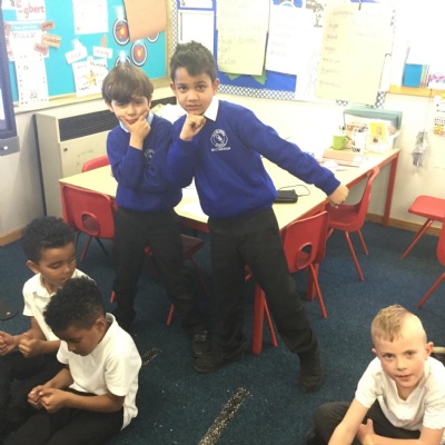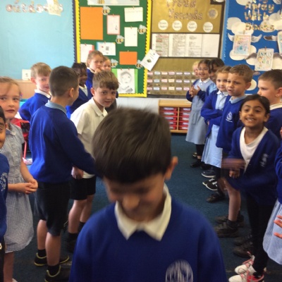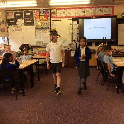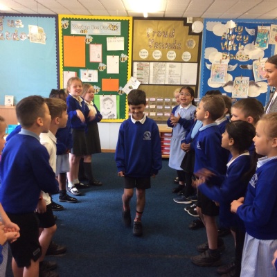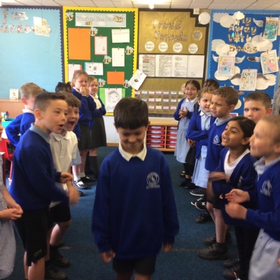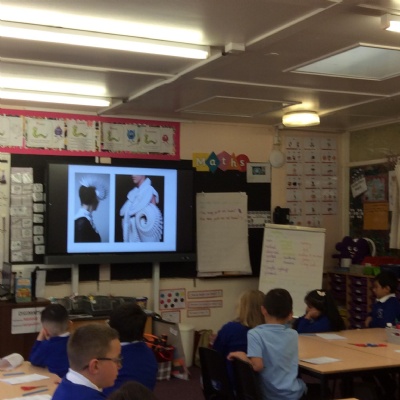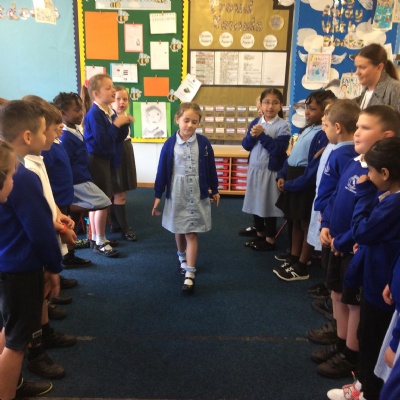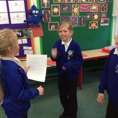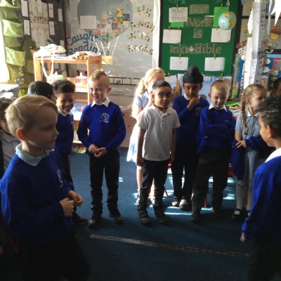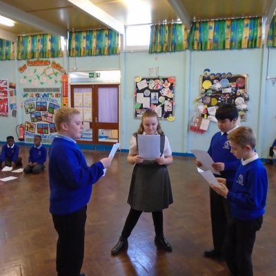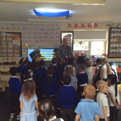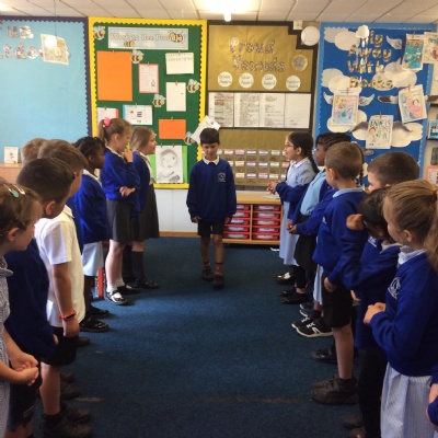 On 23rd April we celebrated Shakespeare's birthday in the school assembly. We helped Mrs Thomas by leading the assembly which was a 'guess who' game and the children guessed it was all about William Shakespeare. Look below at our assembly.