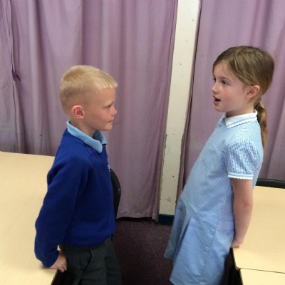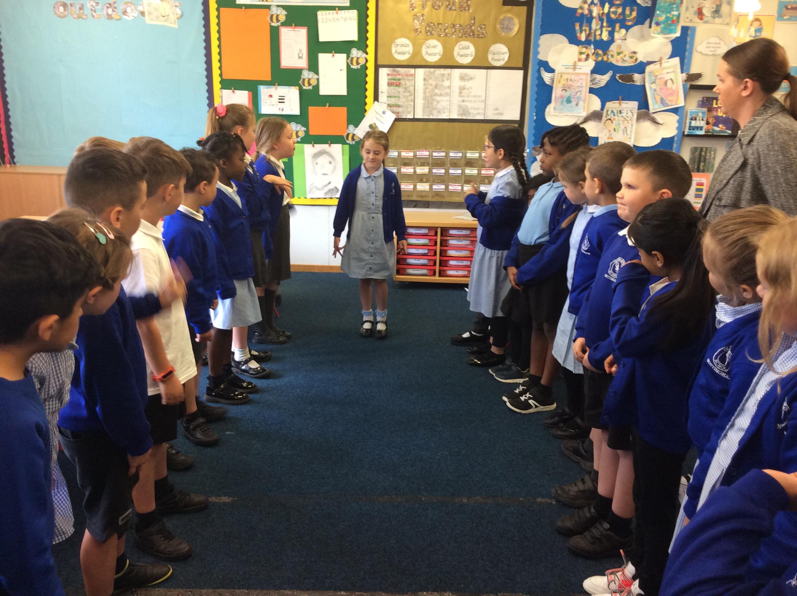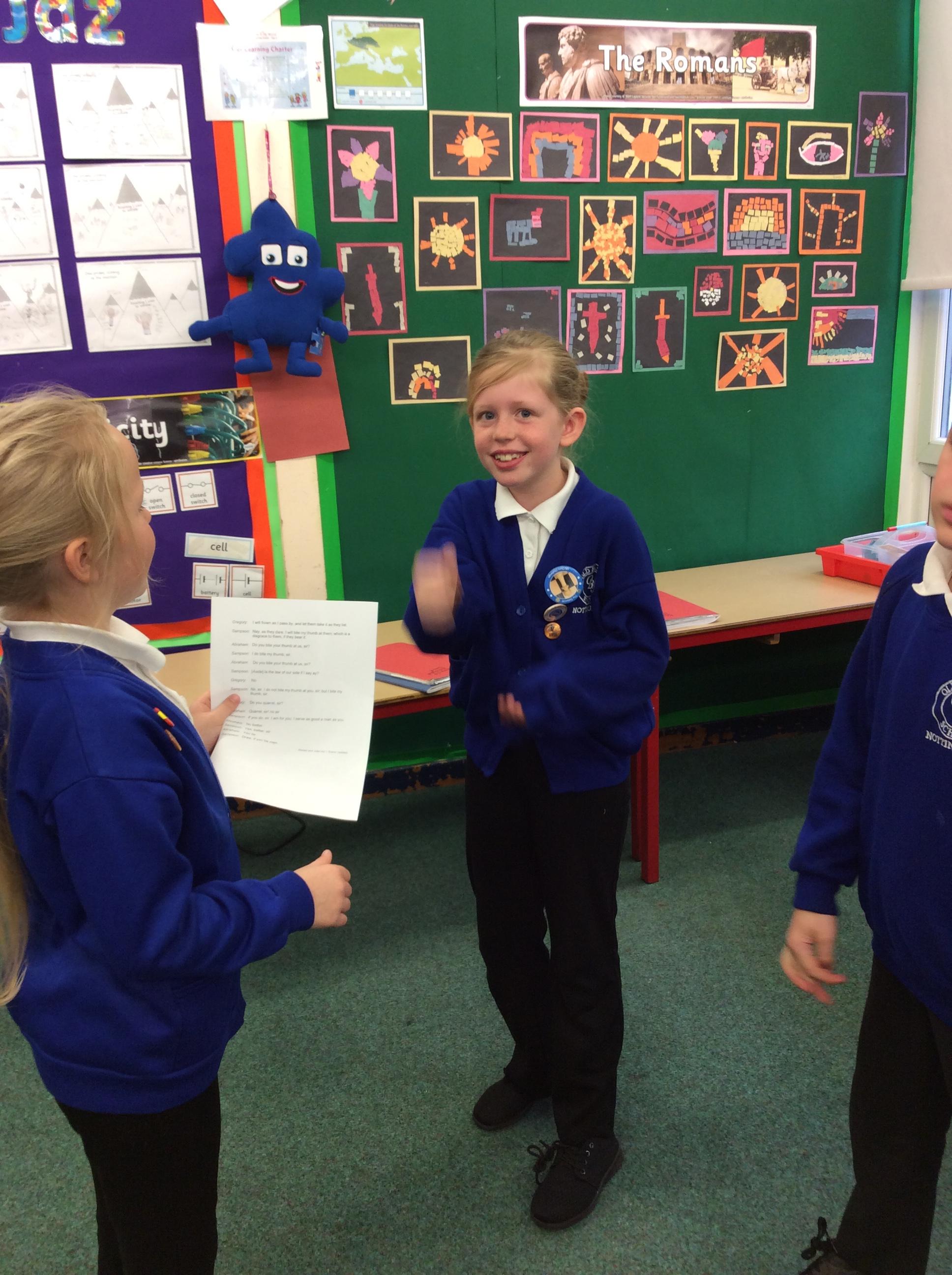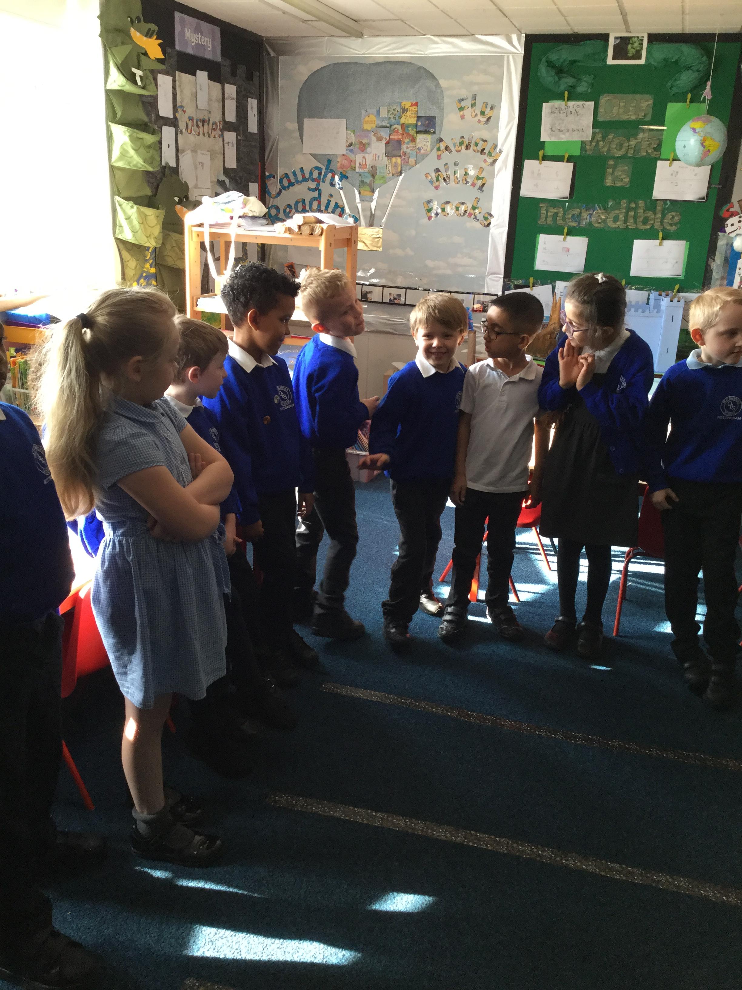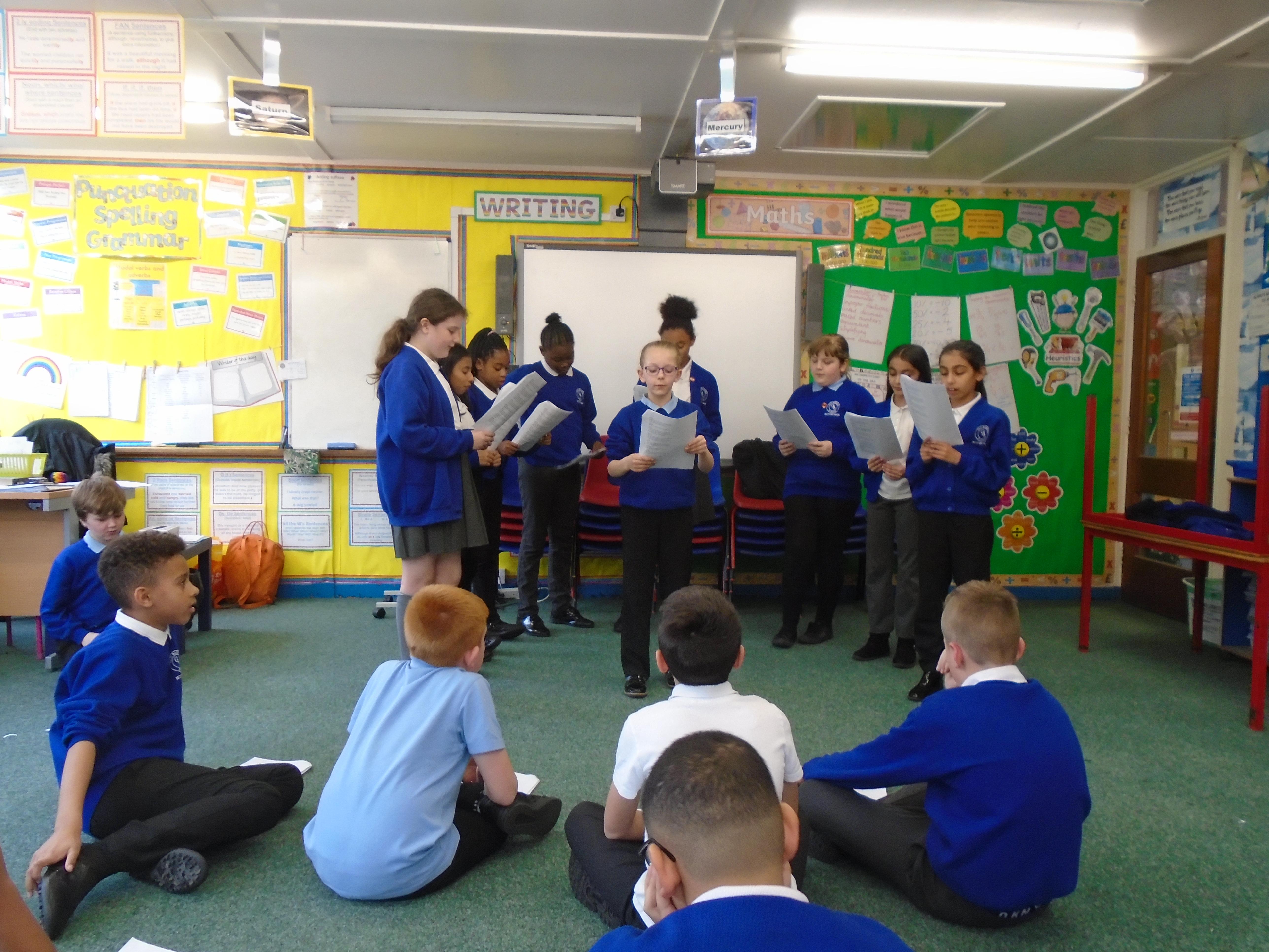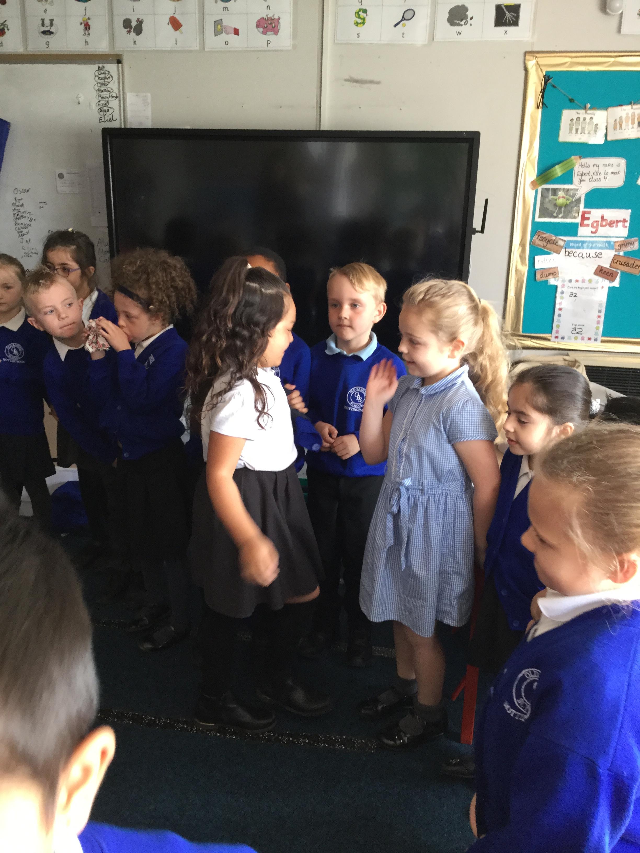 On 23rd April we celebrated Shakespeare's birthday in the school assembly. We helped Mrs Thomas by leading the assembly which was a 'guess who' game and the children guessed it was all about William Shakespeare. Look below at our assembly.