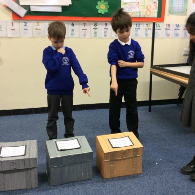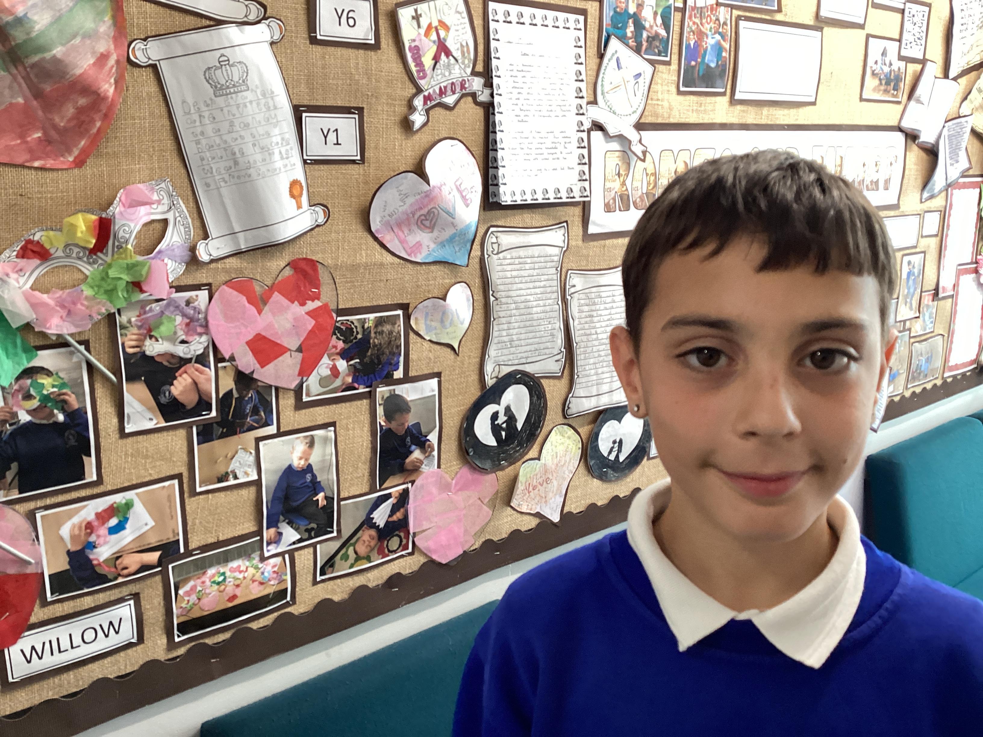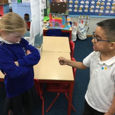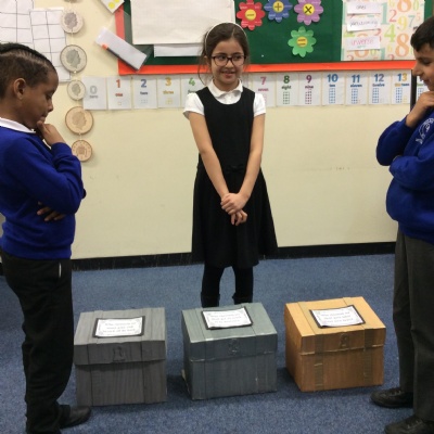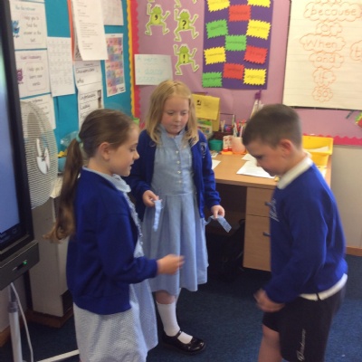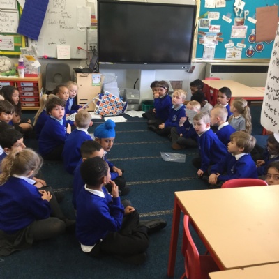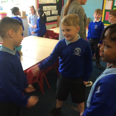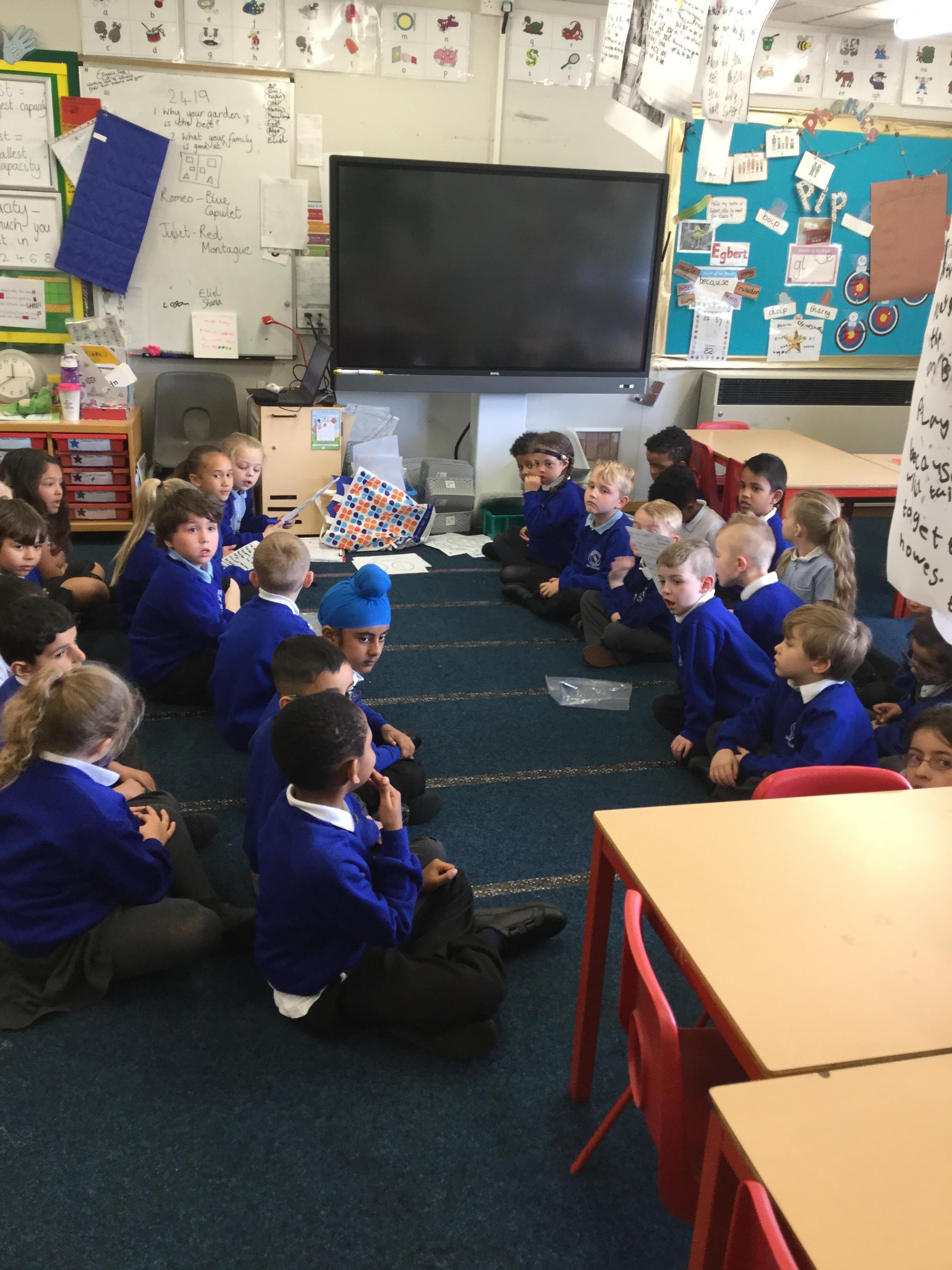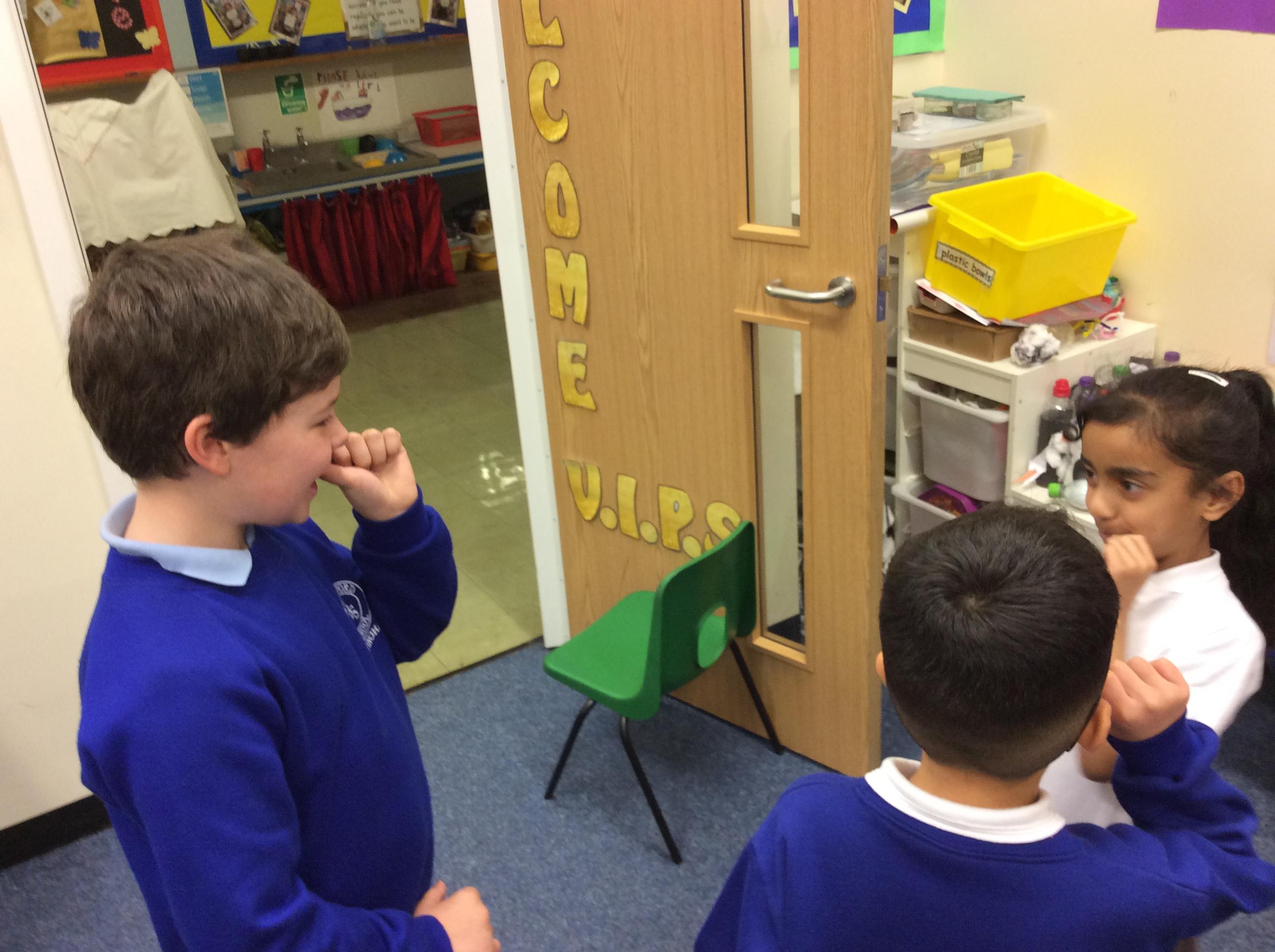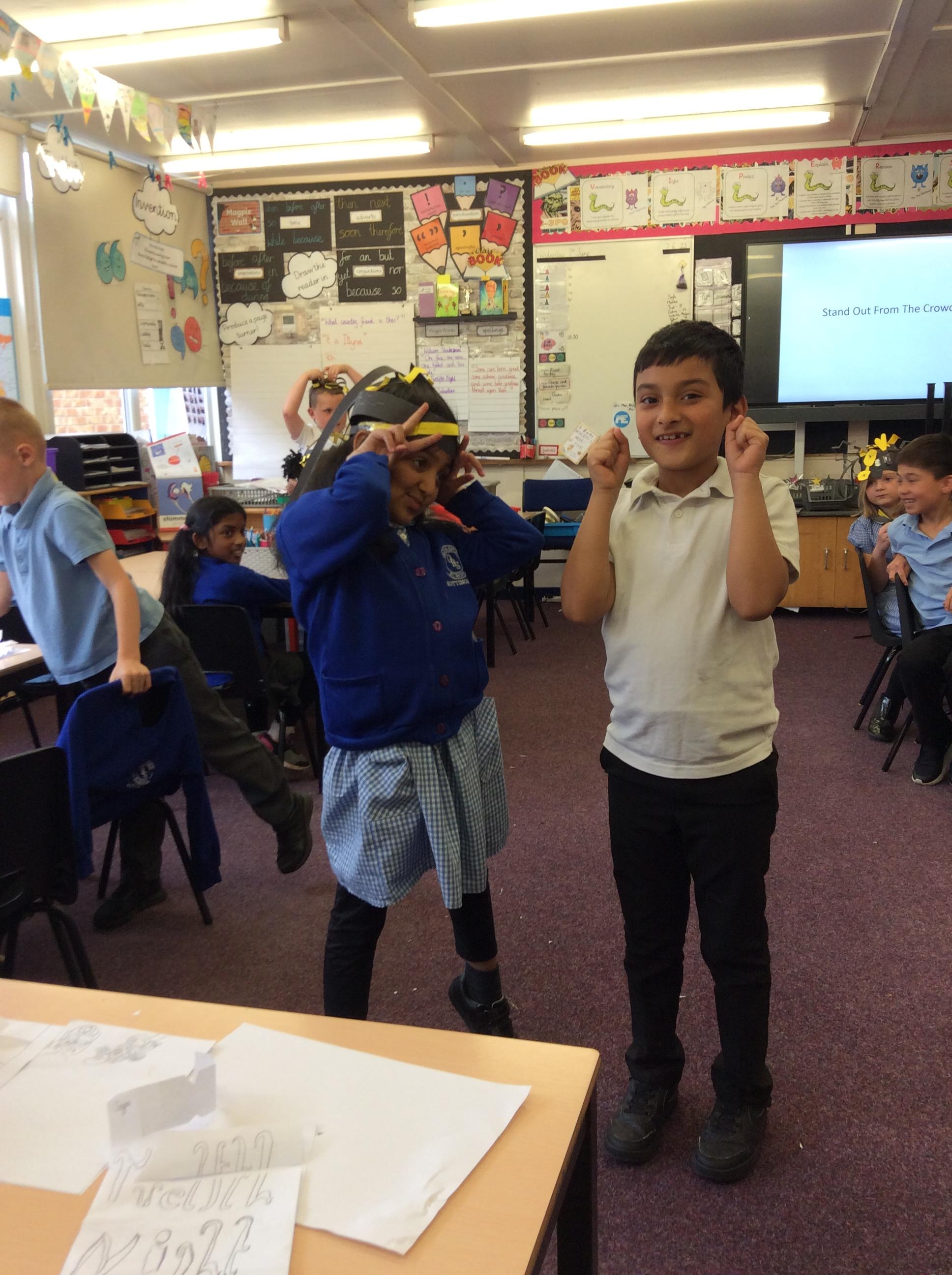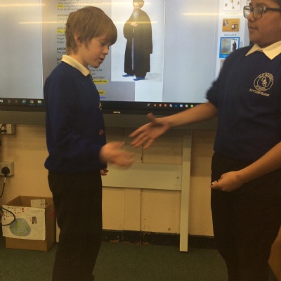 On 23rd April we celebrated Shakespeare's birthday in the school assembly. We helped Mrs Thomas by leading the assembly which was a 'guess who' game and the children guessed it was all about William Shakespeare. Look below at our assembly.