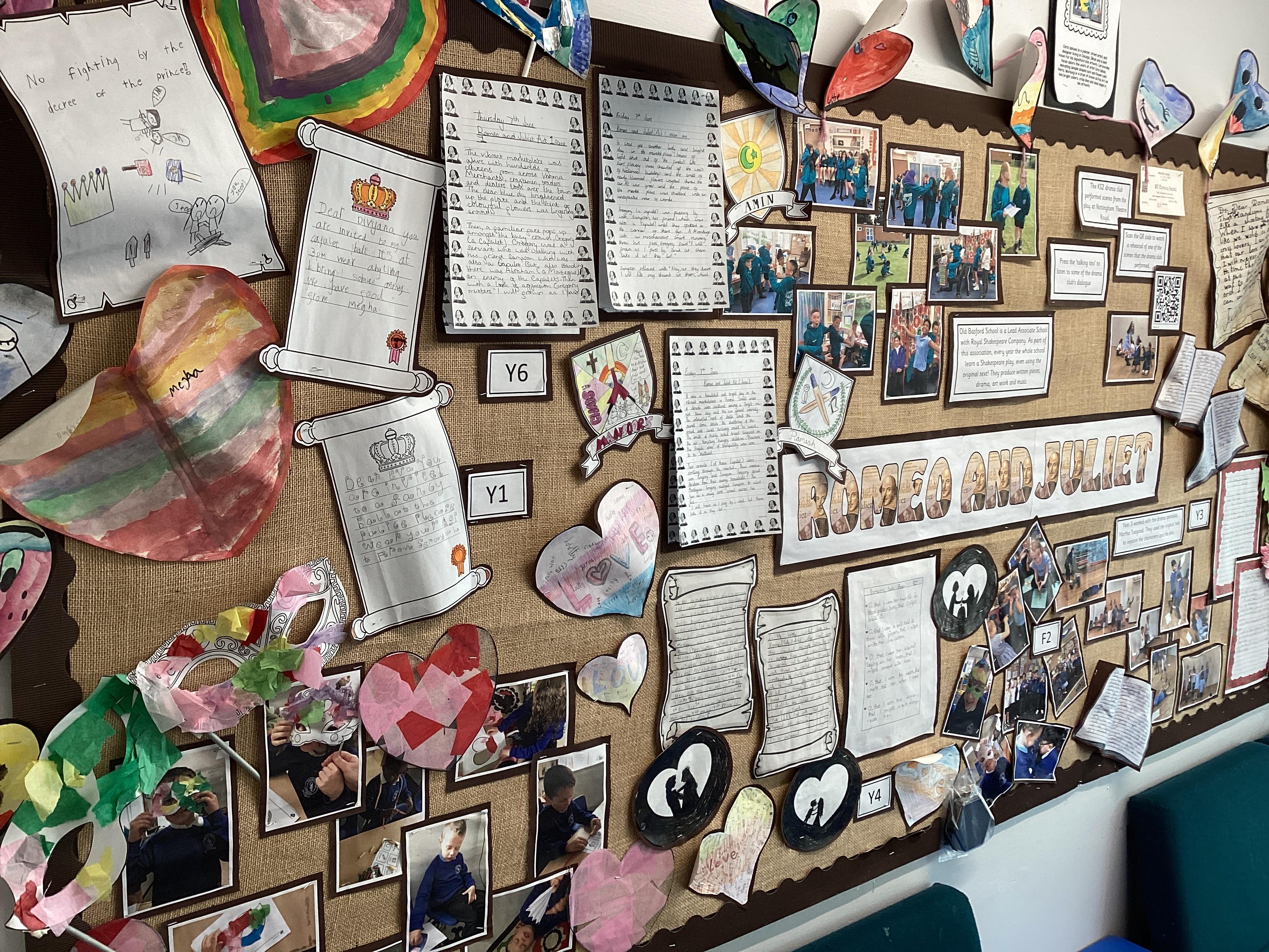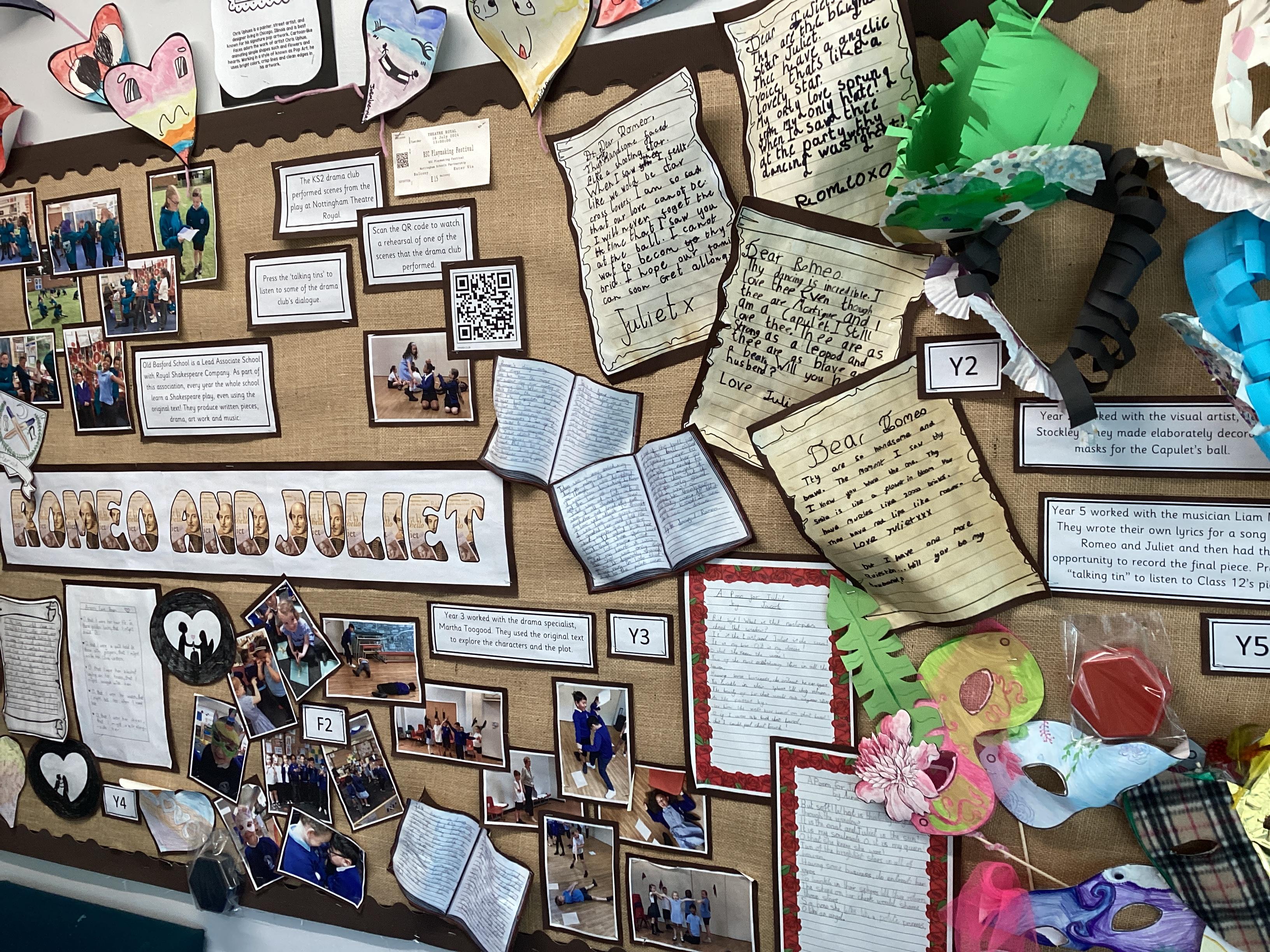 From the 24th February there is a Shakespeare Festival taking place at the Nottingham Royal Concert Hall. As part of the celebratory work the Associate schools have been asked to display some of the work that has been taking place. Please take a look at the photos below of the work from Old Basford School showcasing some of the work that we created during our 'Romeo and Juliet' week in 2019.