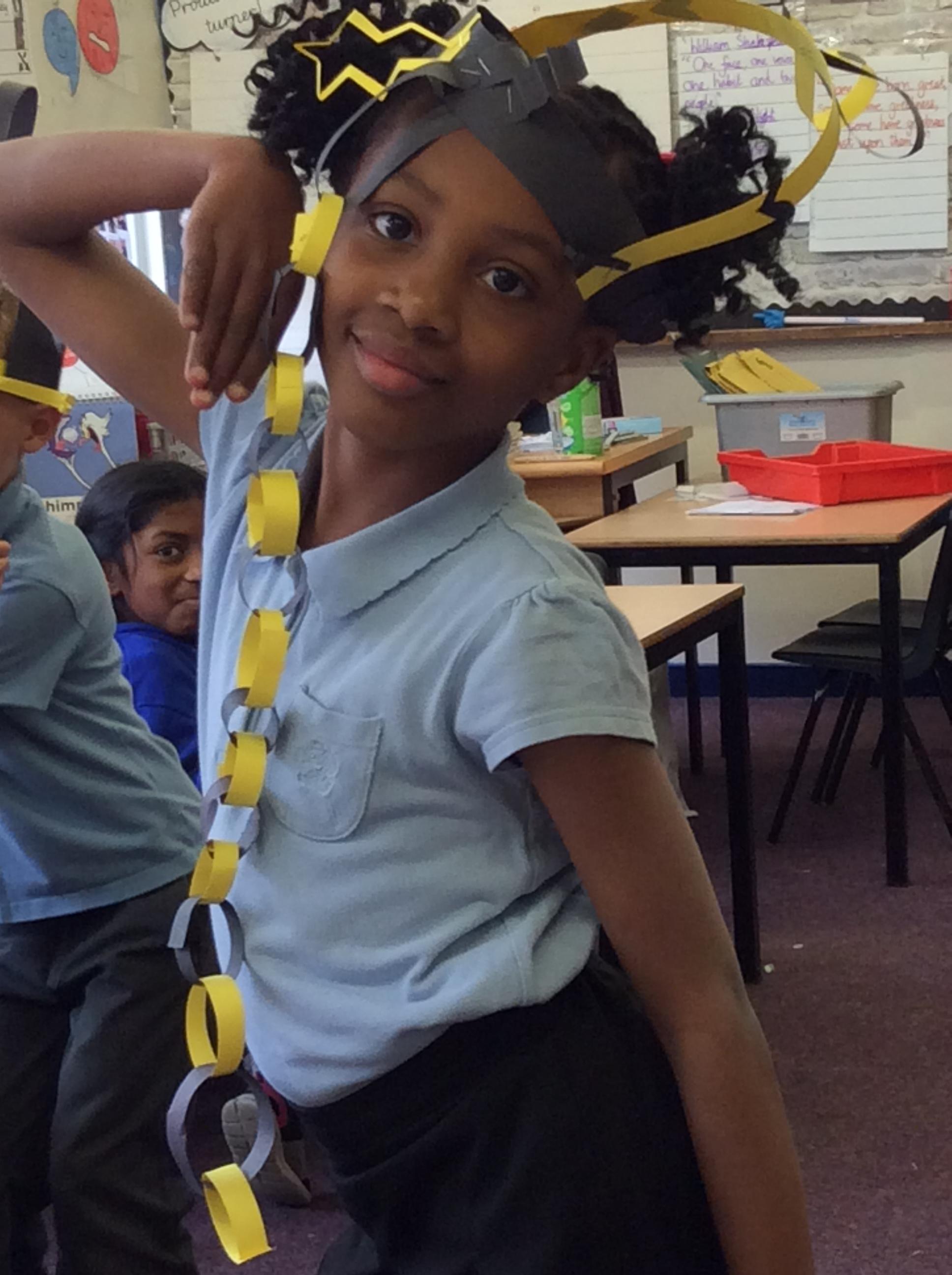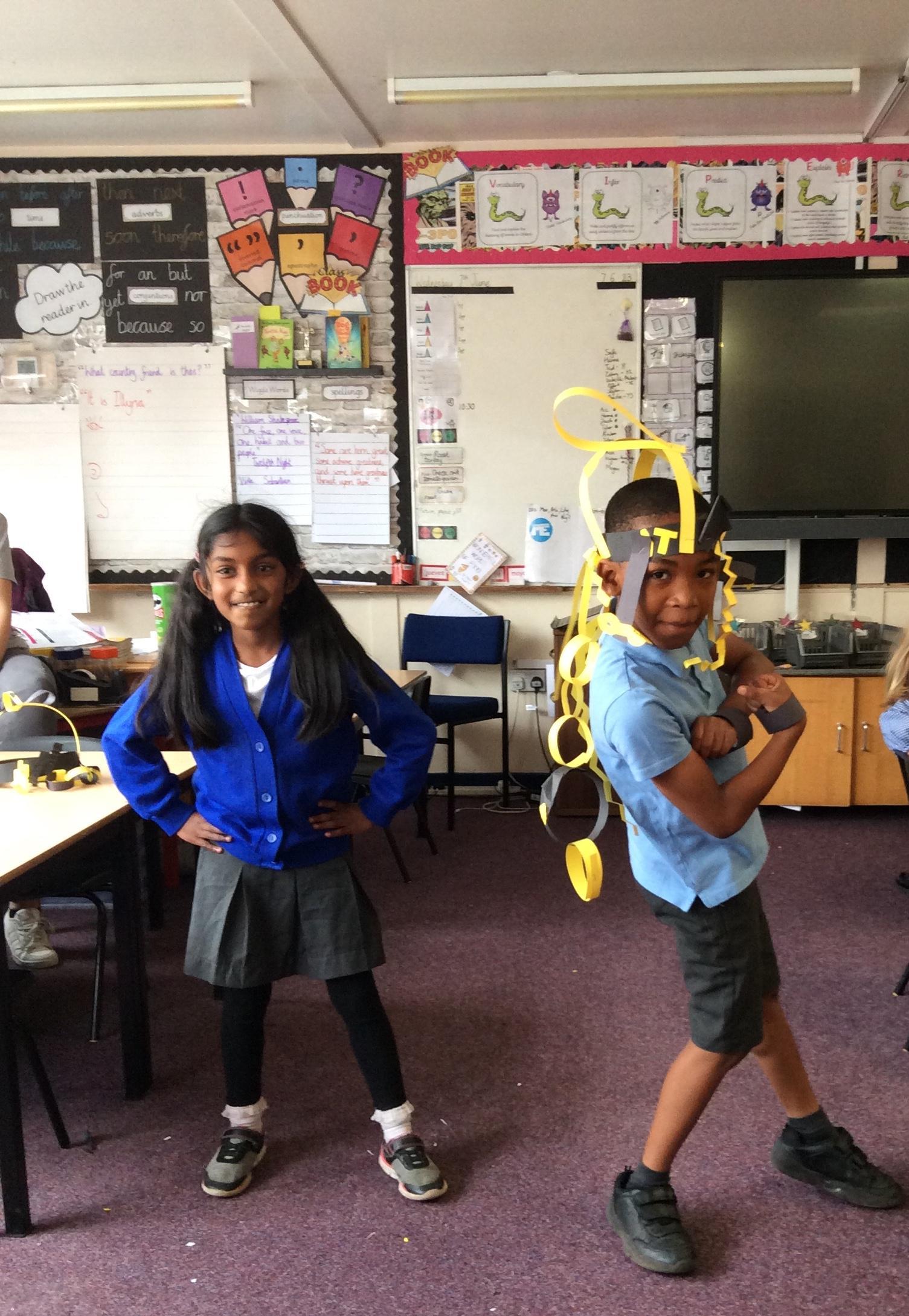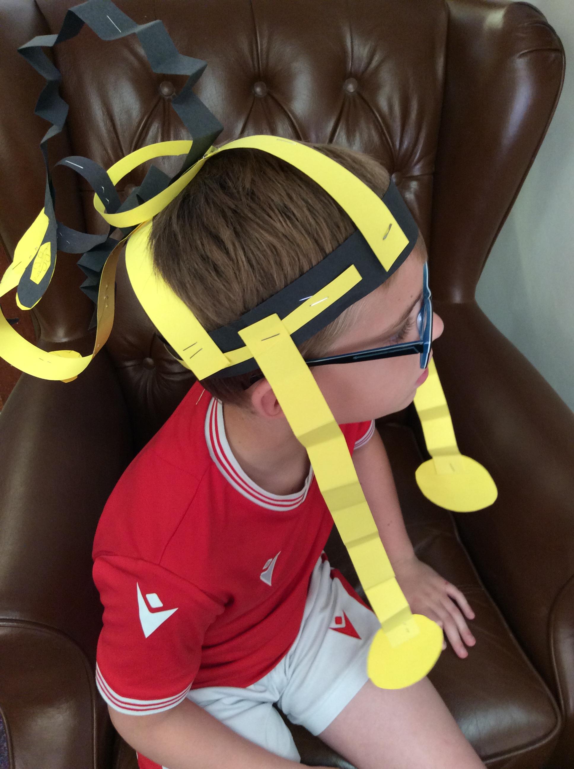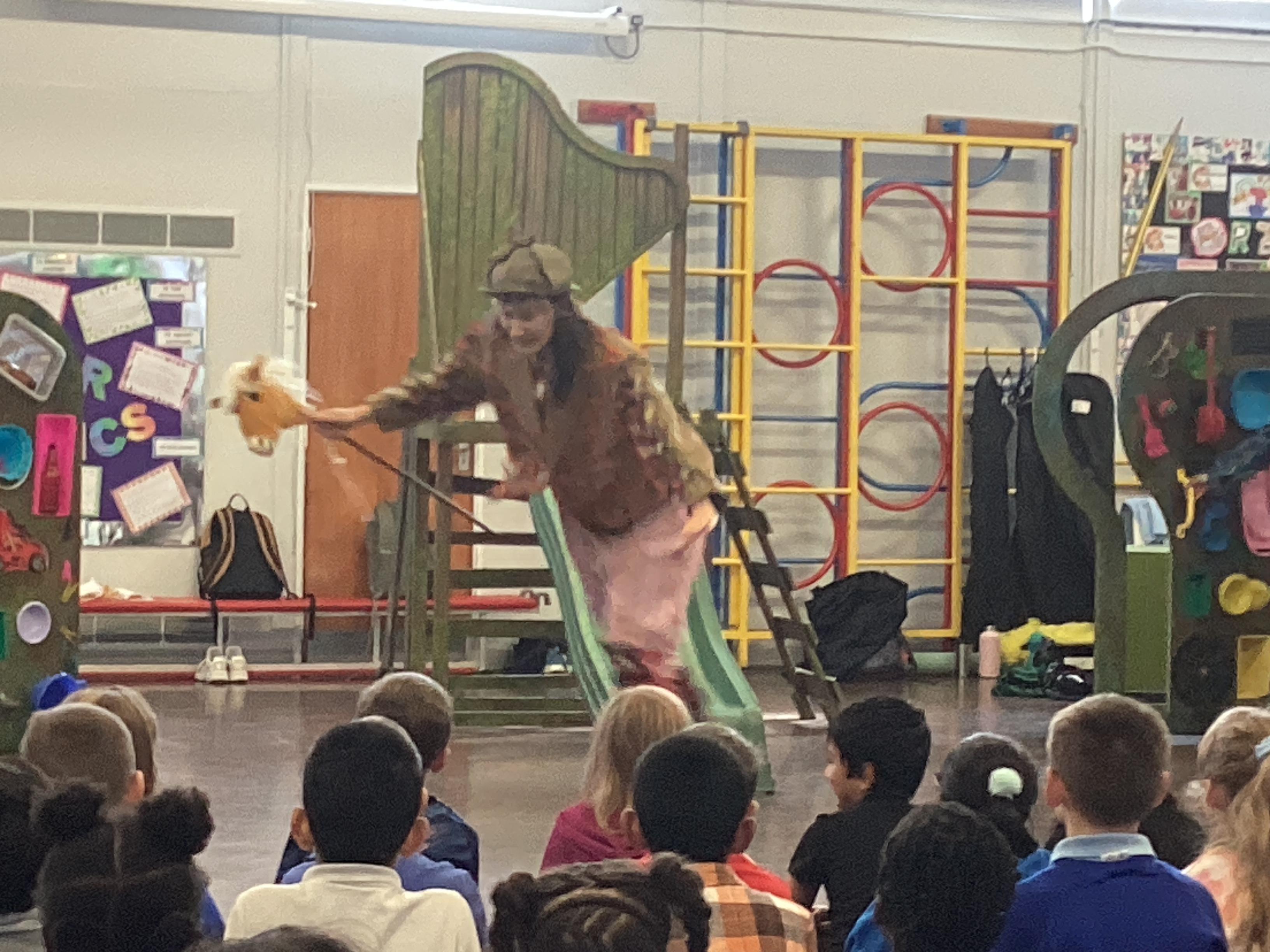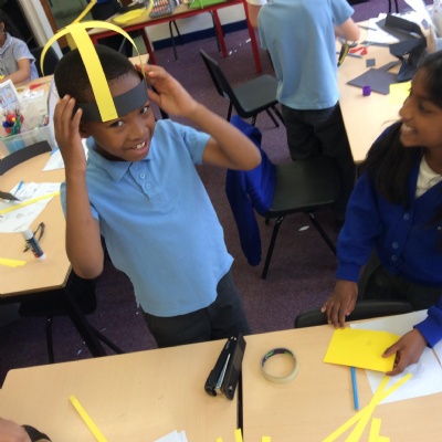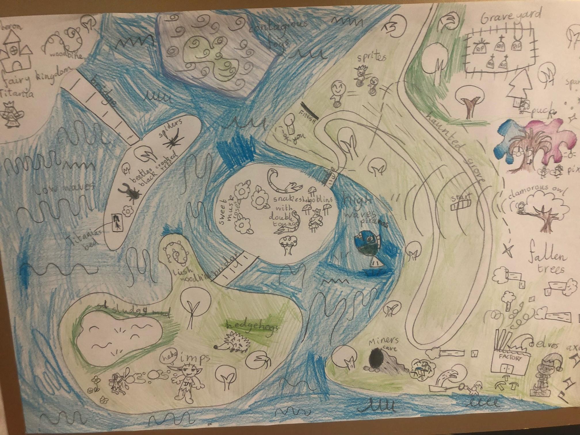 The Year 2 and the Year 4 children were lucky to work with Martha Toogood, a drama specialist, who helped them to understand the characters and the setting of the play through drama techniques using words and phrases from the original text. Year 5 were fortunate to work with the artist Jane Stockley on a project of making props for the play, namely a donkey's head for the character Bottom. Year 6 had the exciting opportunity of writing lyrics, singing and recording their own song about the play under the expert direction of the musician Liam Malloy.