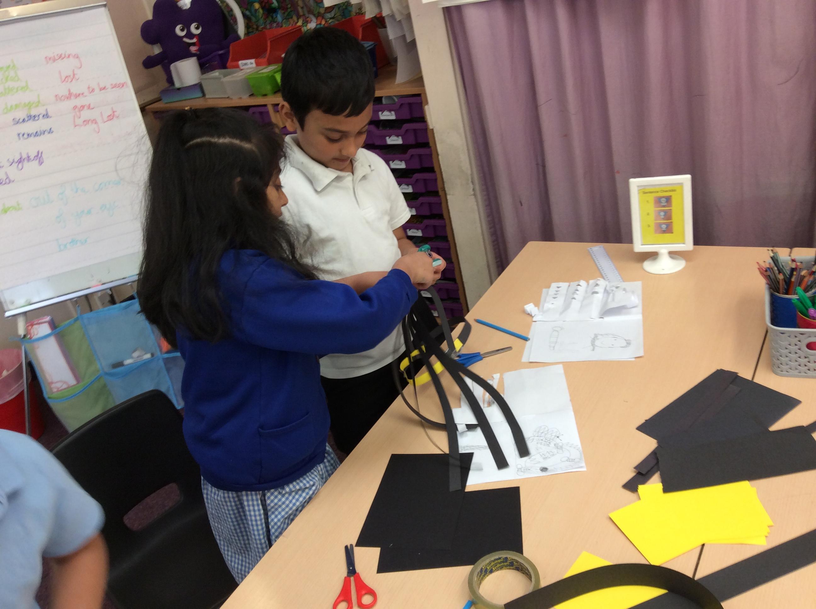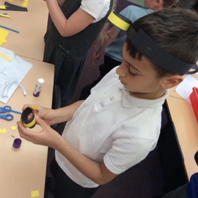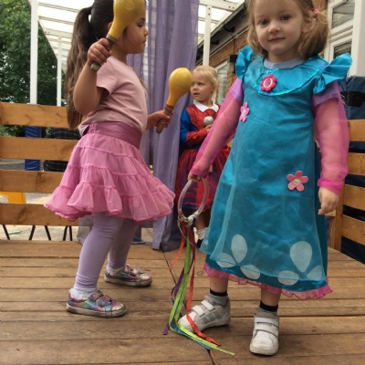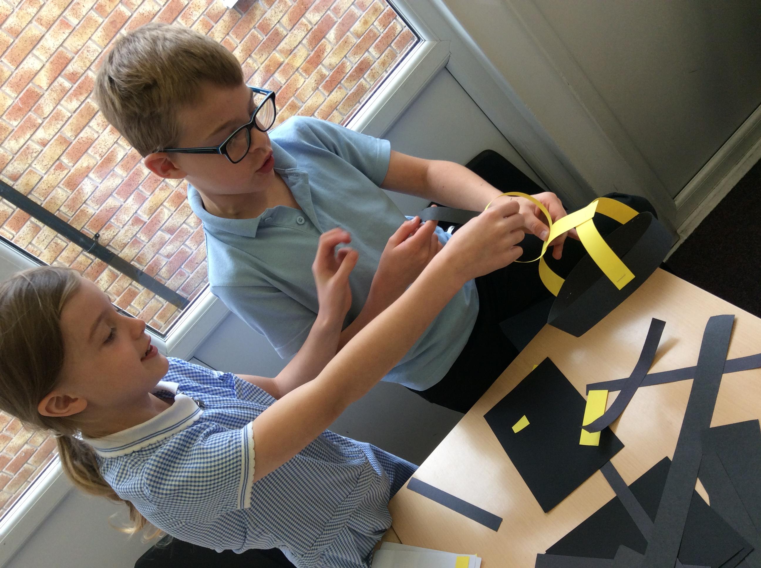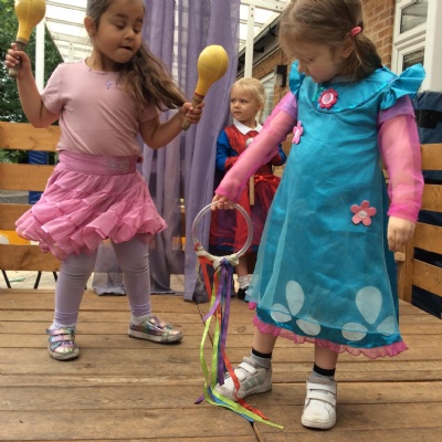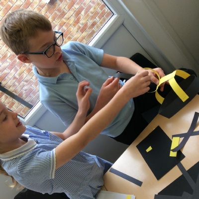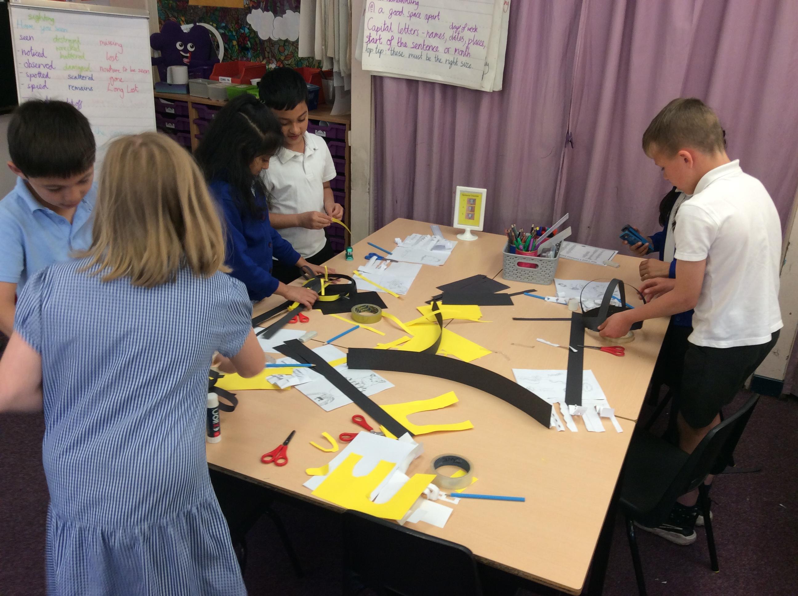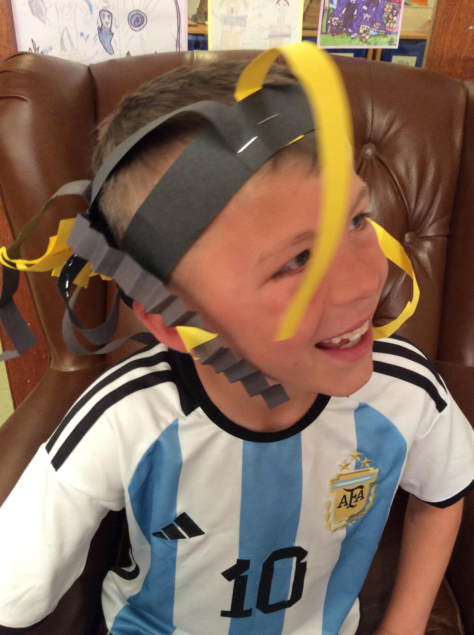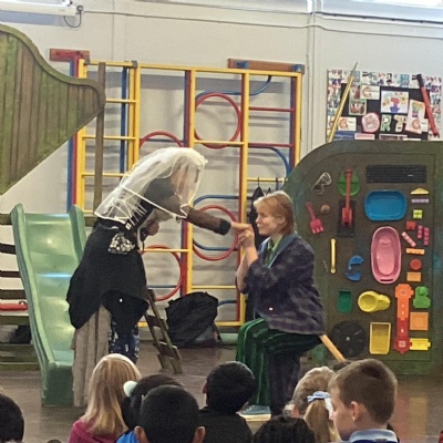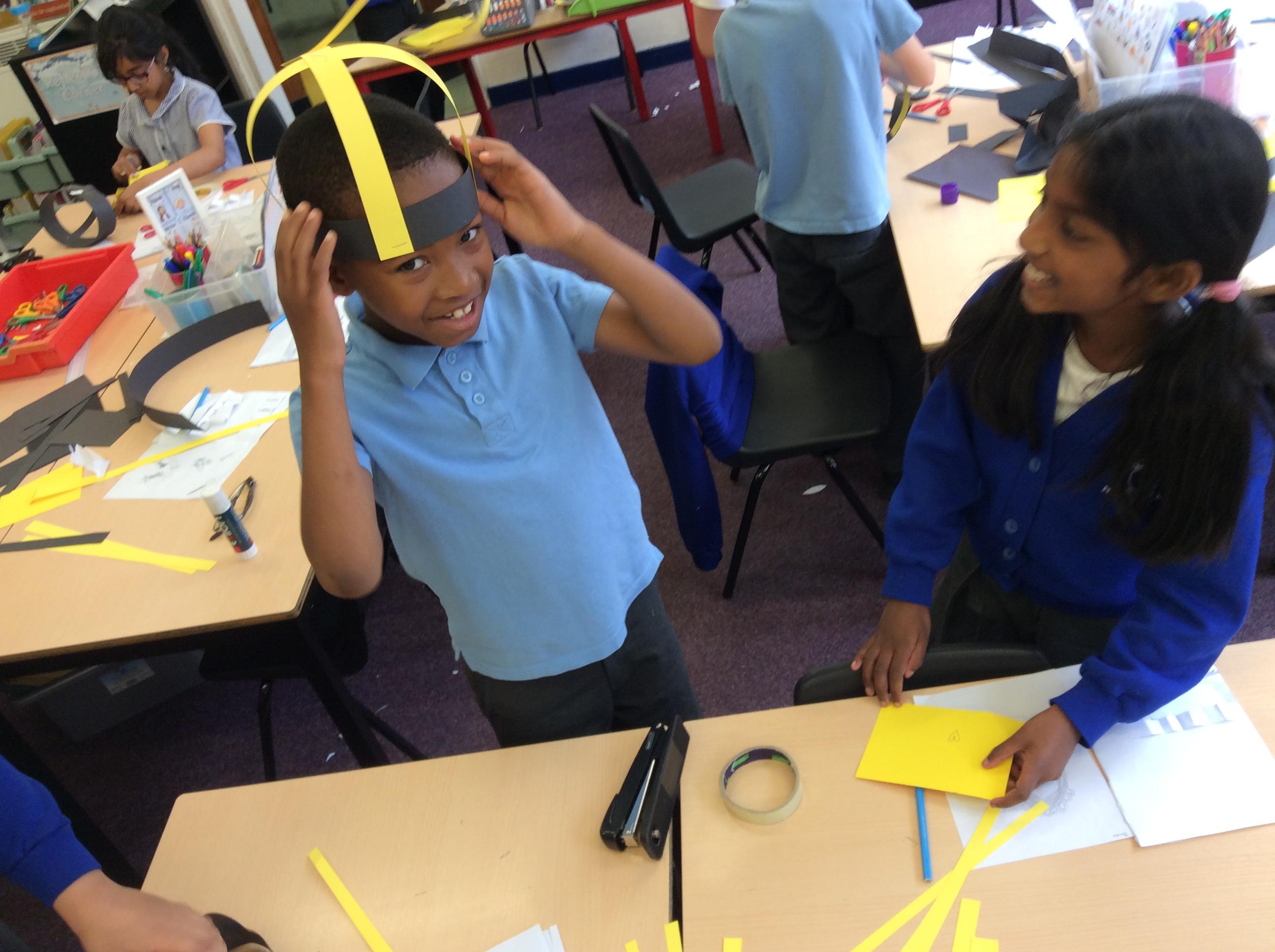 The Year 2 and the Year 4 children were lucky to work with Martha Toogood, a drama specialist, who helped them to understand the characters and the setting of the play through drama techniques using words and phrases from the original text. Year 5 were fortunate to work with the artist Jane Stockley on a project of making props for the play, namely a donkey's head for the character Bottom. Year 6 had the exciting opportunity of writing lyrics, singing and recording their own song about the play under the expert direction of the musician Liam Malloy.