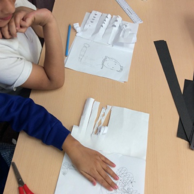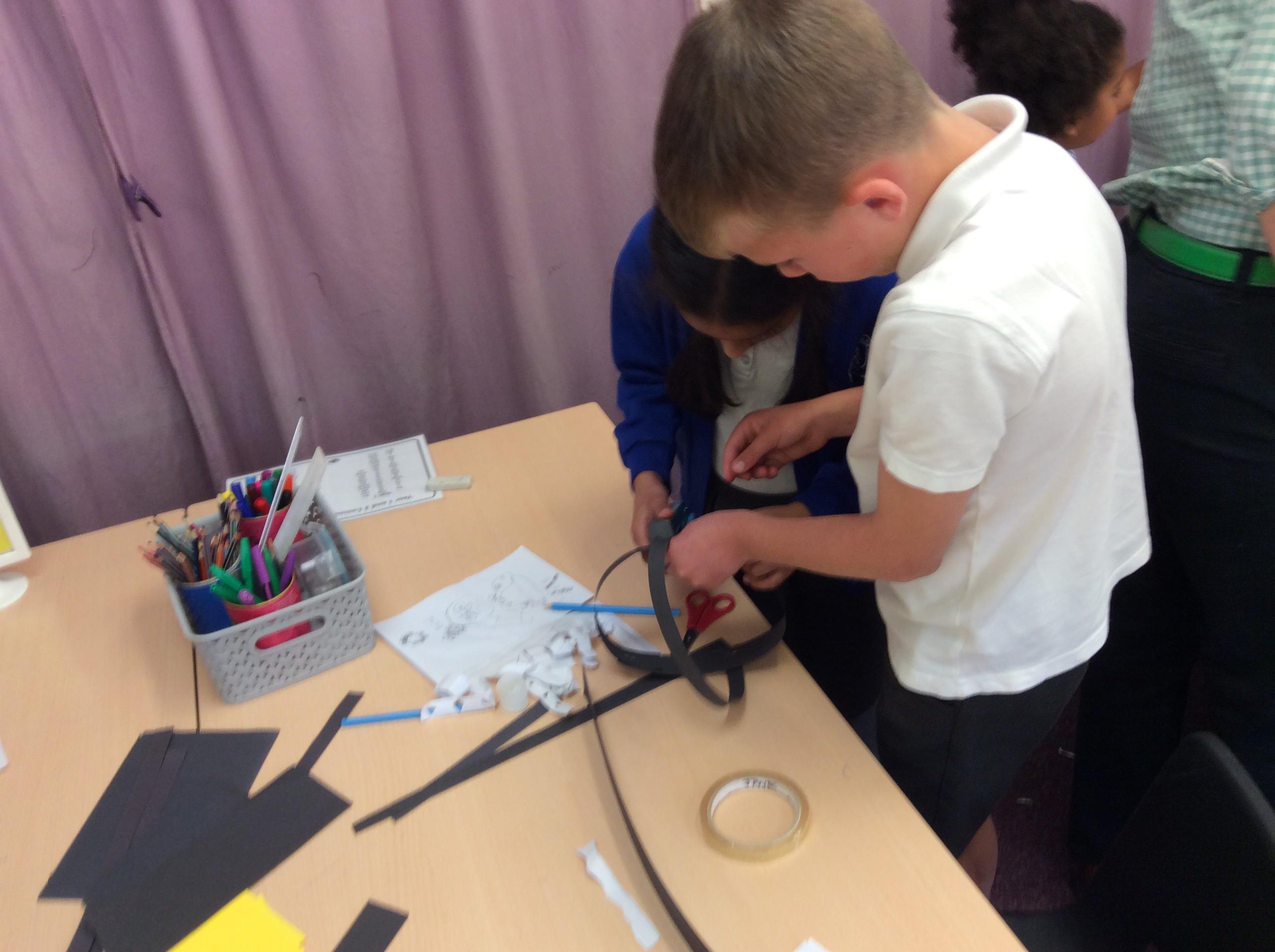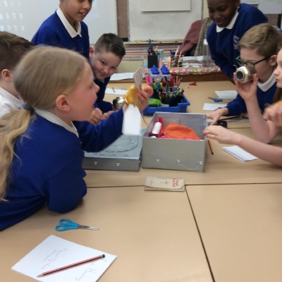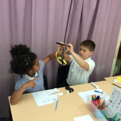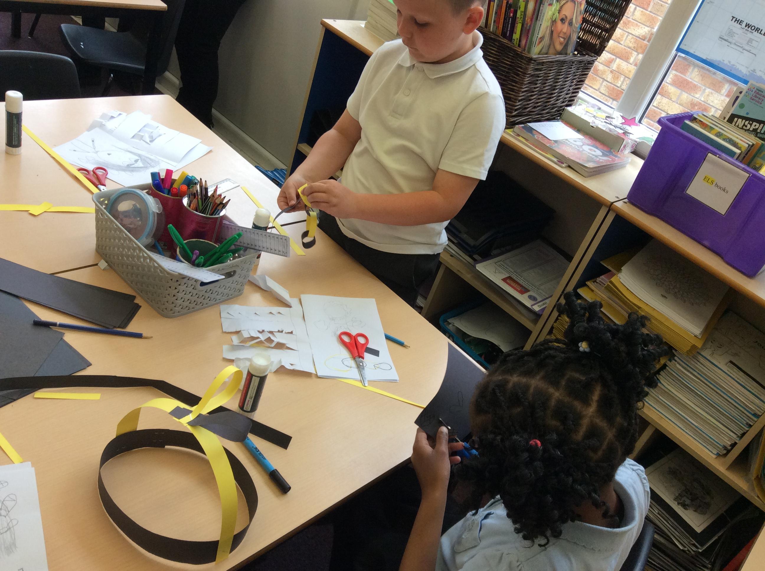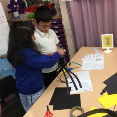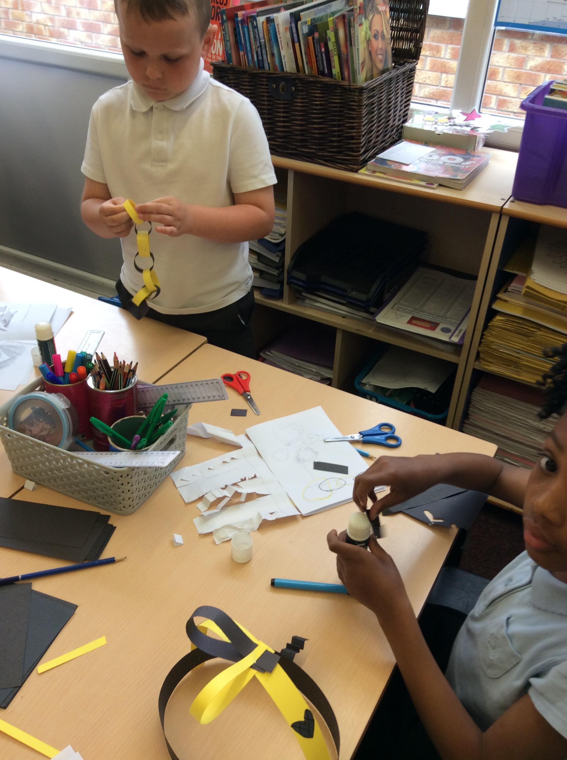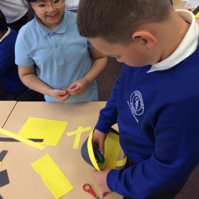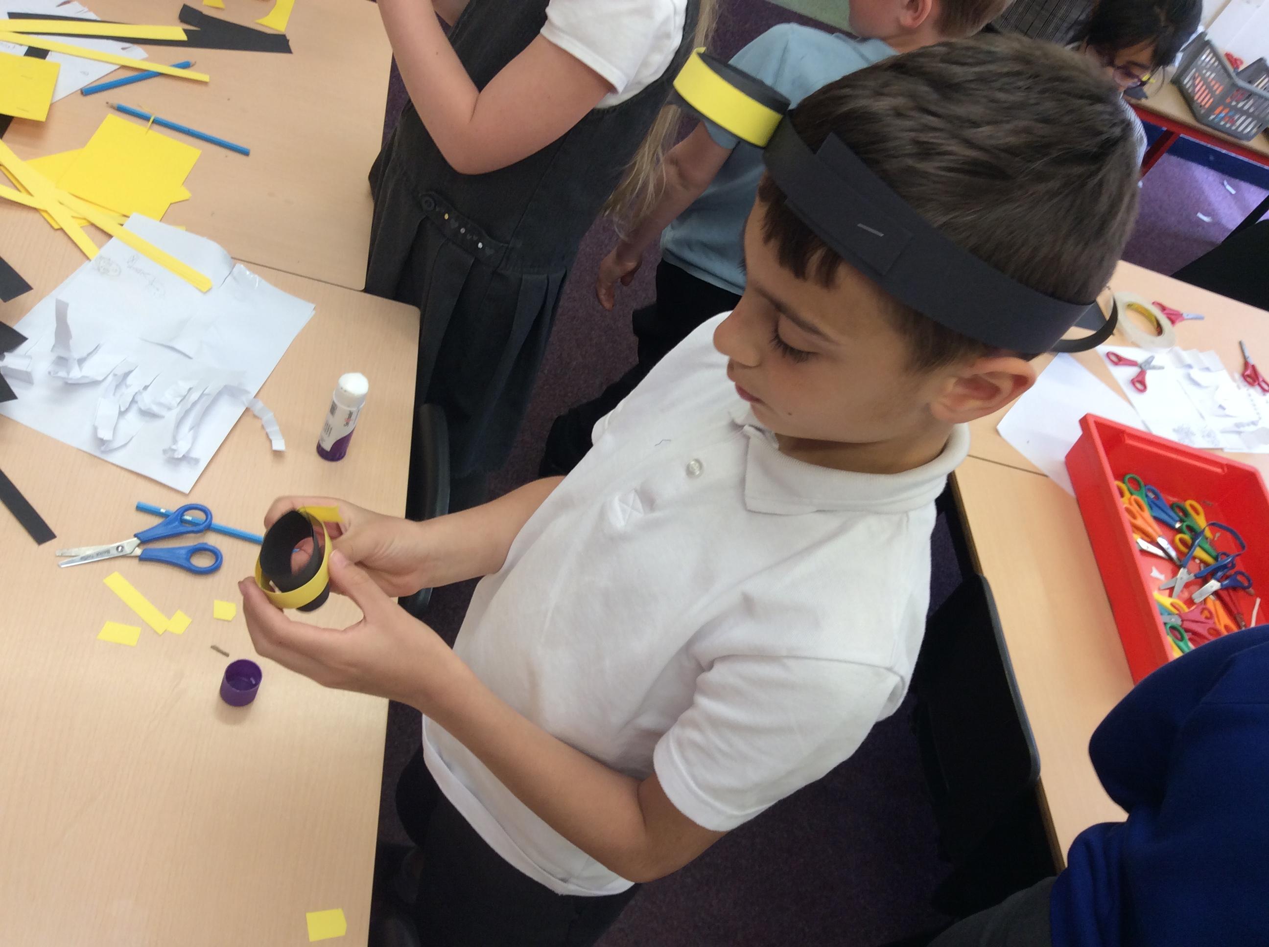 The Year 2 and the Year 4 children were lucky to work with Martha Toogood, a drama specialist, who helped them to understand the characters and the setting of the play through drama techniques using words and phrases from the original text. Year 5 were fortunate to work with the artist Jane Stockley on a project of making props for the play, namely a donkey's head for the character Bottom. Year 6 had the exciting opportunity of writing lyrics, singing and recording their own song about the play under the expert direction of the musician Liam Malloy.