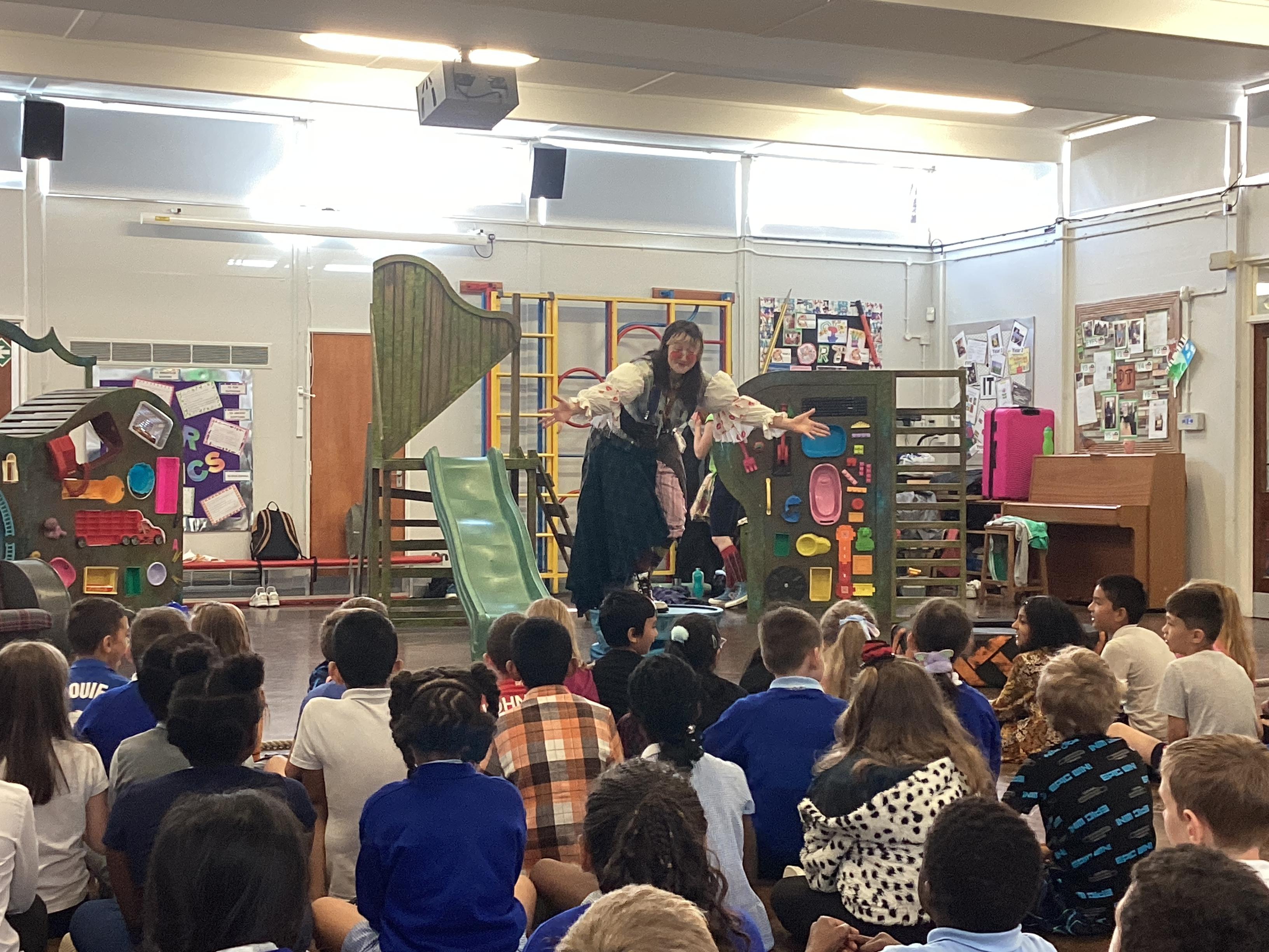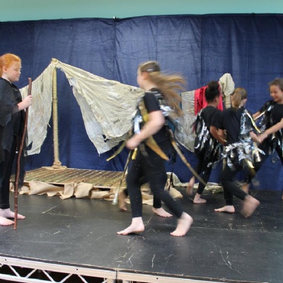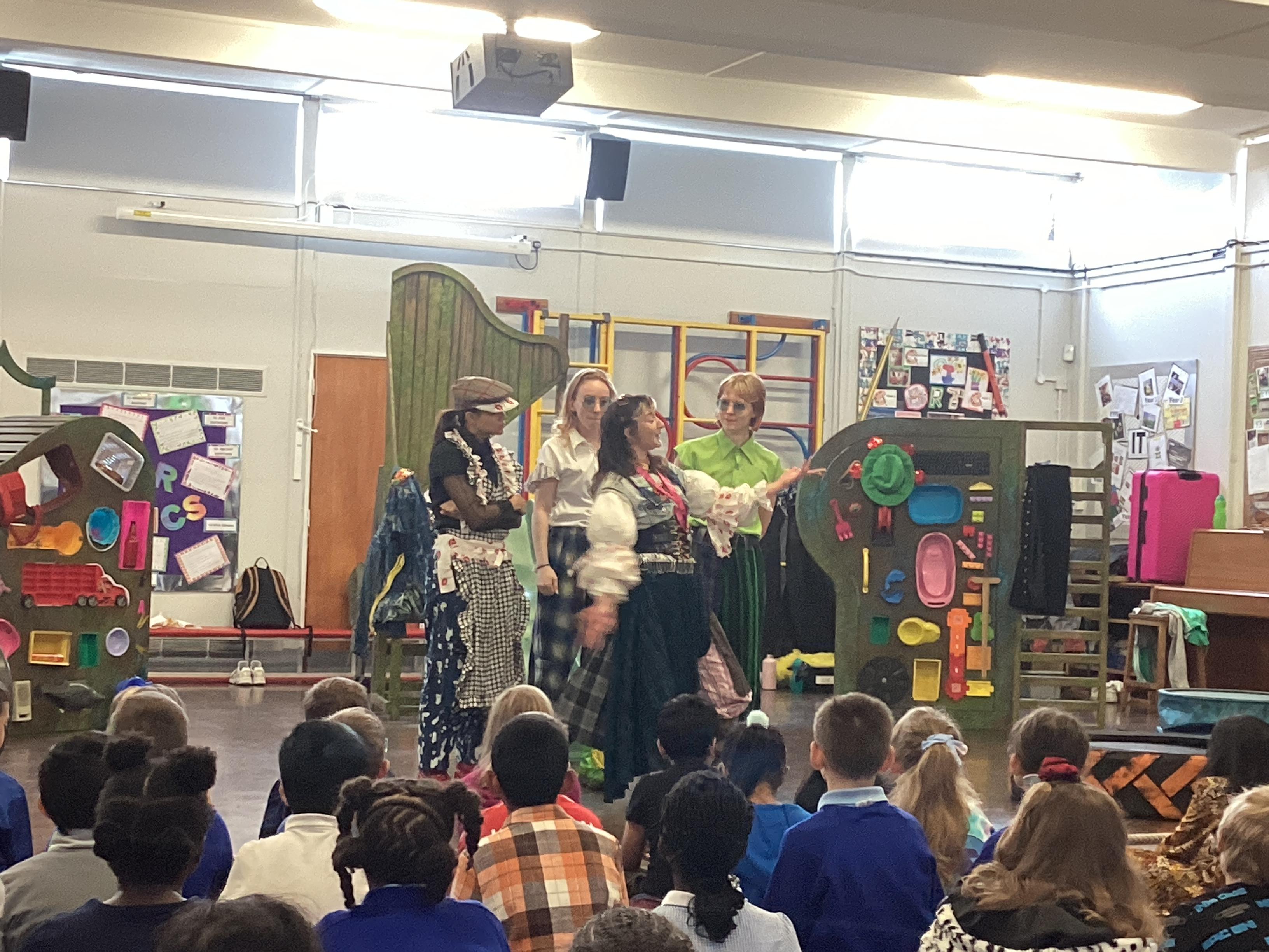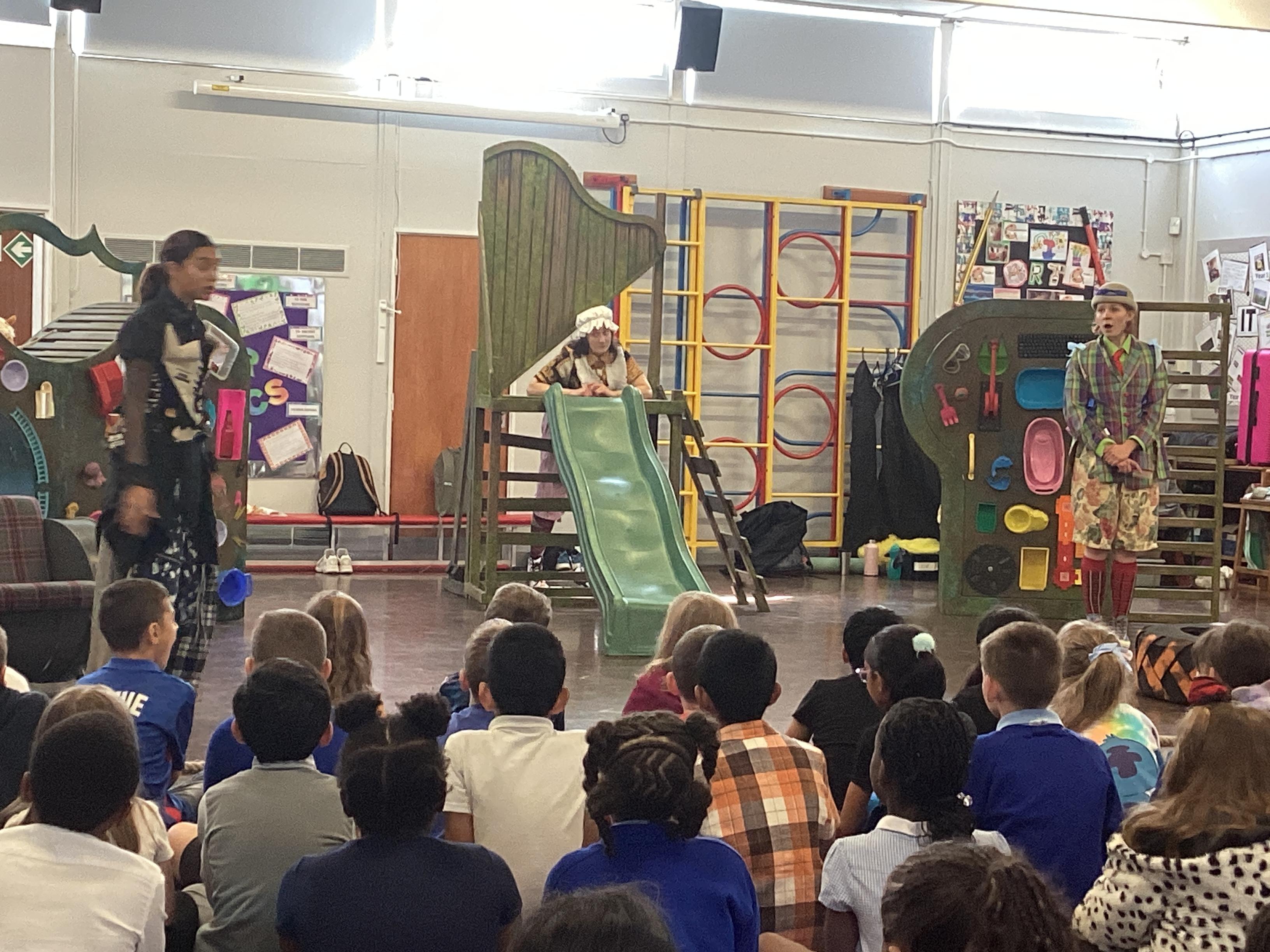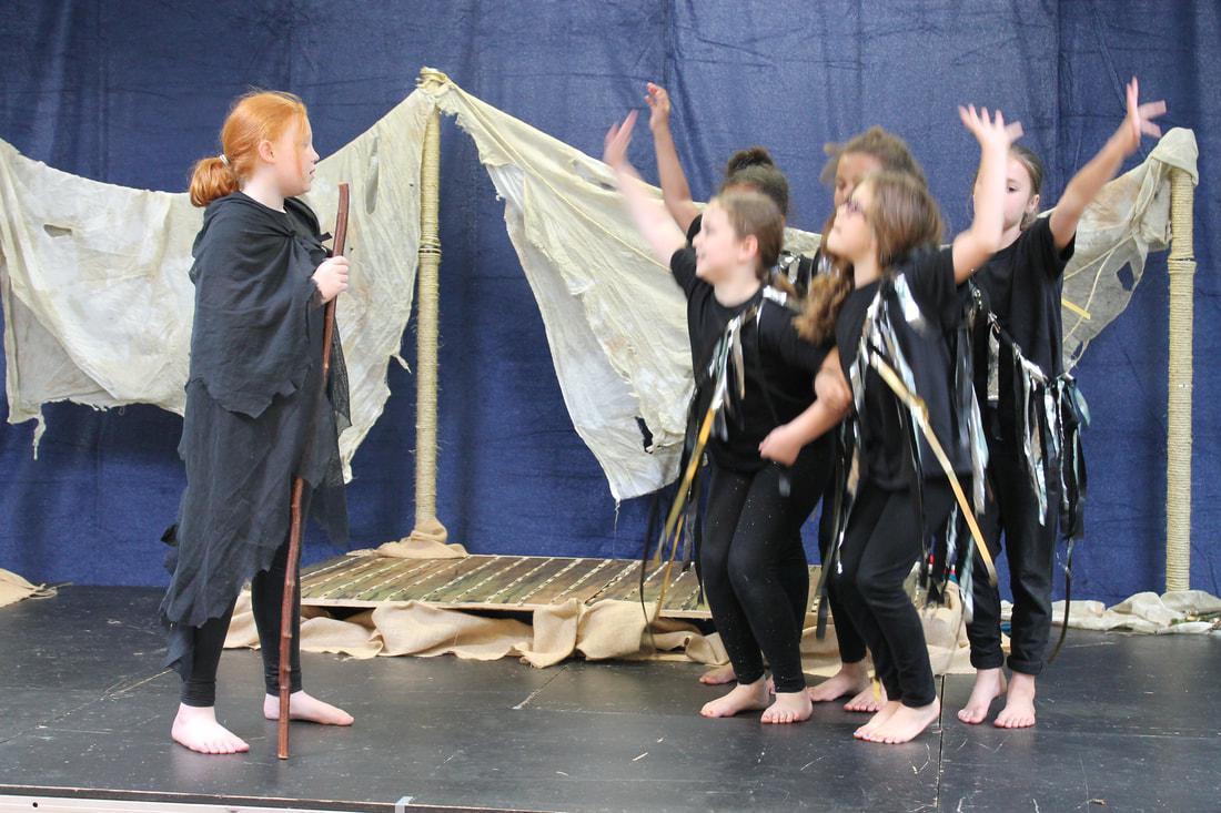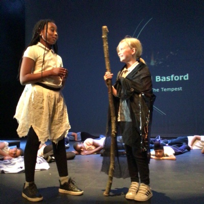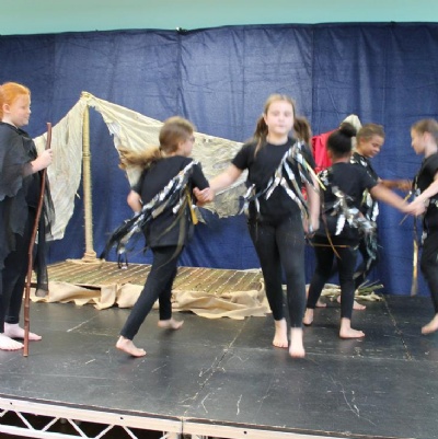 In April we had the honour of being a host school to the Royal Shakespeare Company who did two performances of The Tempest for school in our Nottingham Partnership. This was a 'First Encounters' production which means it is an abridged version of the play, using all original text, but produced in a view that this is an introduction to Shakepseare for a younger audience. Our Y6 classes were lucky to be chosen to watch.