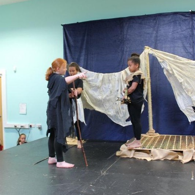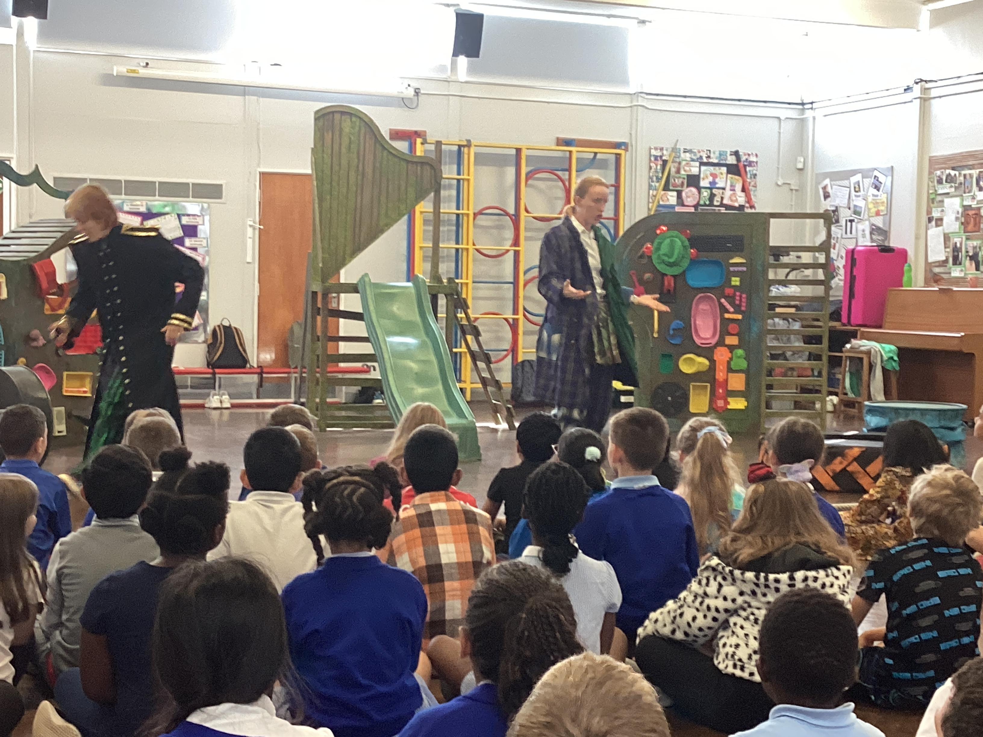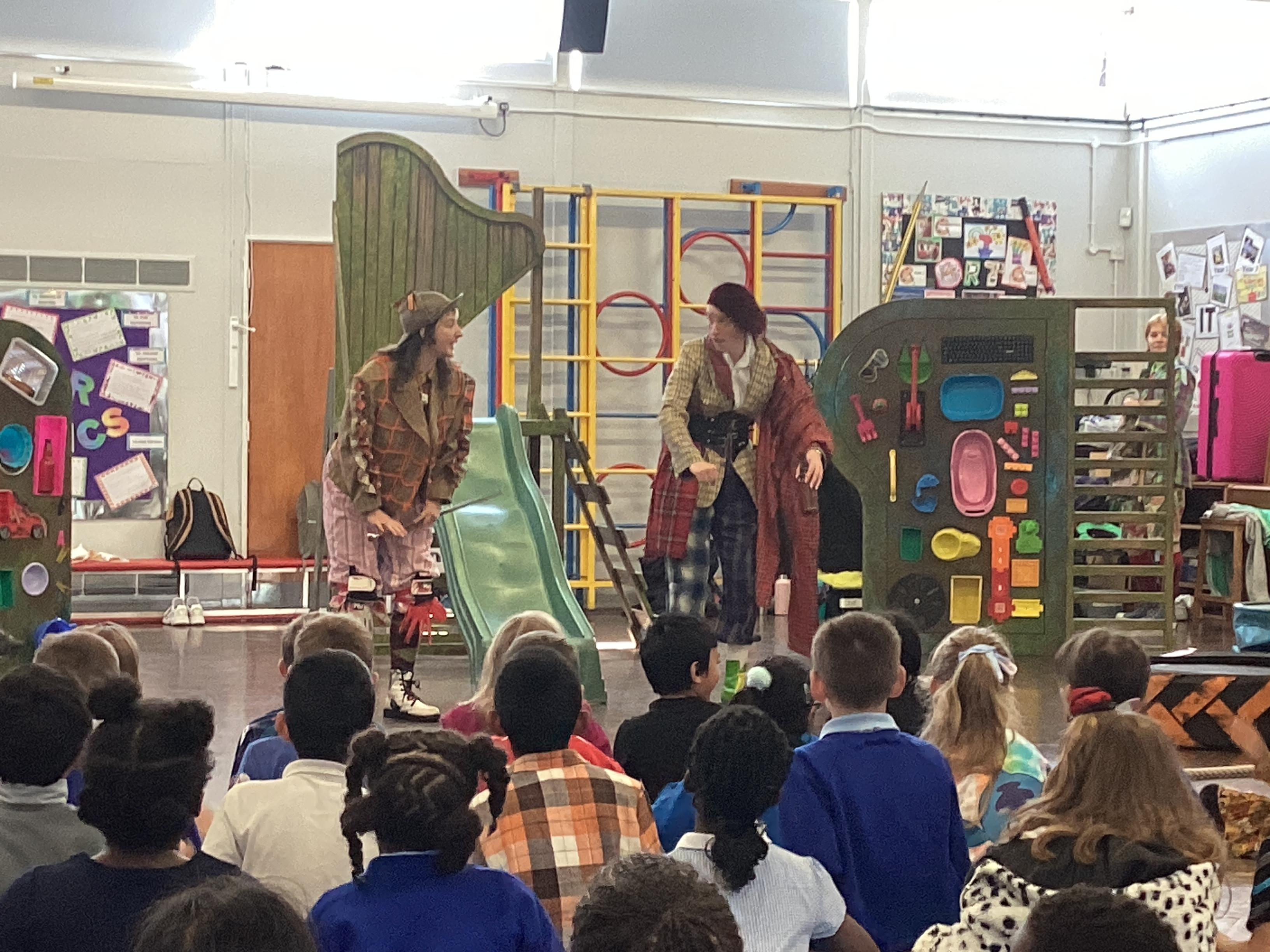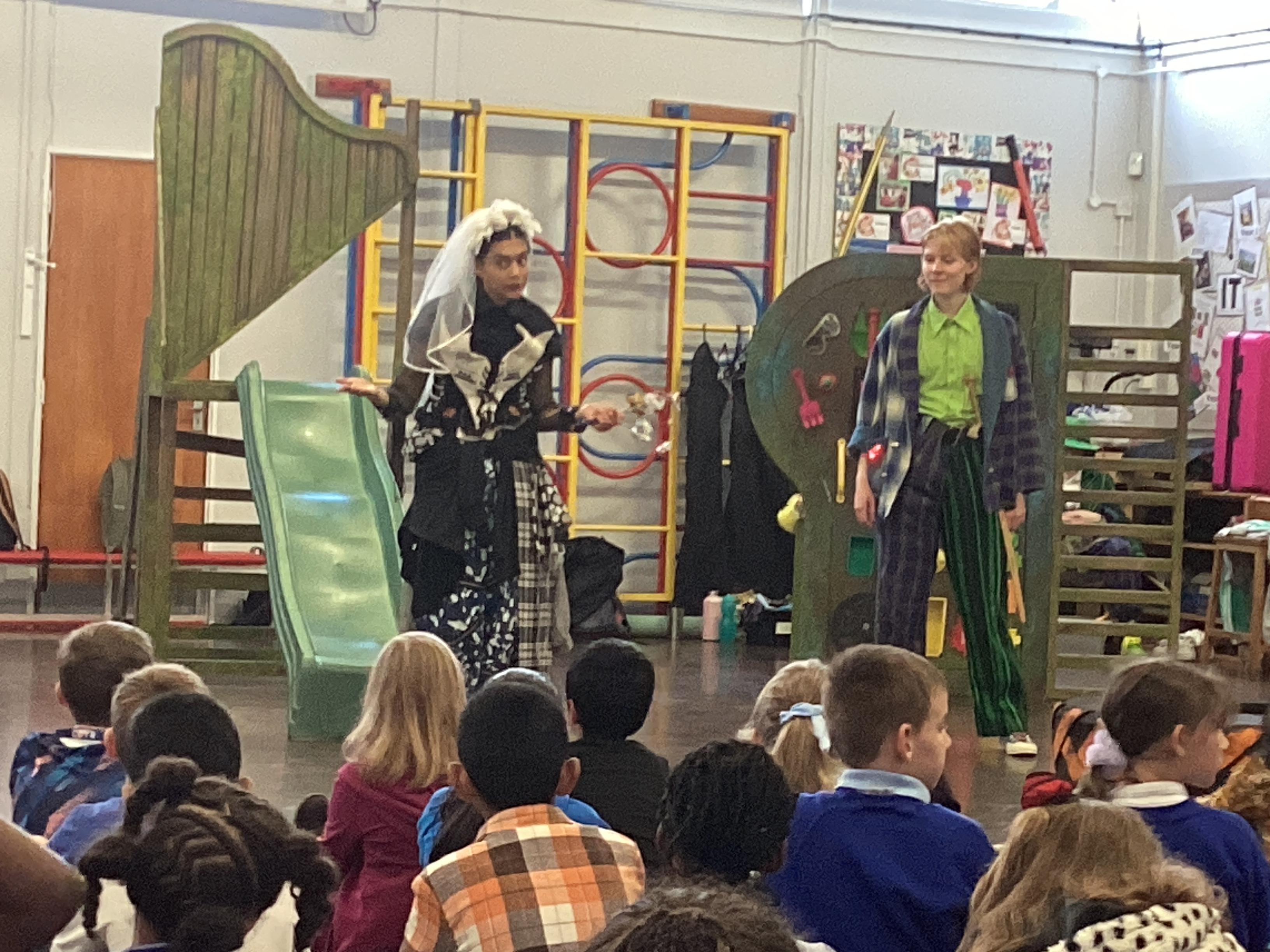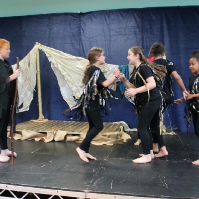 In April we had the honour of being a host school to the Royal Shakespeare Company who did two performances of The Tempest for school in our Nottingham Partnership. This was a 'First Encounters' production which means it is an abridged version of the play, using all original text, but produced in a view that this is an introduction to Shakepseare for a younger audience. Our Y6 classes were lucky to be chosen to watch.