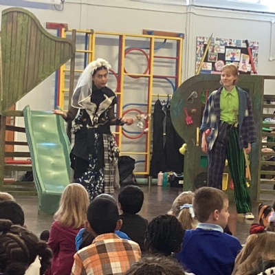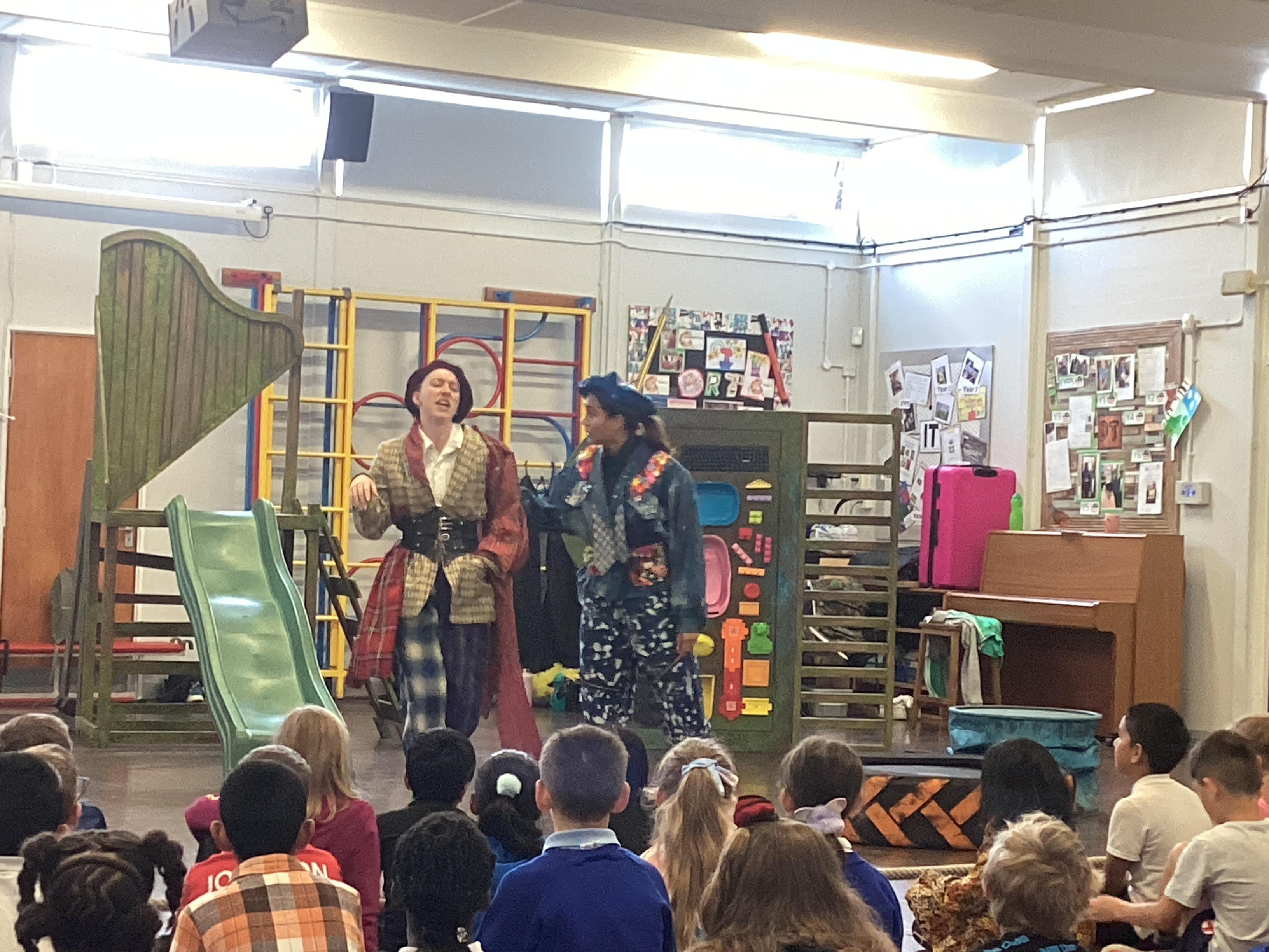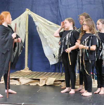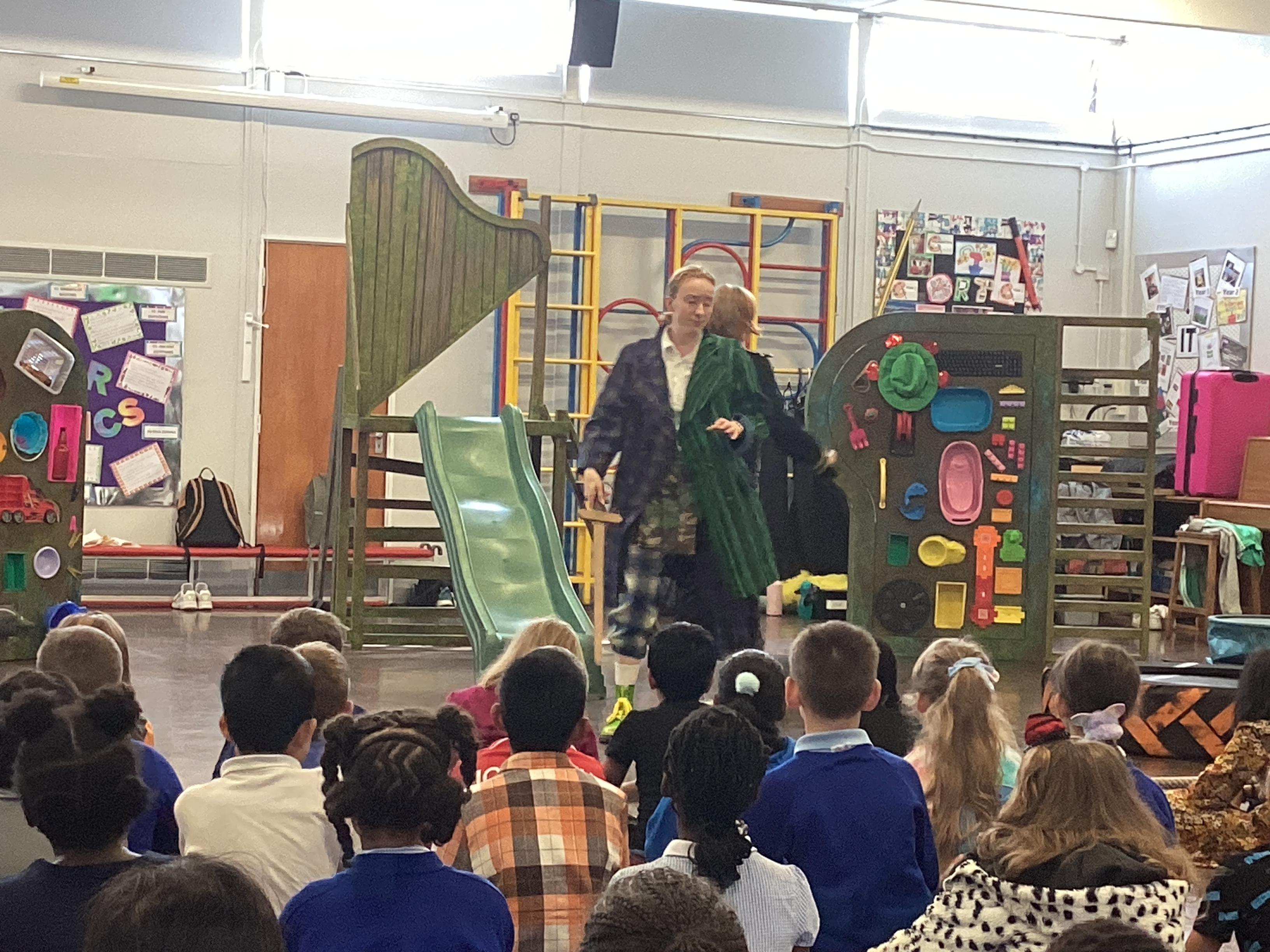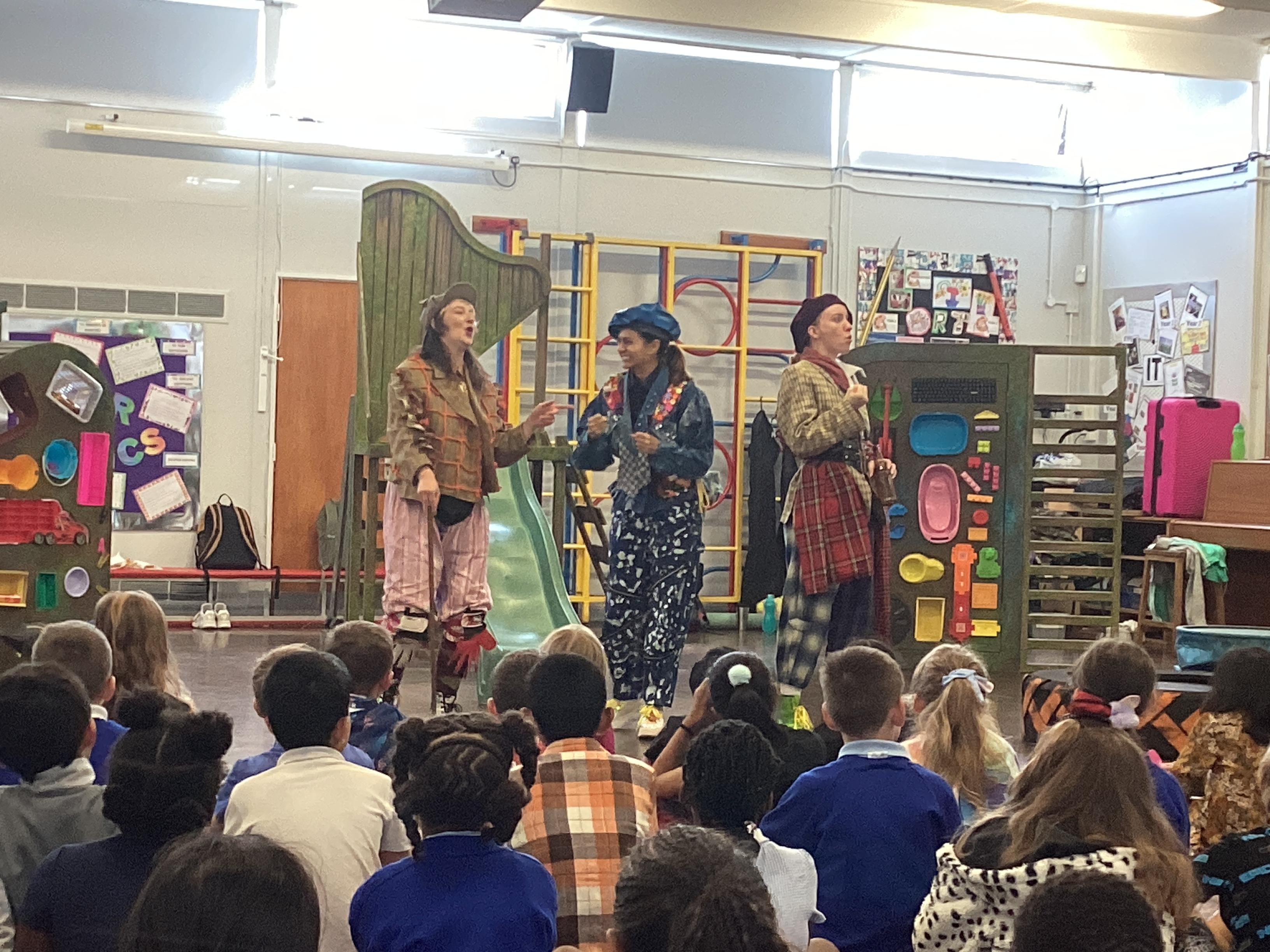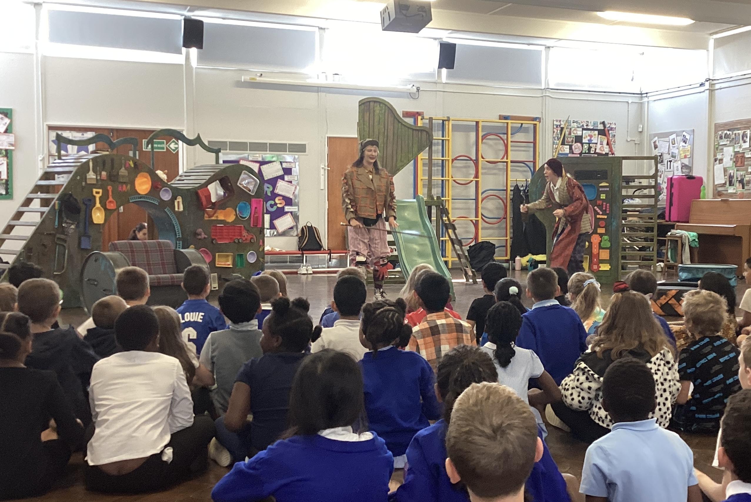 In April we had the honour of being a host school to the Royal Shakespeare Company who did two performances of The Tempest for school in our Nottingham Partnership. This was a 'First Encounters' production which means it is an abridged version of the play, using all original text, but produced in a view that this is an introduction to Shakepseare for a younger audience. Our Y6 classes were lucky to be chosen to watch.