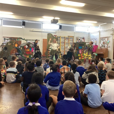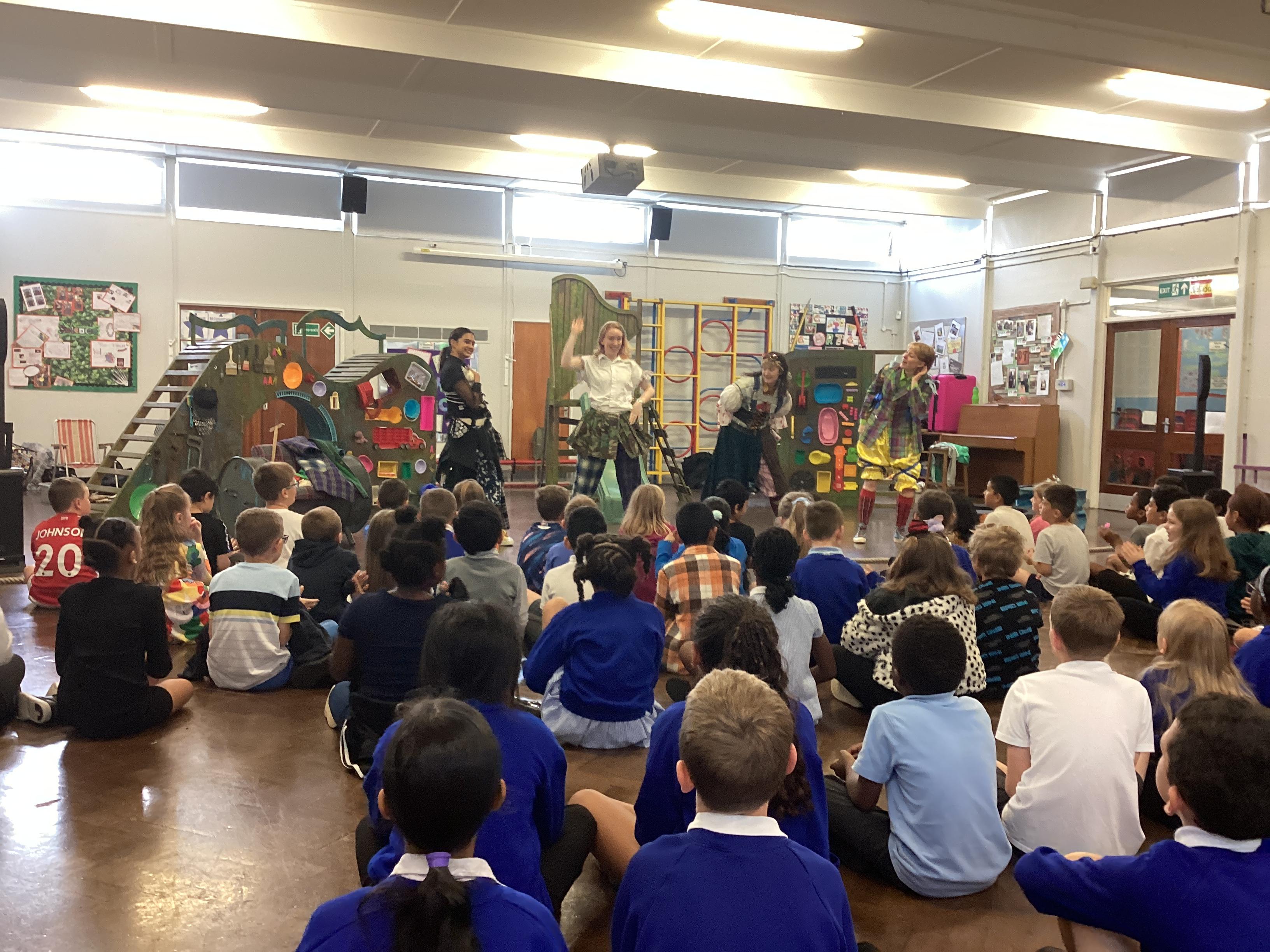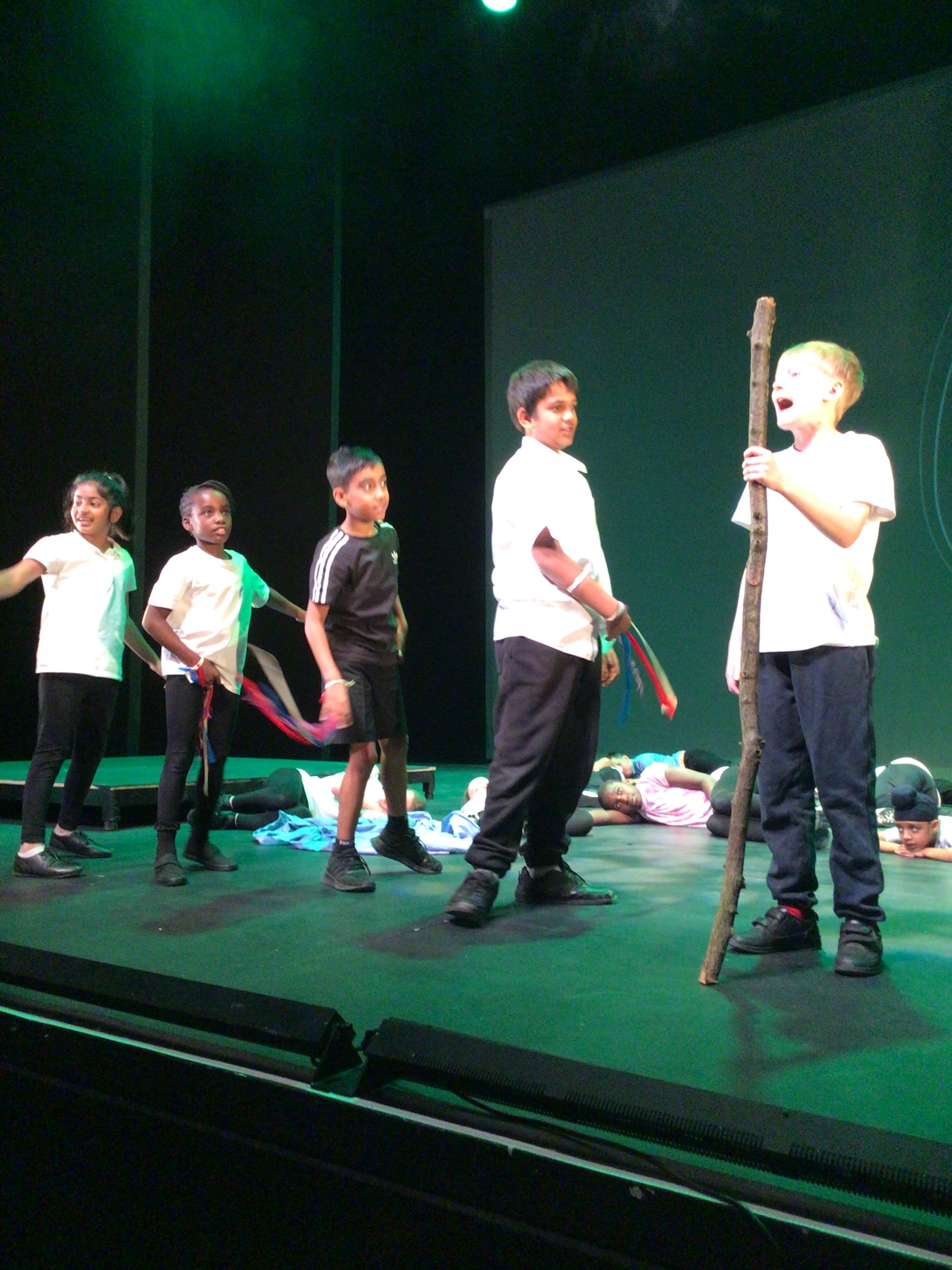WE WERE FORTUNATE TO TAKE OUR YEAR 5 AND 6 PUPILS ALONG TO A MATINEE PERFORMANCE OF THE PLAY ALONSIDE THE OTHER P6P SCHOOLS. THE RSC ACTORS SAID THAT THIS WAS A TRULY UNIQUE EXPERIENCE FOR THEM AS THEY HAD NEVER PERFORMED TO SO MANY CHILDREN BEFORE. IT WAS A TRULY SPECIAL AFTERNOON AND HOPEFULLY HAS CREATED A NEW GENERATION OF SHAKESPEARE FANS.