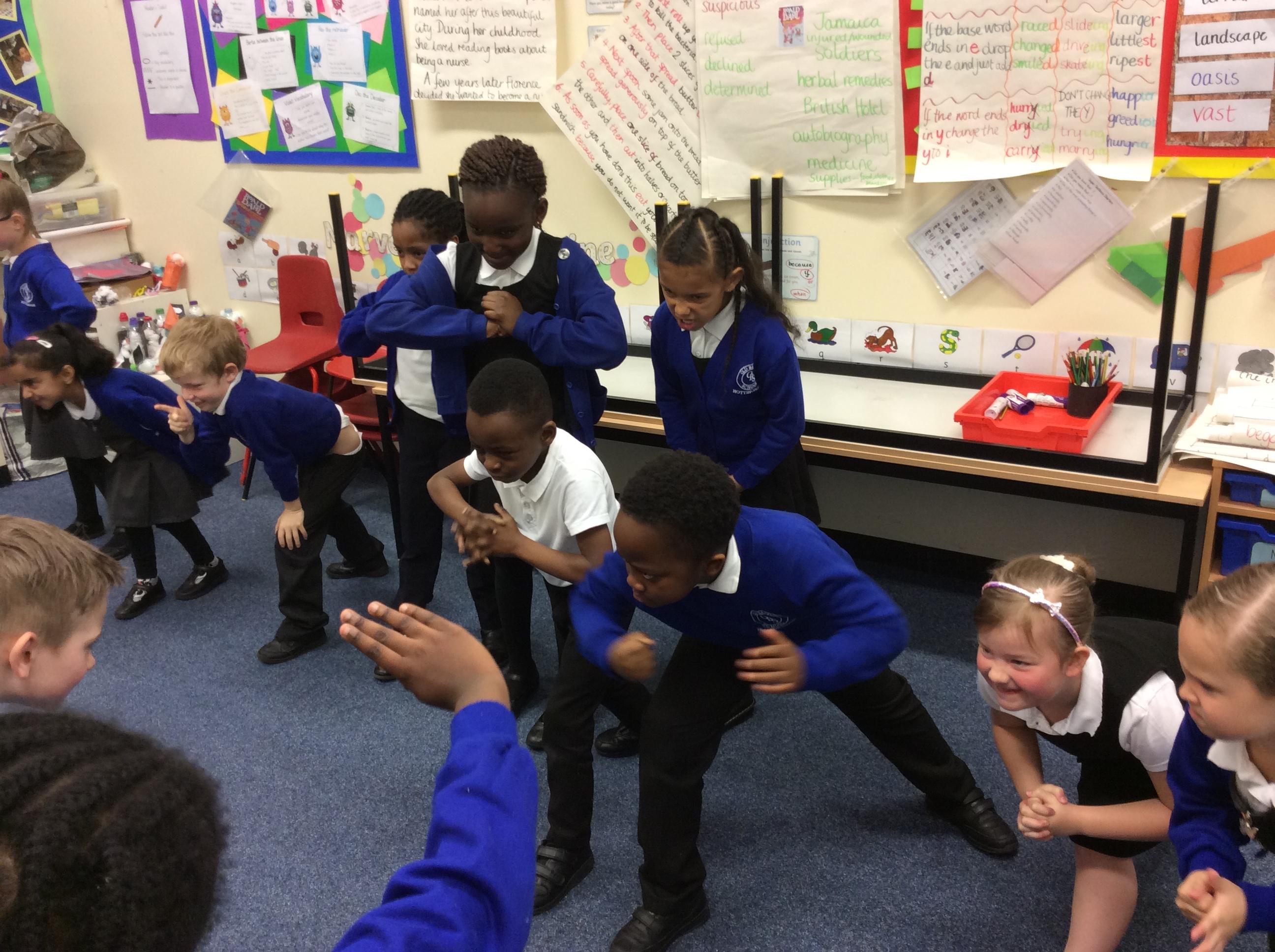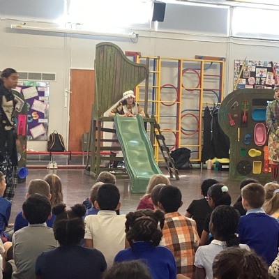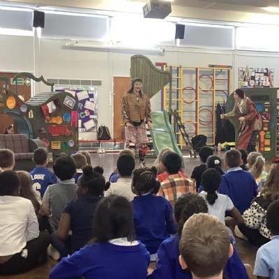 Before watching the RSC First Encounters production of The Tempest, the Y6 classes took part in two workshops held by the actor Tyreke Leslie. In the workshops, Tyreke helped the children understand the characters' personalities and through drama techniques. They also looked at colonialism and the effect of Prospero taking over Caliban's island. This work lined to the topic of 'Taste of the Caribbean' which Y6 will learn about in the Summer term.