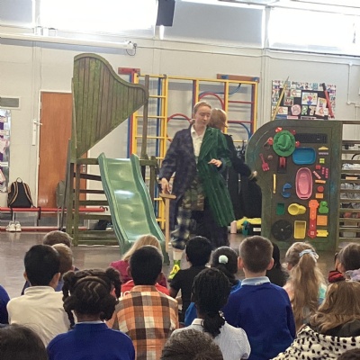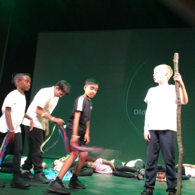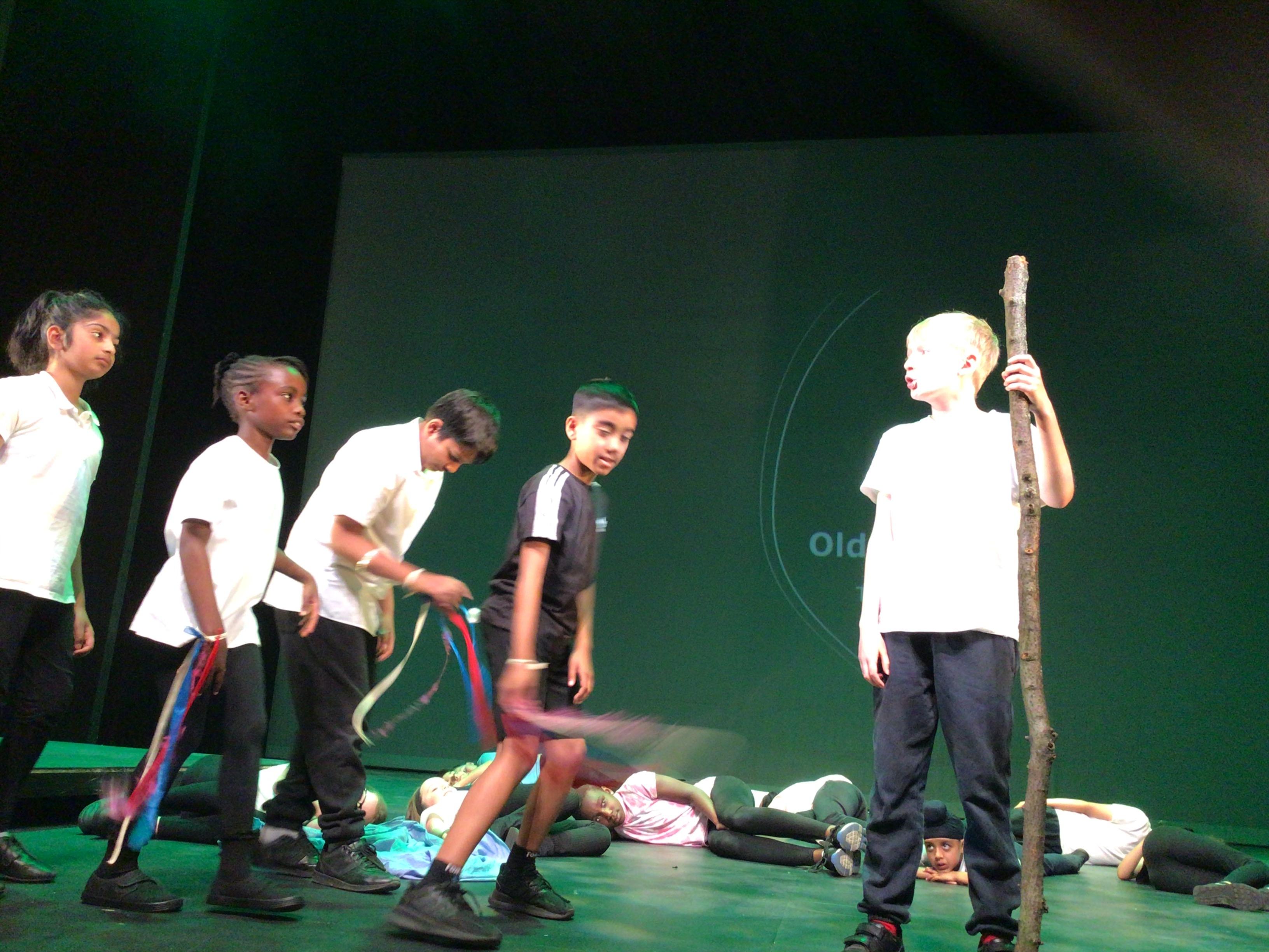 Twenty Year 4 children had the amazing experience of performing at the Theatre Royal in a production of Macbeth with eight other Nottingham schools. OBS performed the final part of the play. They all had 1 or 2 lines to say and all ‘danced’ in a fight scene which was to an original song that they had previously created in school with the musician Liam Maloy.