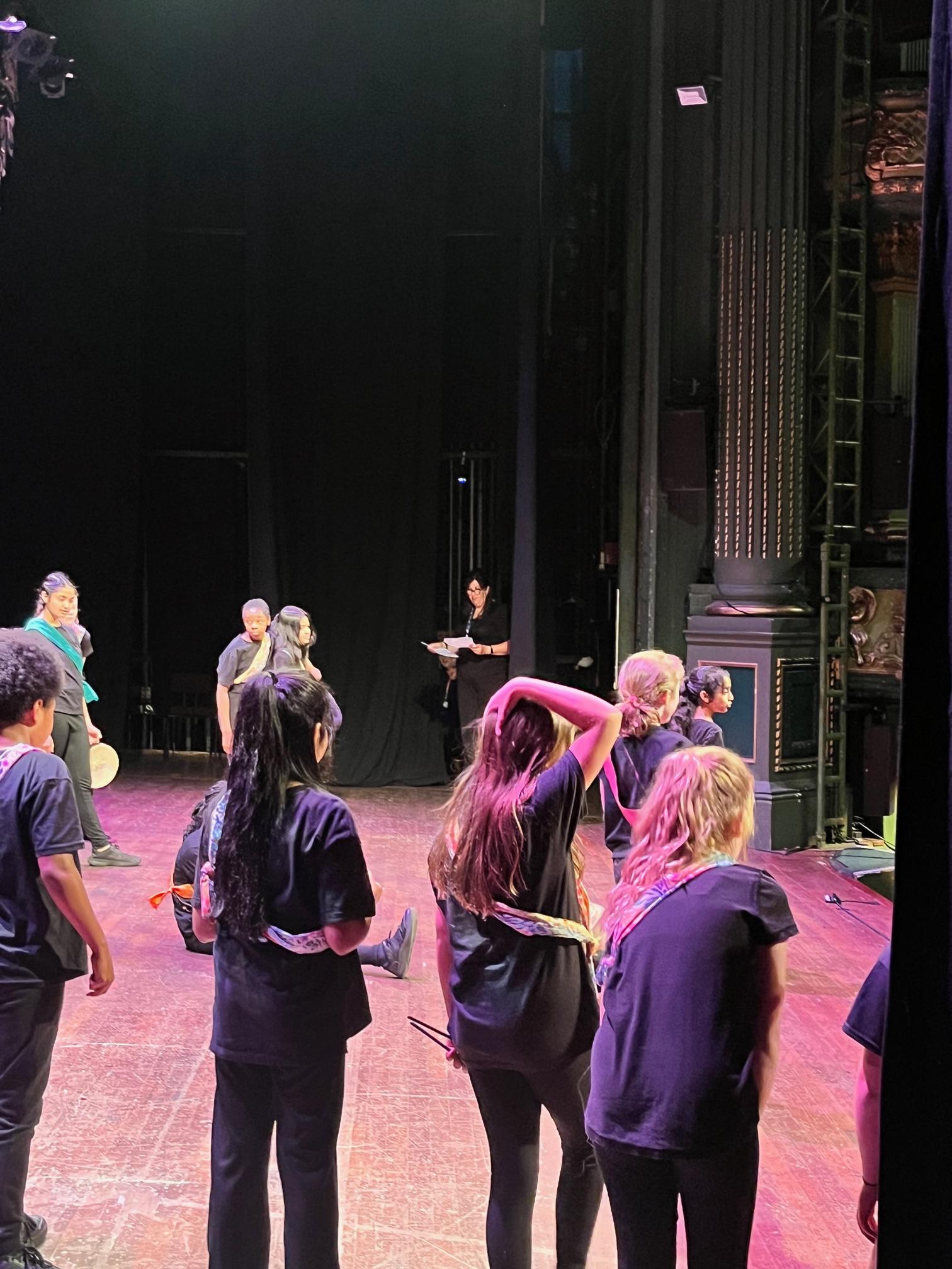 On Tuesday 16th July 2024 20 children from Old Basford joined the other 10 Nottingham RSC Associate schools in the annual playmaking festival at the Nottingham Theatre Royal. This year each school was assigned a scene from Shakespeare's 'Romeo and Juliet'. We were proudly represented by the KS2 drama club. Originally the main cast comprised just of Y5s (Brayiah, Eva-Poppy, Liliana, Loki, Maddie, Millie, Niko, Owen, Phoebe, Phoenix, Princess and Rowan) who have given their free time for the past term. However, after working with a drama specialist in lessons, I, Mrs Thomas, made the decision to invite some standout students in Y4 (Grace, Isla, Jude and Max) to join the cast and to make up some important ‘extras’.
