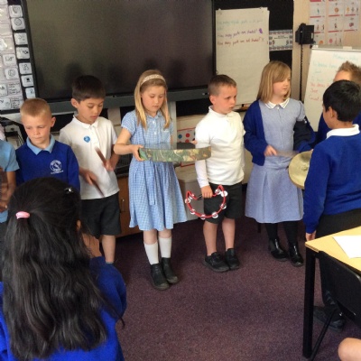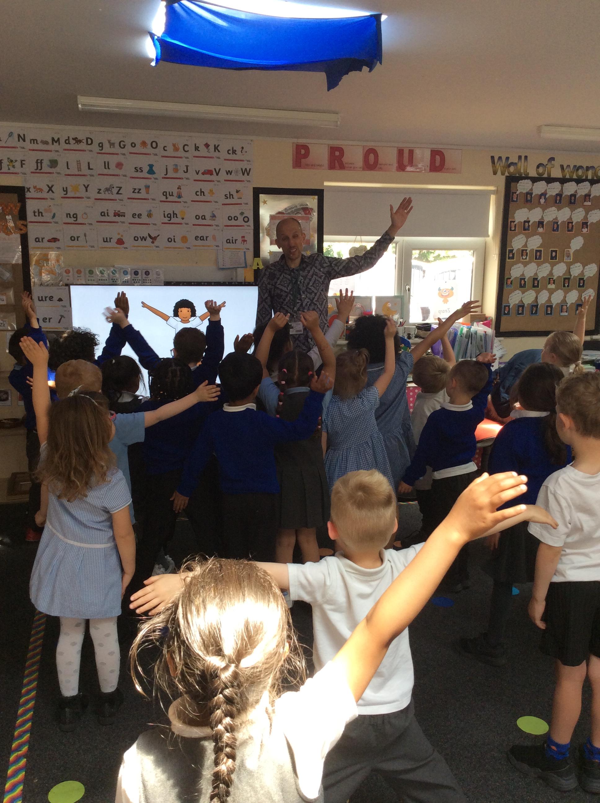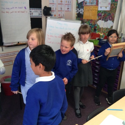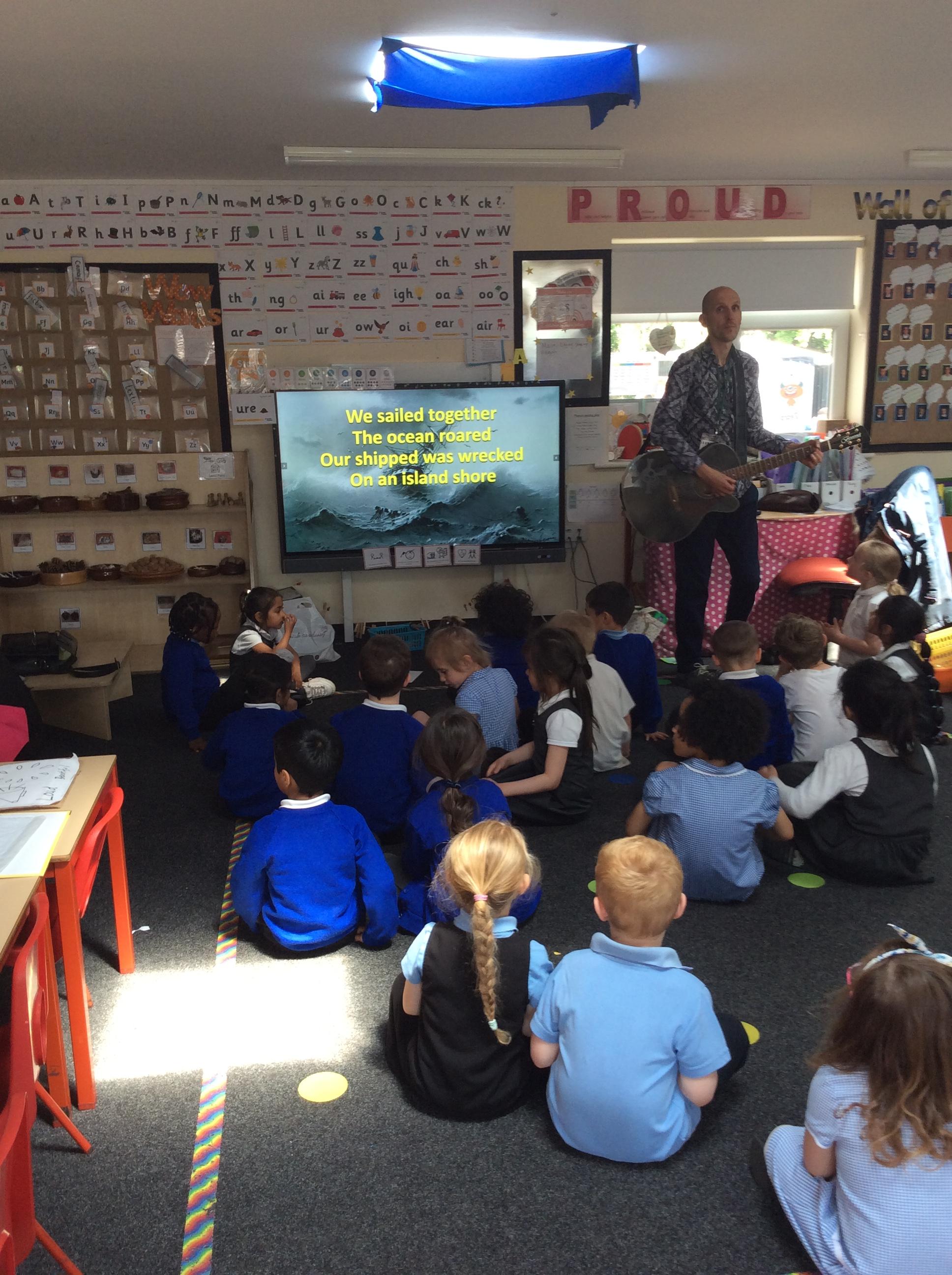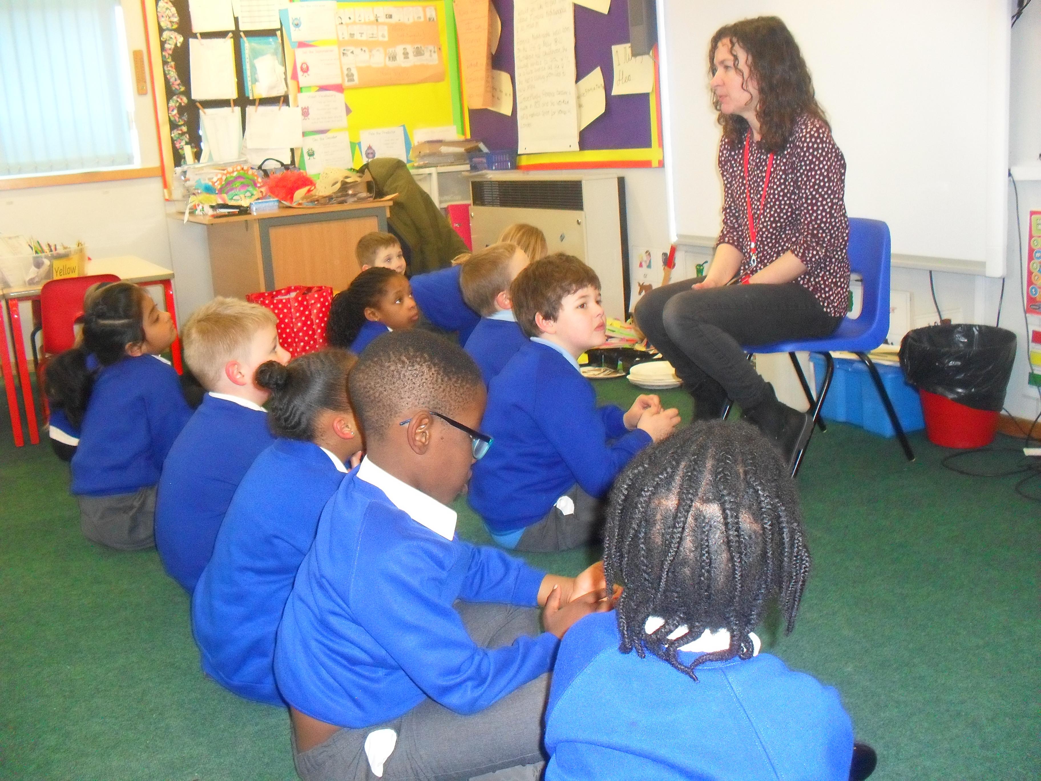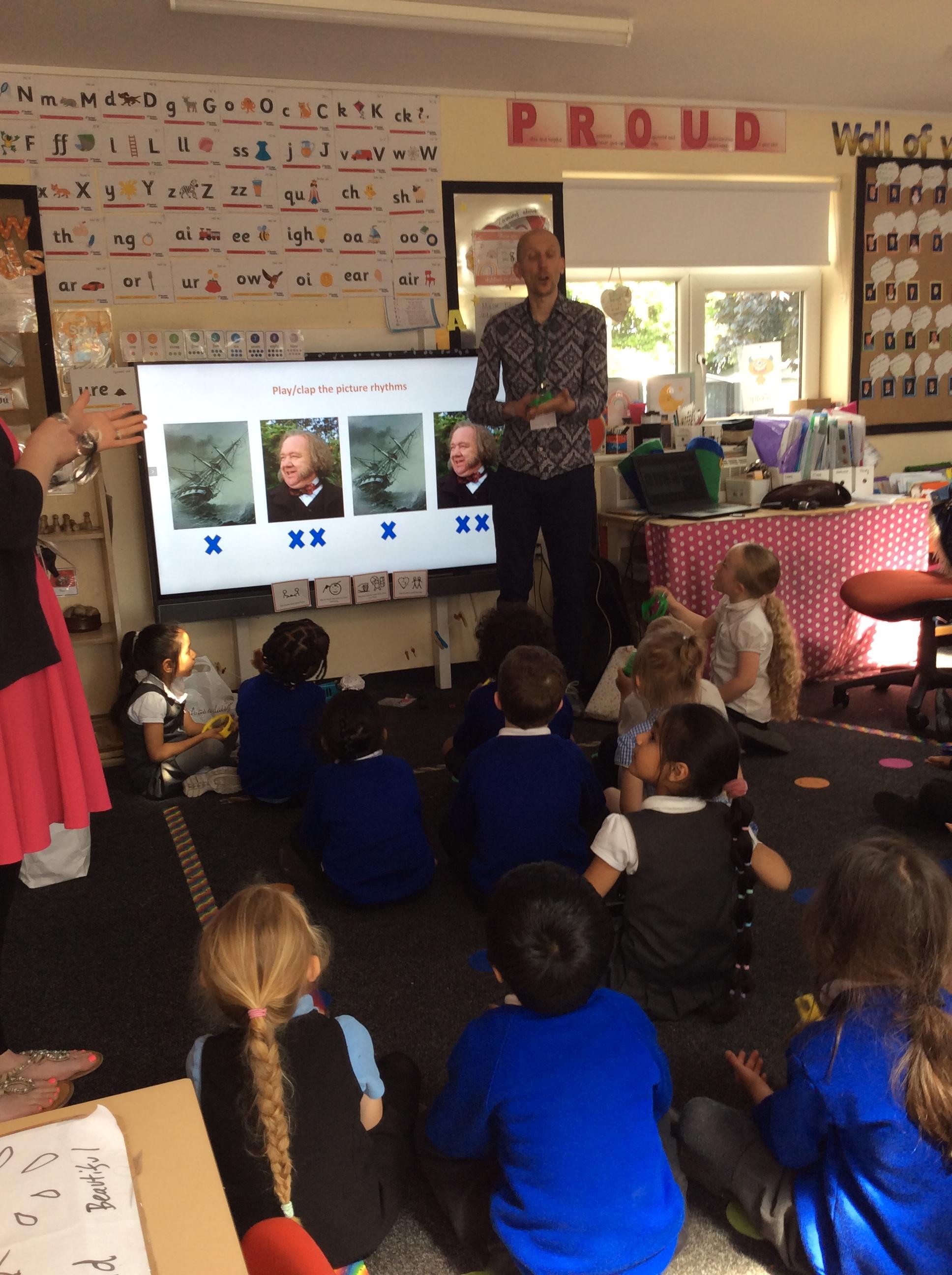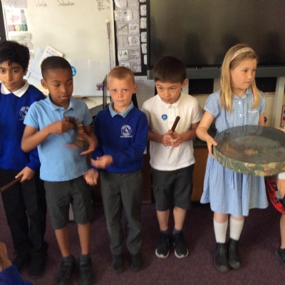 One of the wonderful benefits of being an RSC associate school is that the children have the privilege of being taught by creative practitioners to enhanced their learning. It is also great training for the teachers has they get lots of ideas from them. Year 1 and Year 5 both had a full day each of working Martha Toogood, a drama specialist. F2 and Y4 worked with Liam Malloy, a professional musician. Y3 had a full day with Jane Stockley, a visual artist.