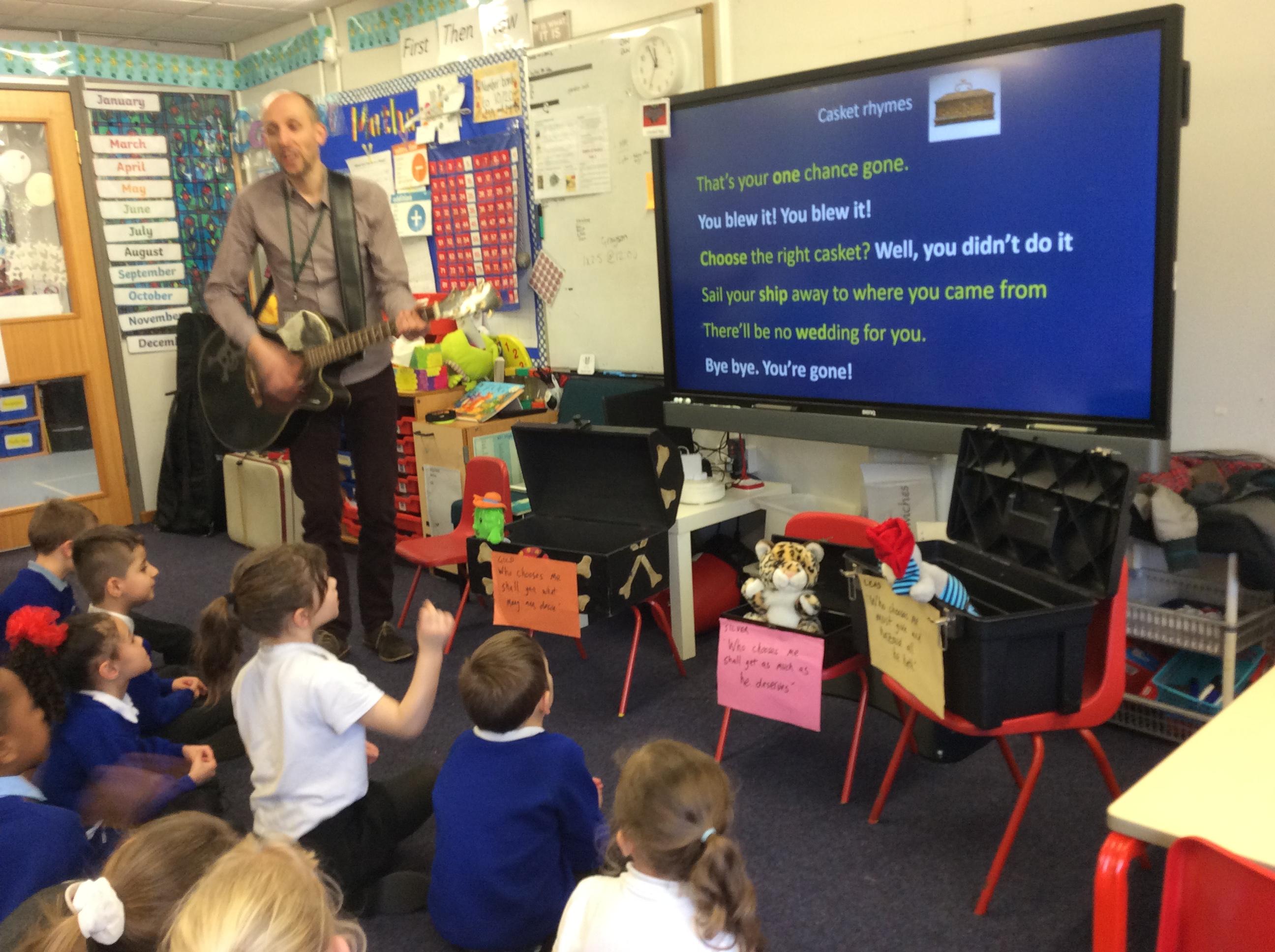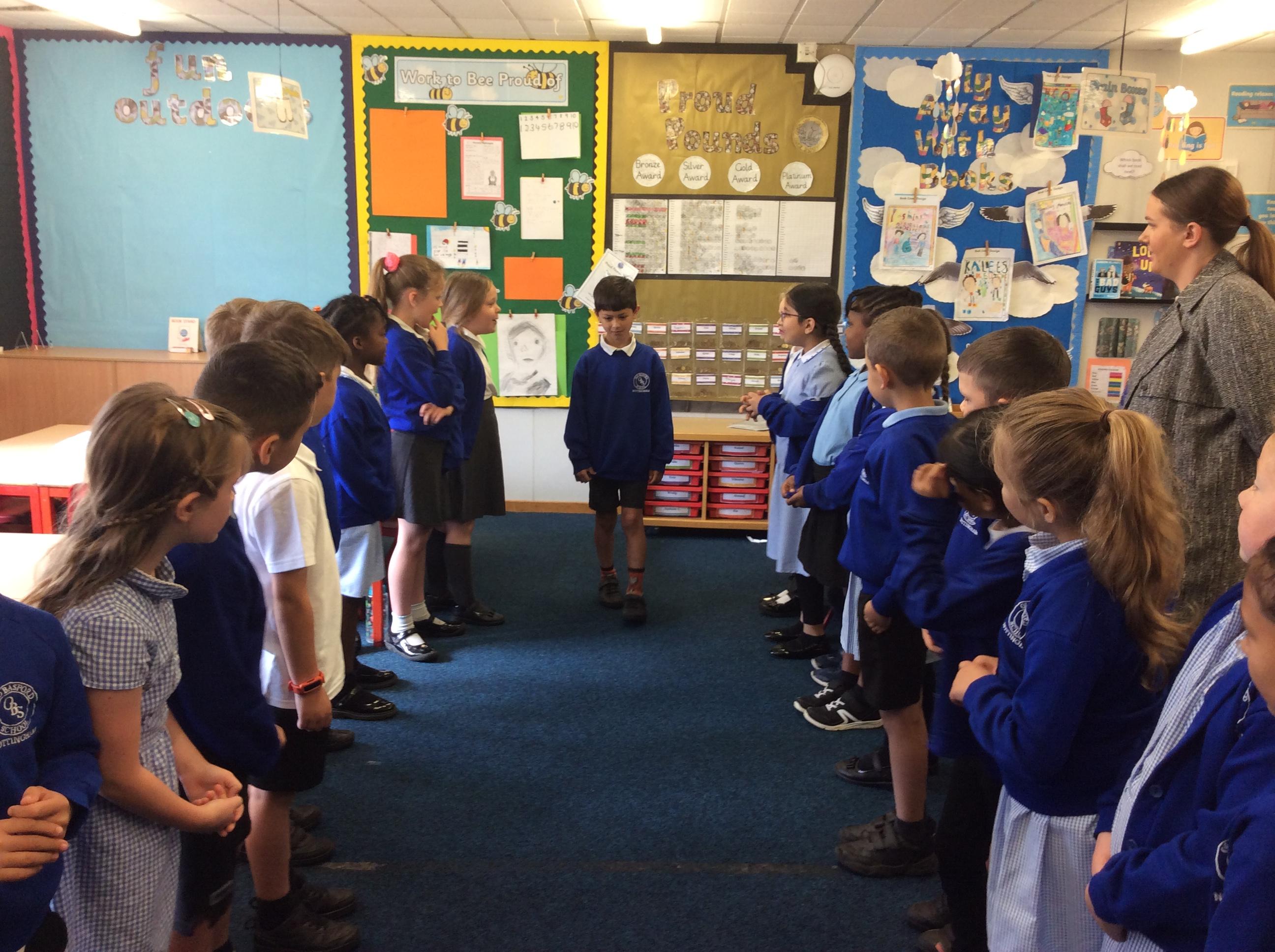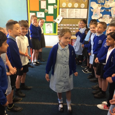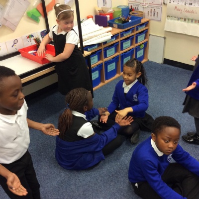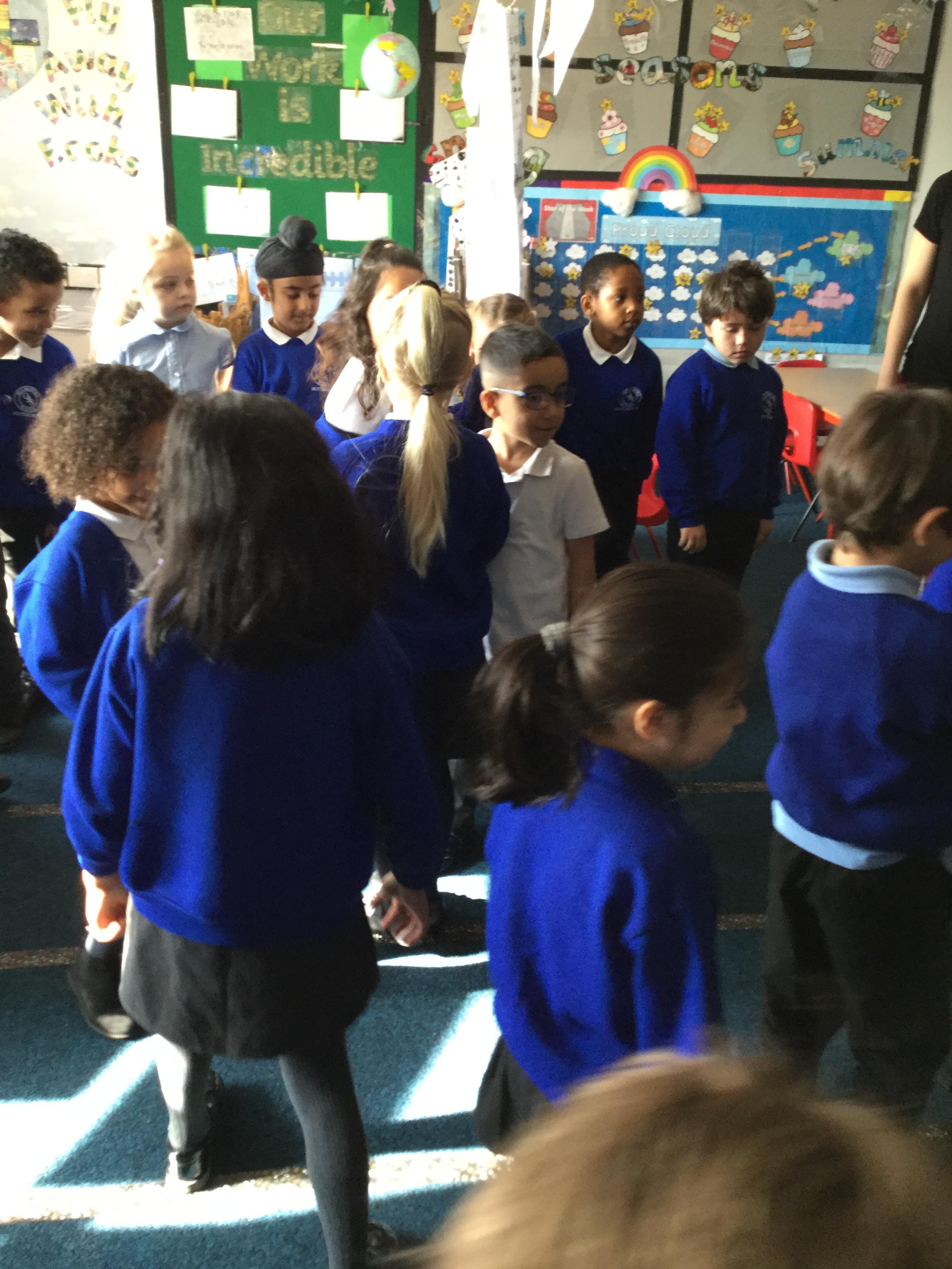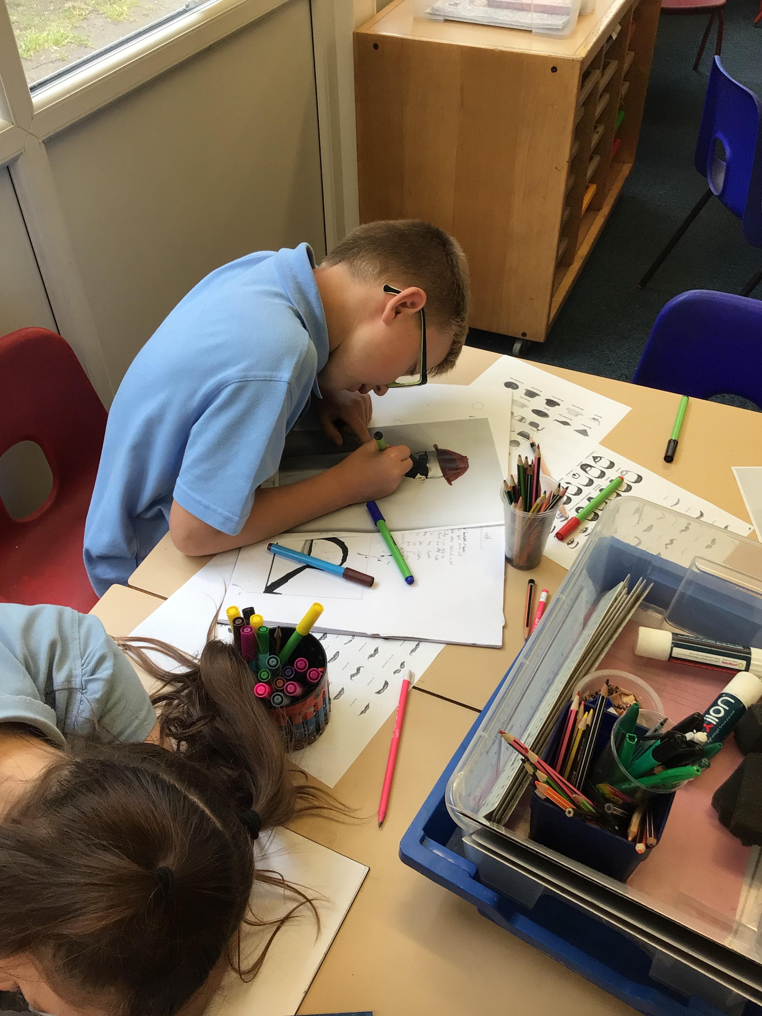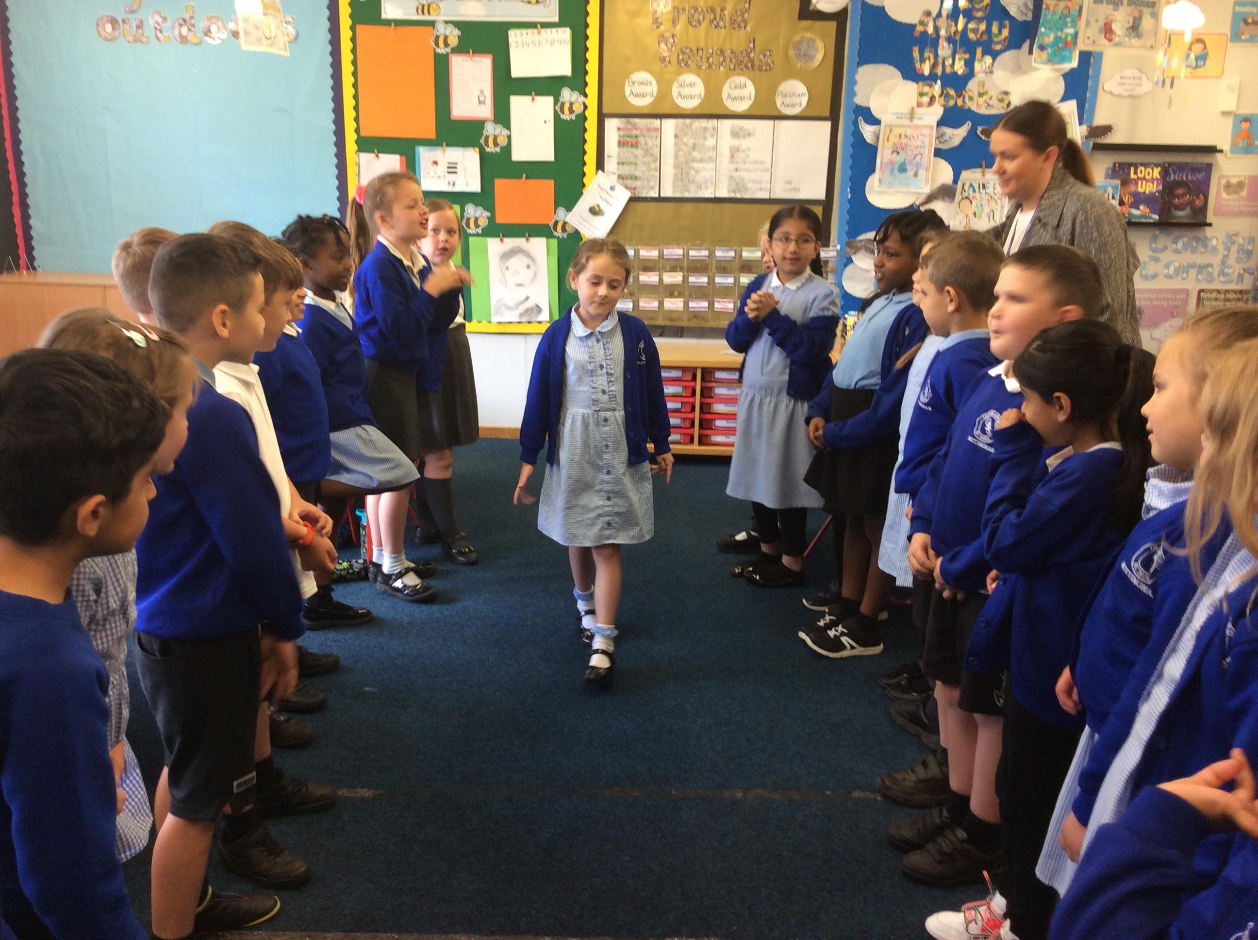 One of the wonderful benefits of being an RSC associate school is that the children have the privilege of being taught by creative practitioners to enhanced their learning. It is also great training for the teachers has they get lots of ideas from them. Year 1 and Year 5 both had a full day each of working Martha Toogood, a drama specialist. F2 and Y4 worked with Liam Malloy, a professional musician. Y3 had a full day with Jane Stockley, a visual artist.