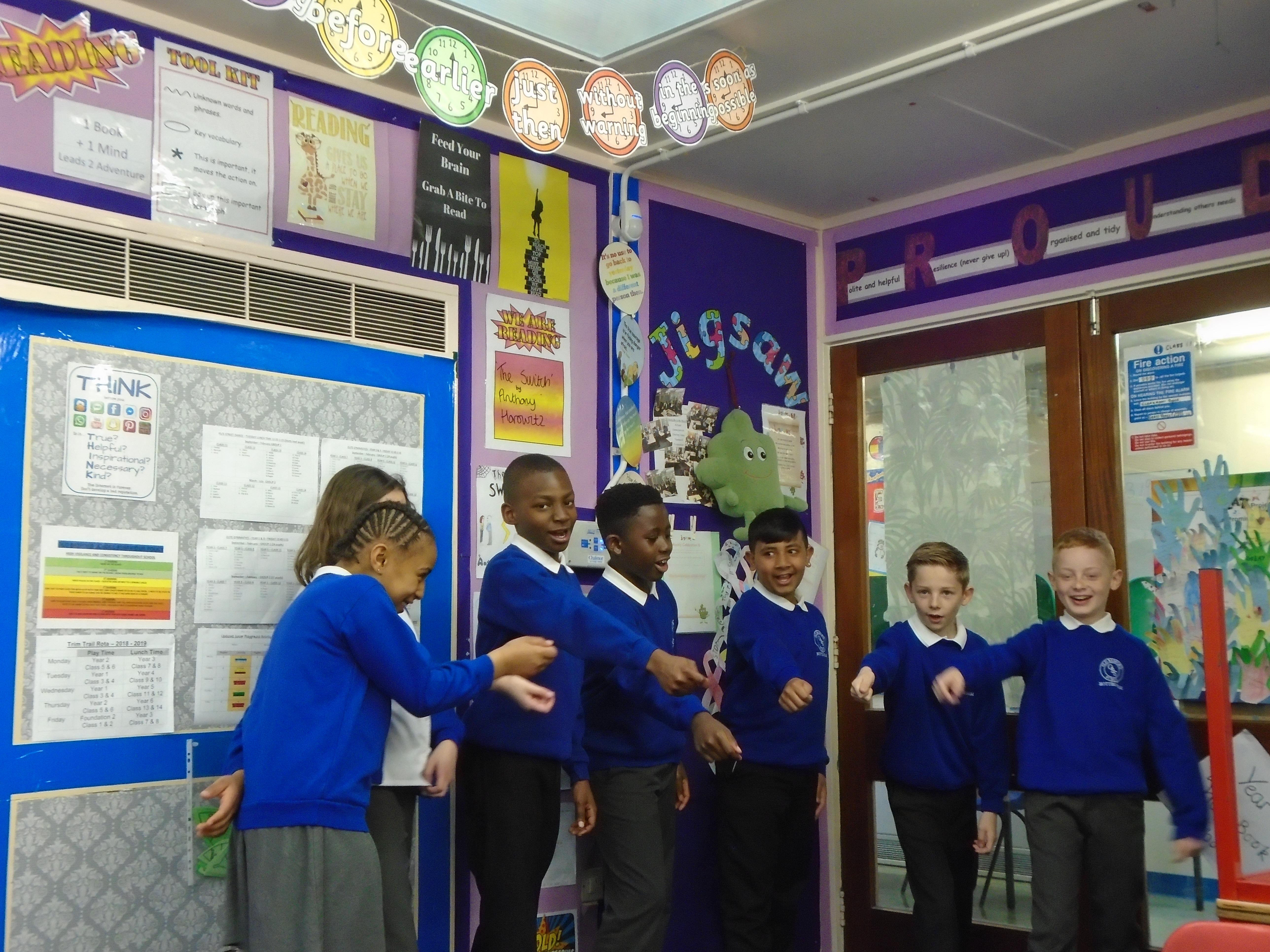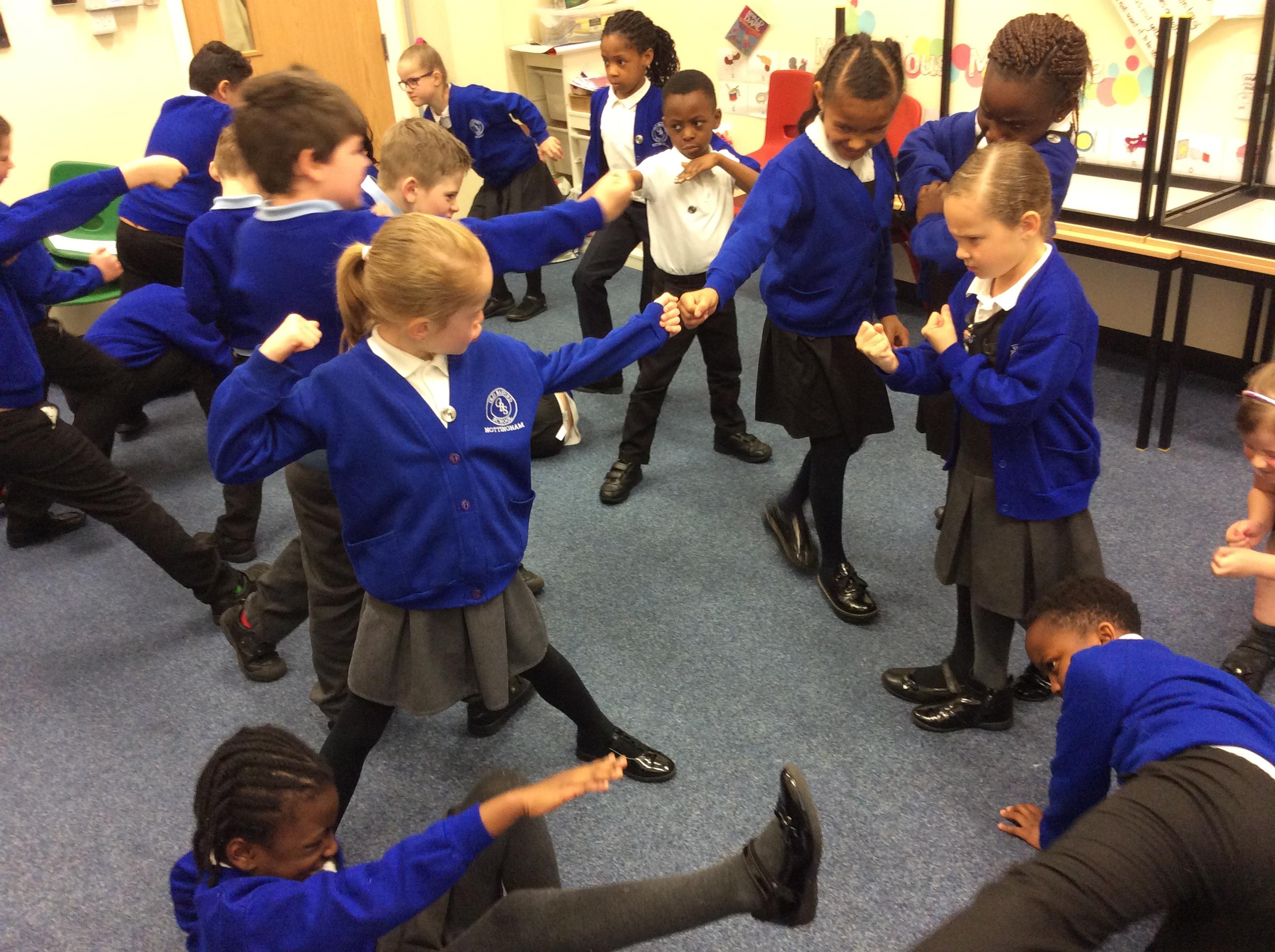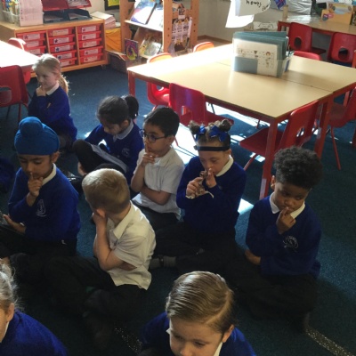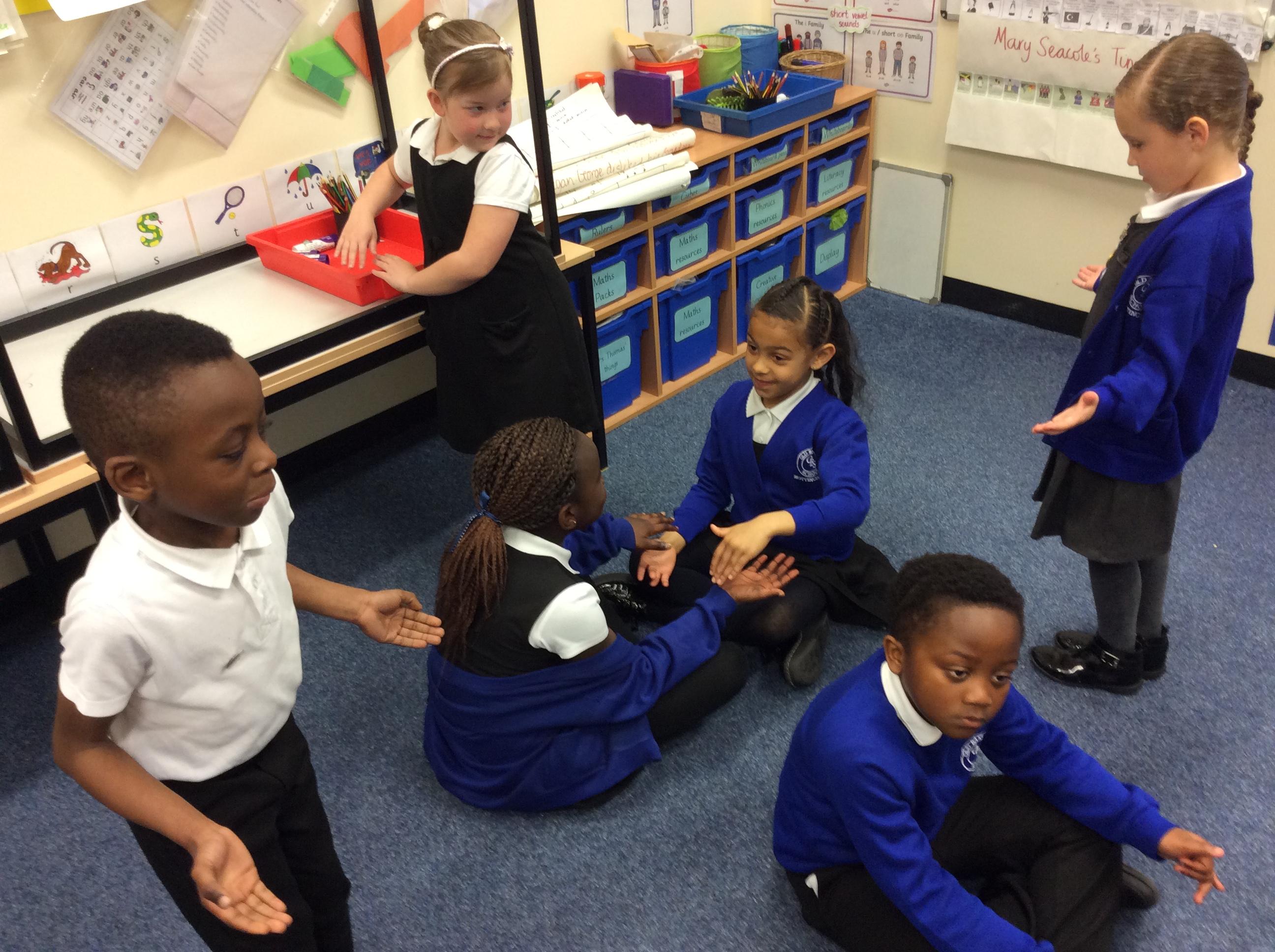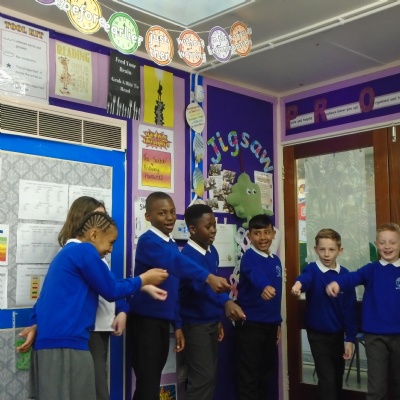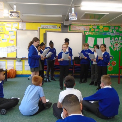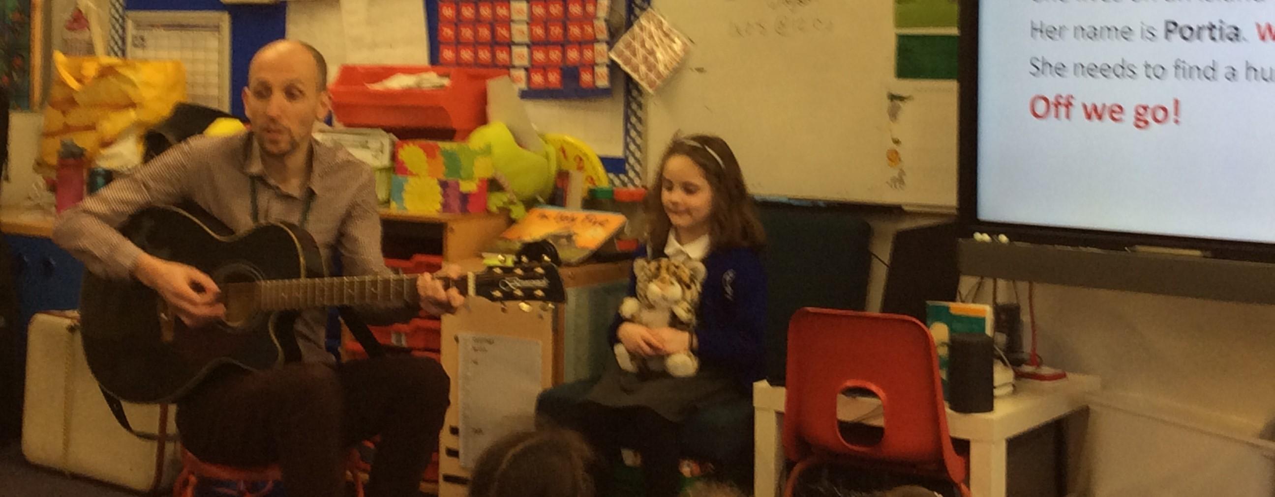 One of the wonderful benefits of being an RSC associate school is that the children have the privilege of being taught by creative practitioners to enhanced their learning. It is also great training for the teachers has they get lots of ideas from them. Year 1 and Year 5 both had a full day each of working Martha Toogood, a drama specialist. F2 and Y4 worked with Liam Malloy, a professional musician. Y3 had a full day with Jane Stockley, a visual artist.