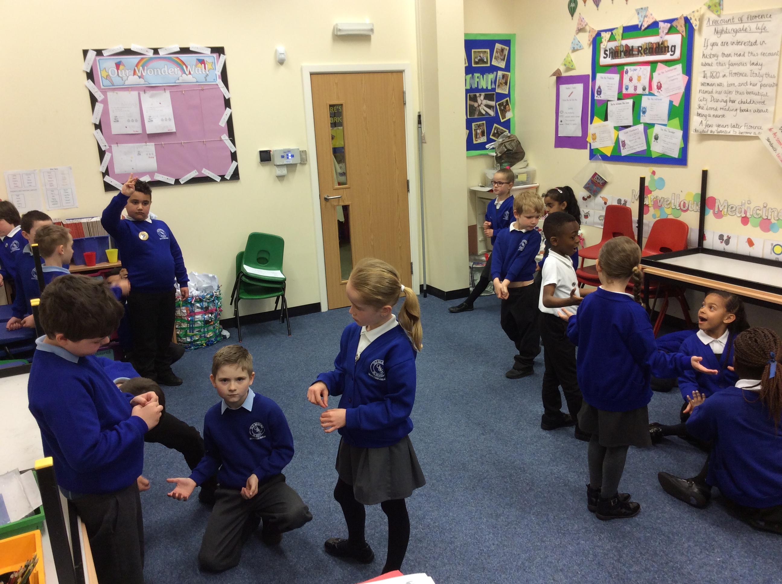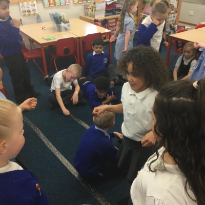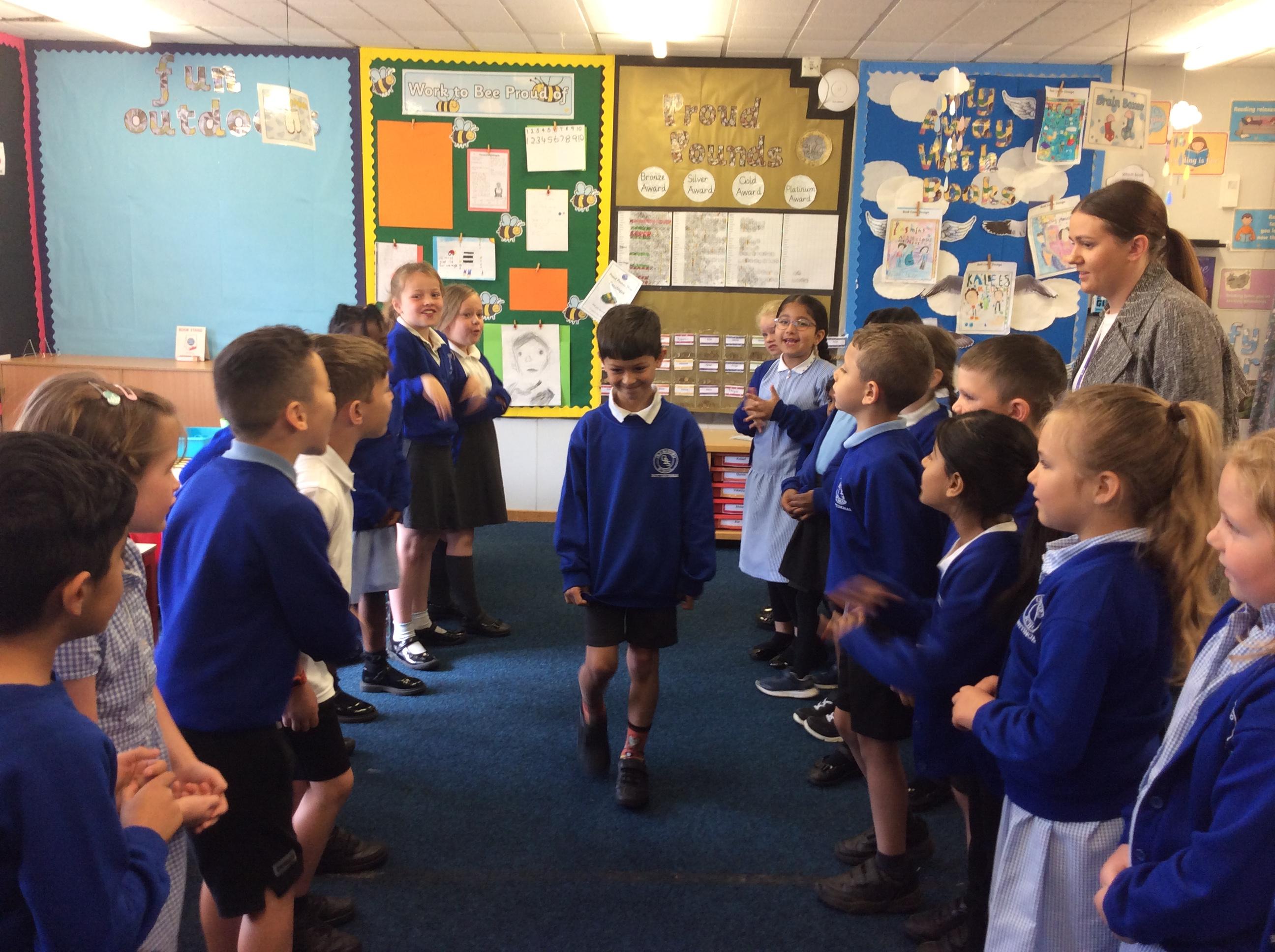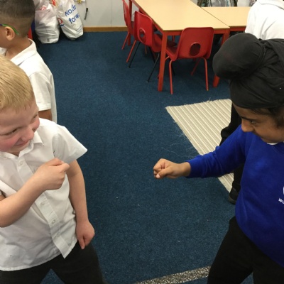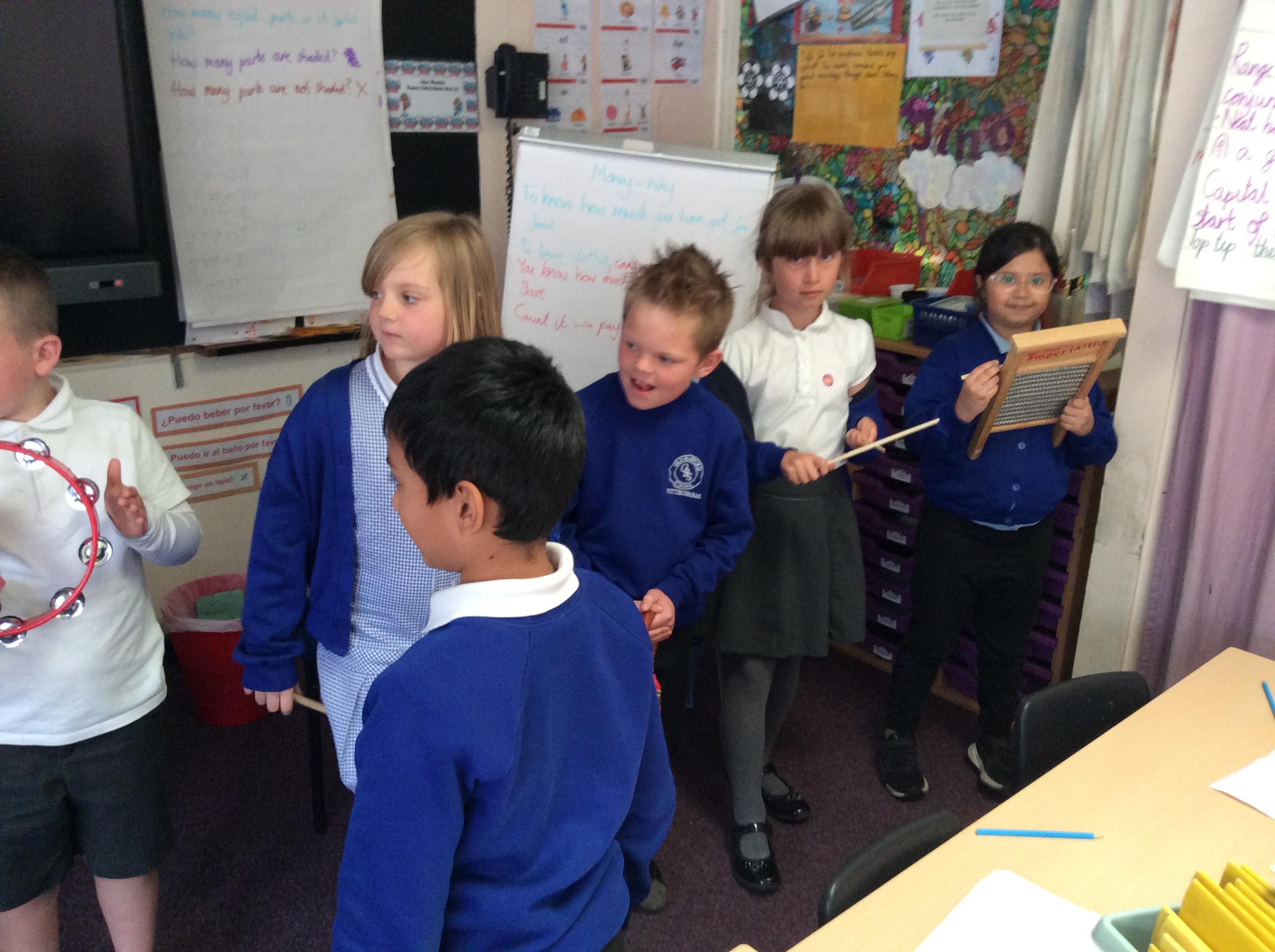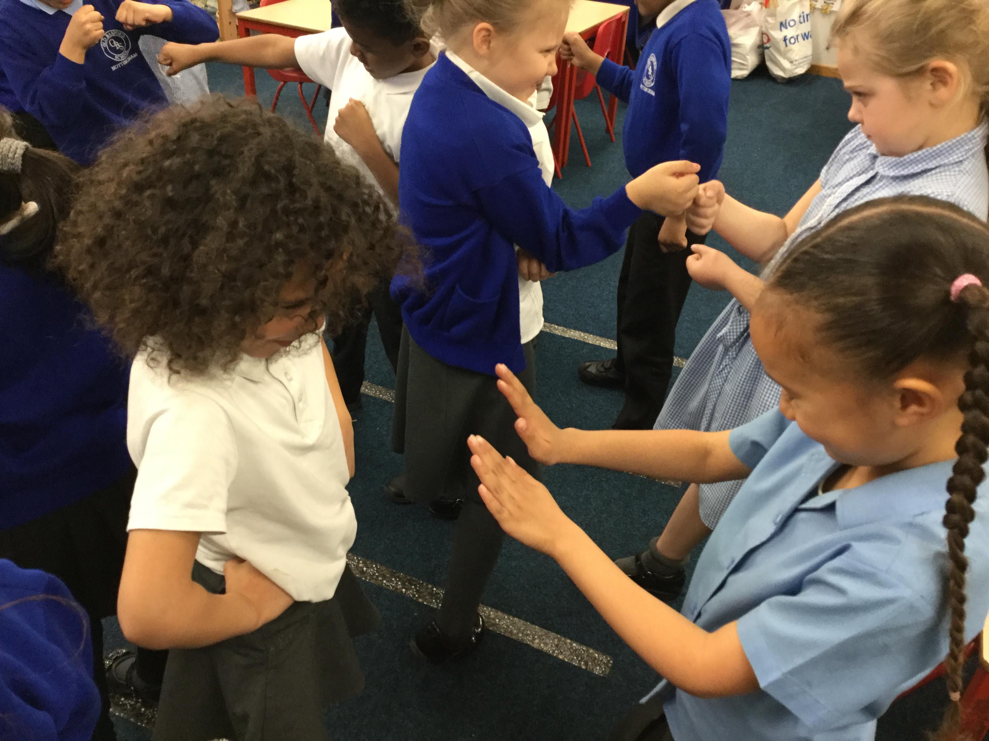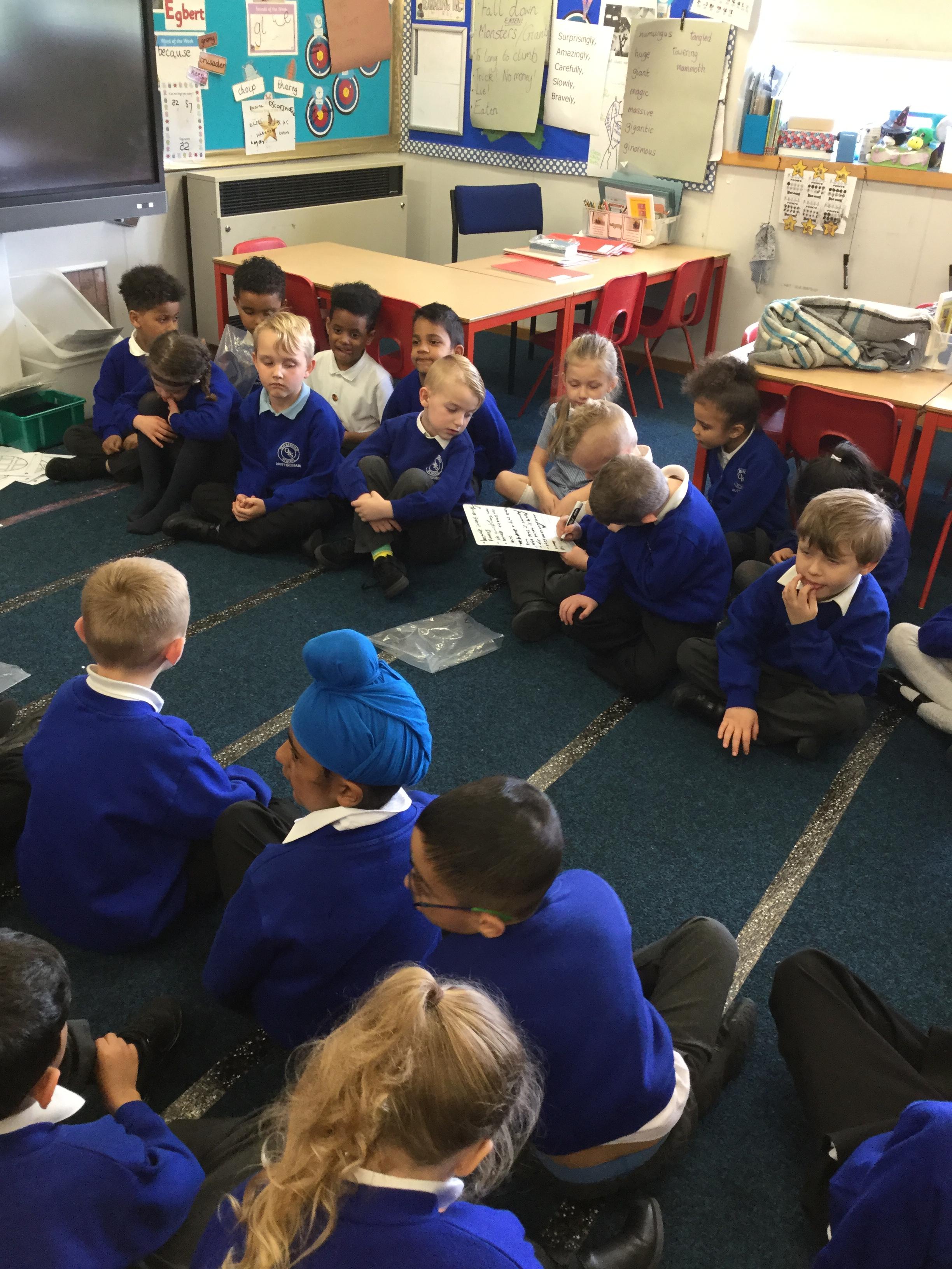 One of the wonderful benefits of being an RSC associate school is that the children have the privilege of being taught by creative practitioners to enhanced their learning. It is also great training for the teachers has they get lots of ideas from them. Year 1 and Year 5 both had a full day each of working Martha Toogood, a drama specialist. F2 and Y4 worked with Liam Malloy, a professional musician. Y3 had a full day with Jane Stockley, a visual artist.
