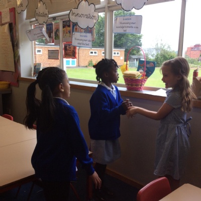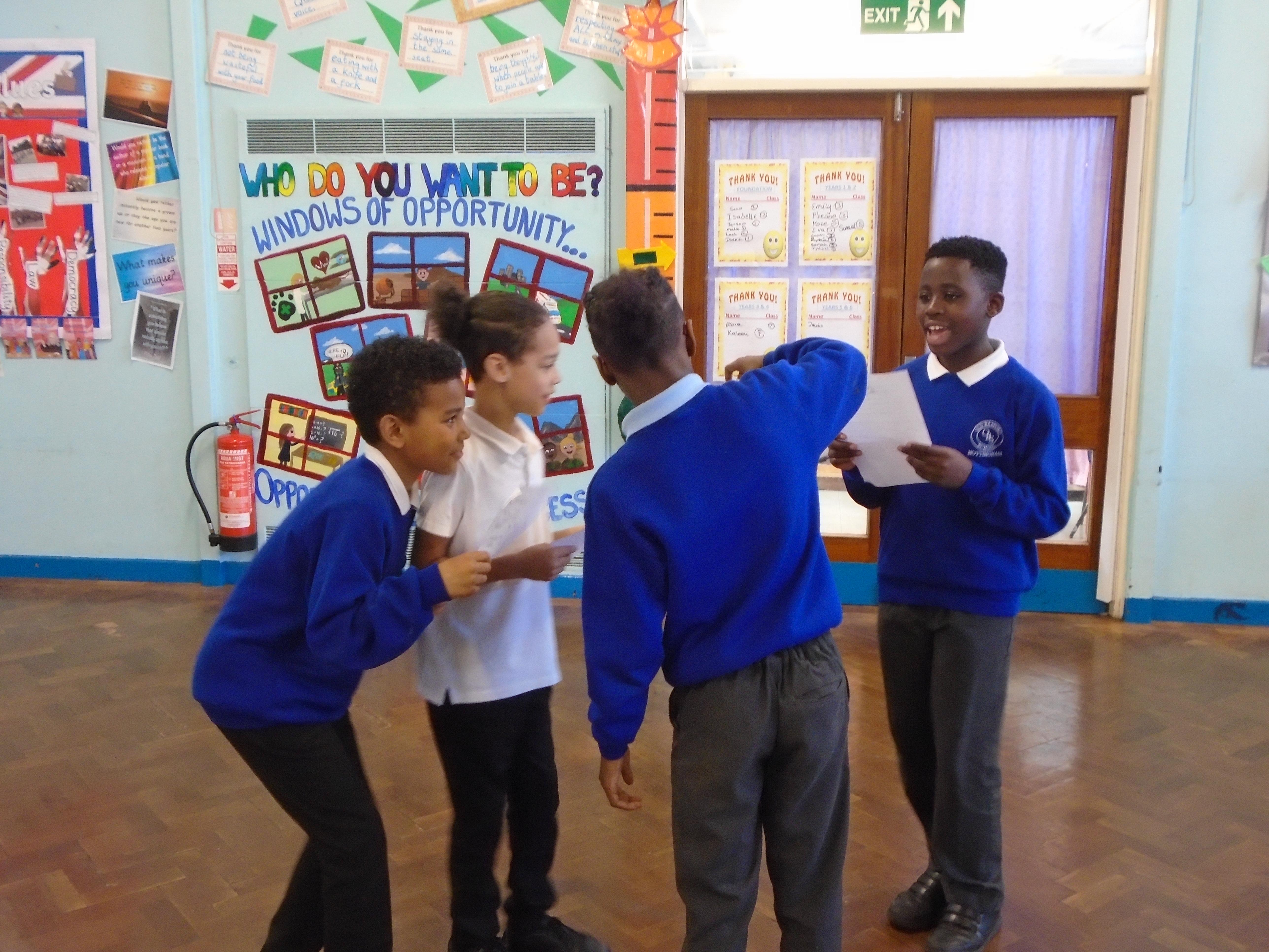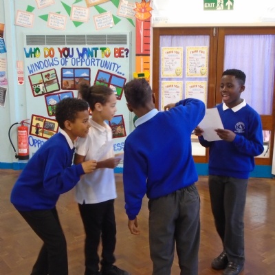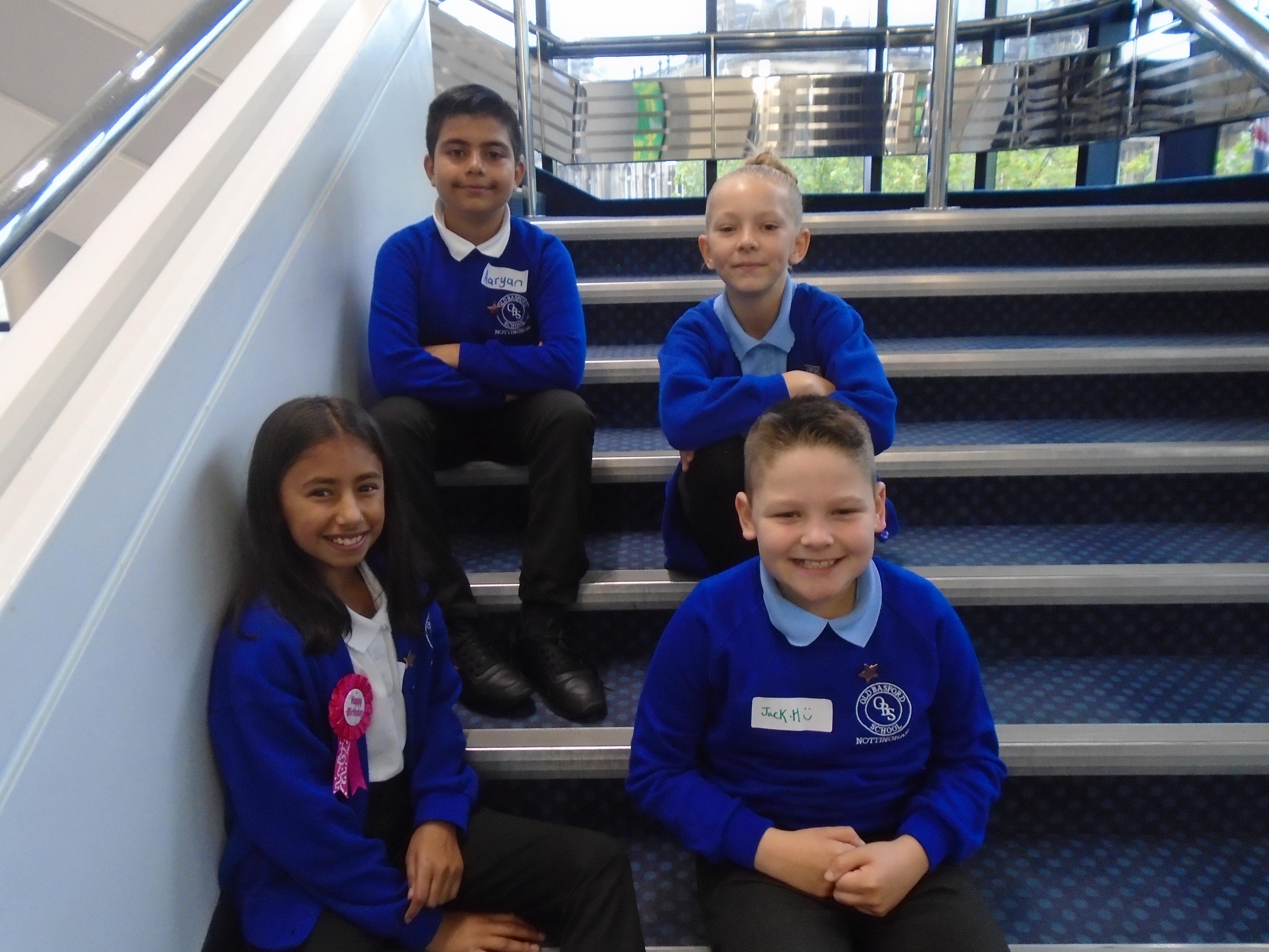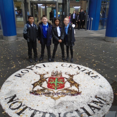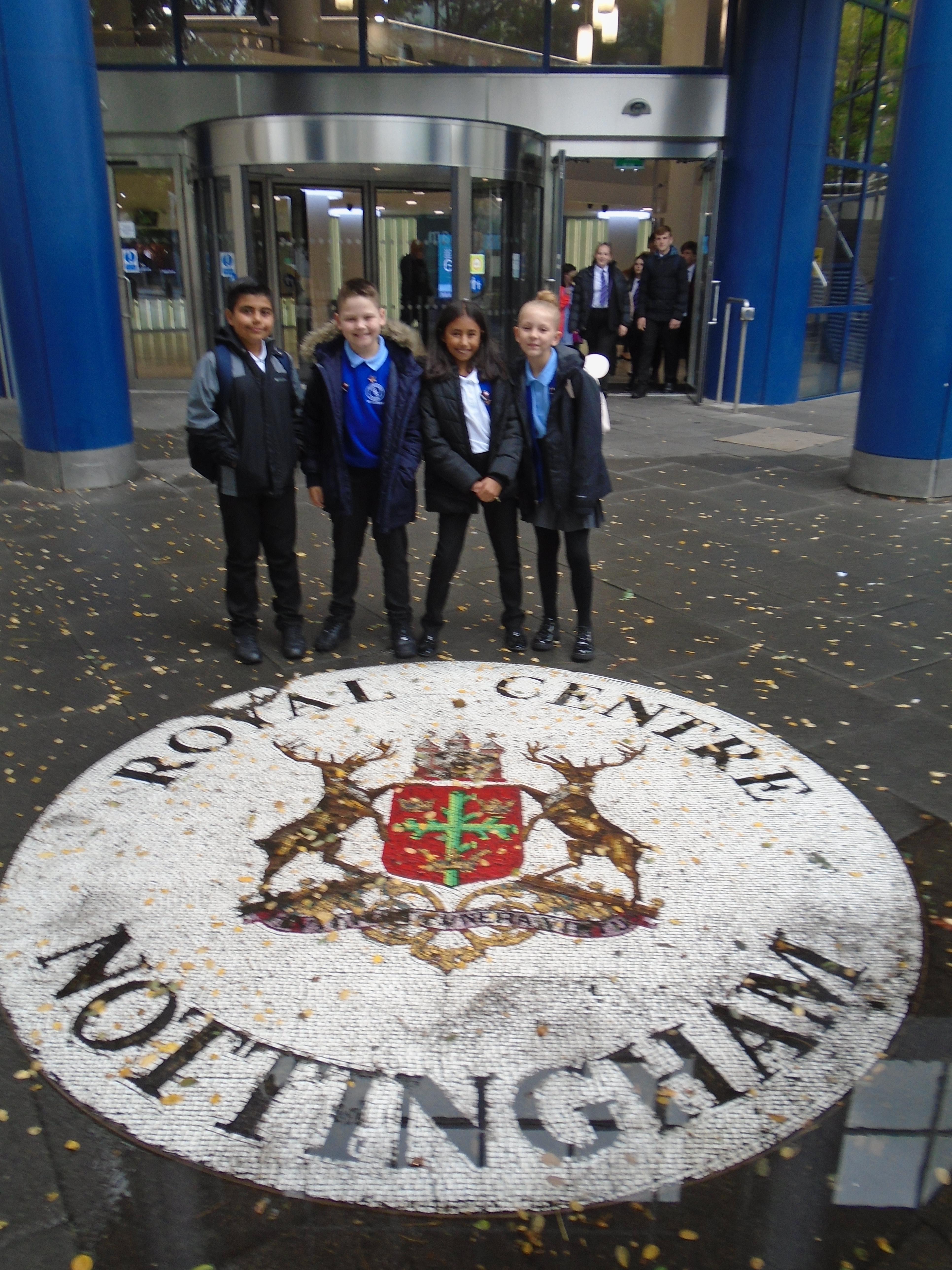 Exciting news!For the first time ever we have 4 Shakespeare Ambassadors at OBS. Today Mrs Thomas took the 4 lucky pupils, Aaryan, Jack, Kara and Nemrah to the Theatre Royal to have their introductory trainind session with members of the Royal Shakespeare Company Education Team. We had a great day getting to know the other 36 Nottingham pupils who have been given this prestigious title. The boys and girls got to know about their roles and responsibilities and now have a better understanding about spreading the word about Shakespeare. The children came away full of enthusiasm and really motivated to carry out their roles. The first thing the ambassadors have pledged to do is set up a Key Stage One drama club at lunchtimes. Planning will begin shortly and we hope to start in November.