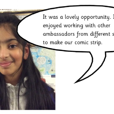 On Monday 23rd January our three Shakespeare ambassadors, Amaya, Sarah and Wahenoor, went to Nottingham Theatre Royal. They had the fantastic opportunity to work with Lizzie Hopley from the RSC on story and playwriting. The workshop was based on the RSC's '37 plays' project which is to create and inspire a new generation of writers. The children worked with other RSC ambassadors on drama activities, story telling and collaborative comic strip drawings.