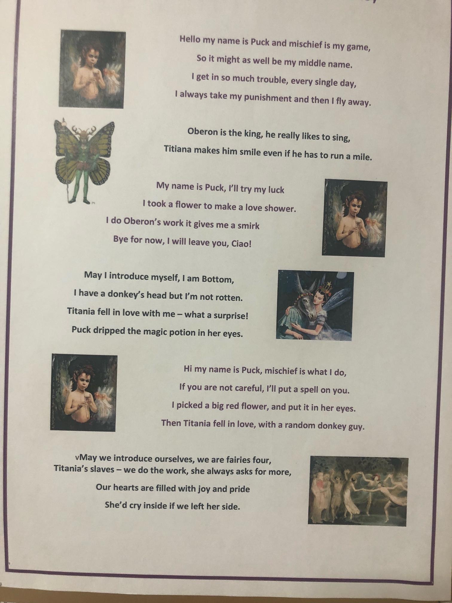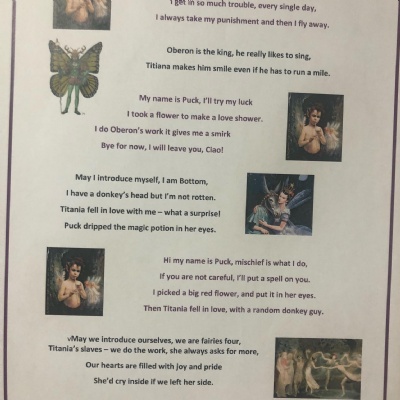 Our Shakespeare week this year was very successful and was based on A Midsummer Night's Dream. All children from Nursery to Year 6 were involved in studying the play (at the appropriate level) and produced some amazing work.