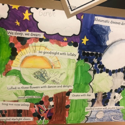 This year during our Shakespeare week we have all studied 'Romeo and Juliet'. Every year group has worked on different parts of the play and have produced some fabulous work. As part of the Associate schools programme, Nottingham schools have the privilege of working alongise other artists who come into school to deliver workshops to some year groups. This year Year 3 and Year 6 were lucky to work on their drama skills with Martha Toogood, Year 2 worked with the visual artist Jane Stockley and Year 5 worked with the musician Liam Malloy. Look at the year group website pages to see the work that has been going on.