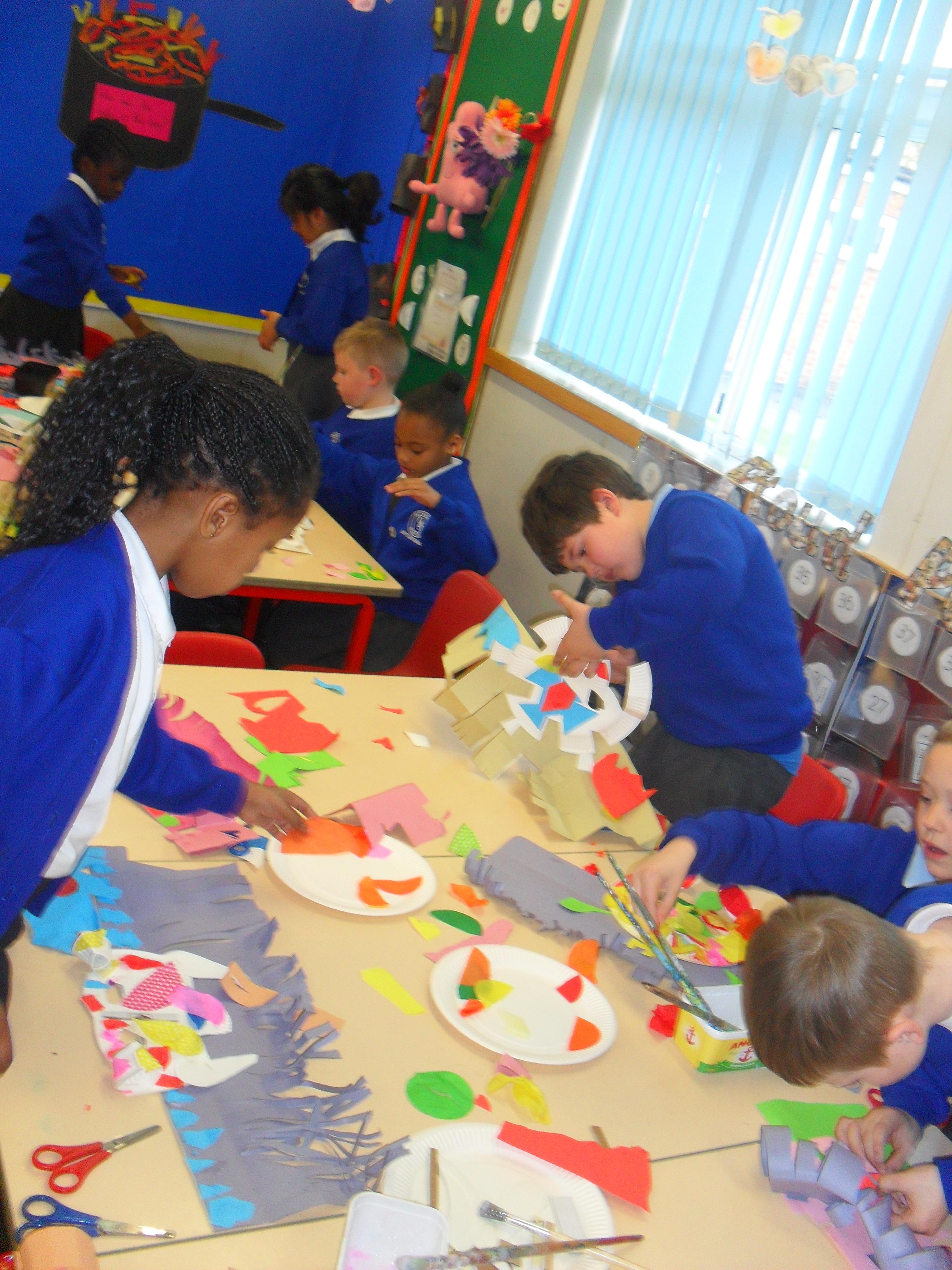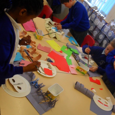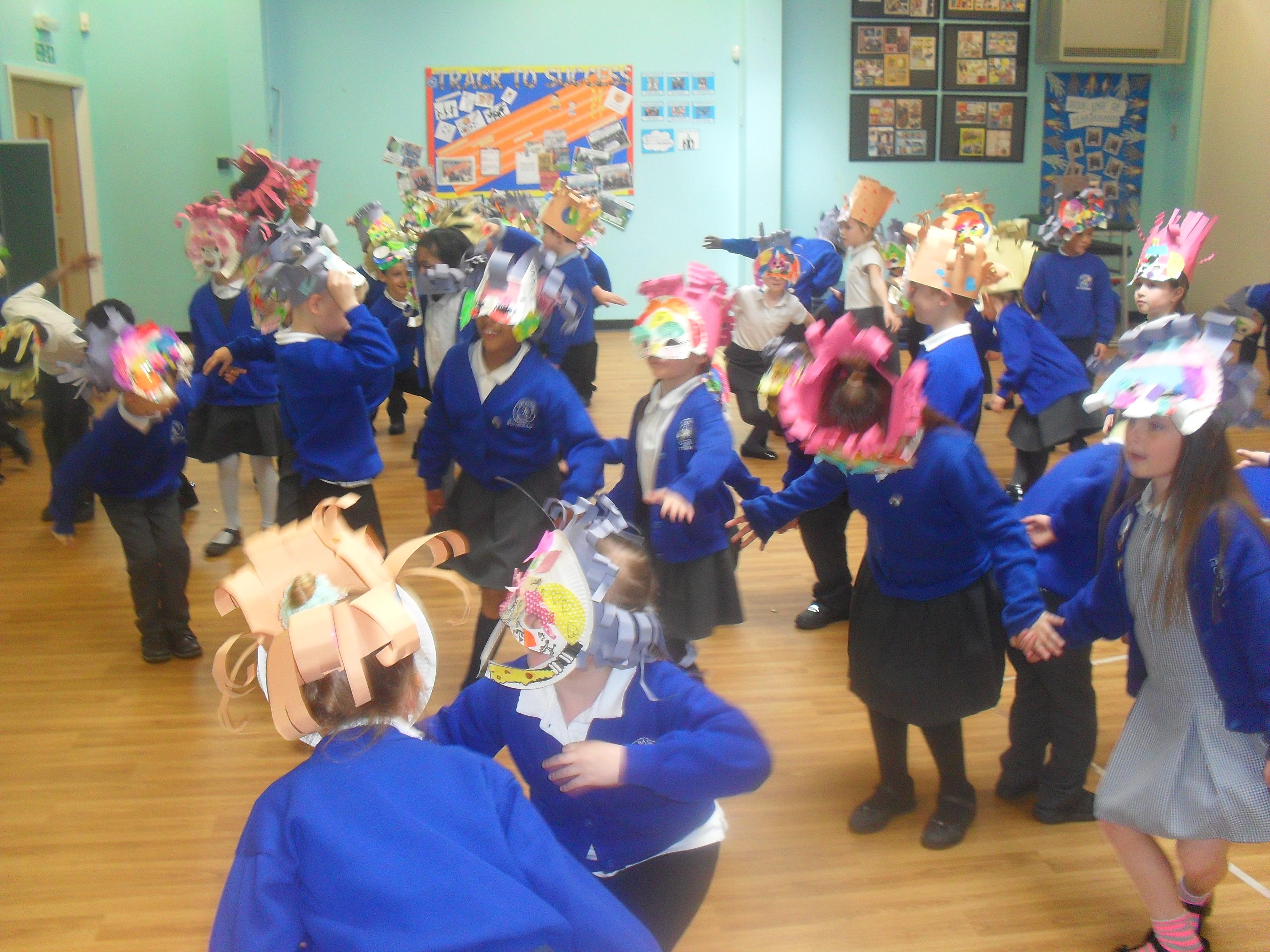 The rest of the school (and the children when not working with specialists) were involved in drama activities, art, music, dance, IT and written pieces of work. Please see the photographs below of a selection of their work. Or alternatively, go to class pages to see even more examples of their work.