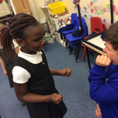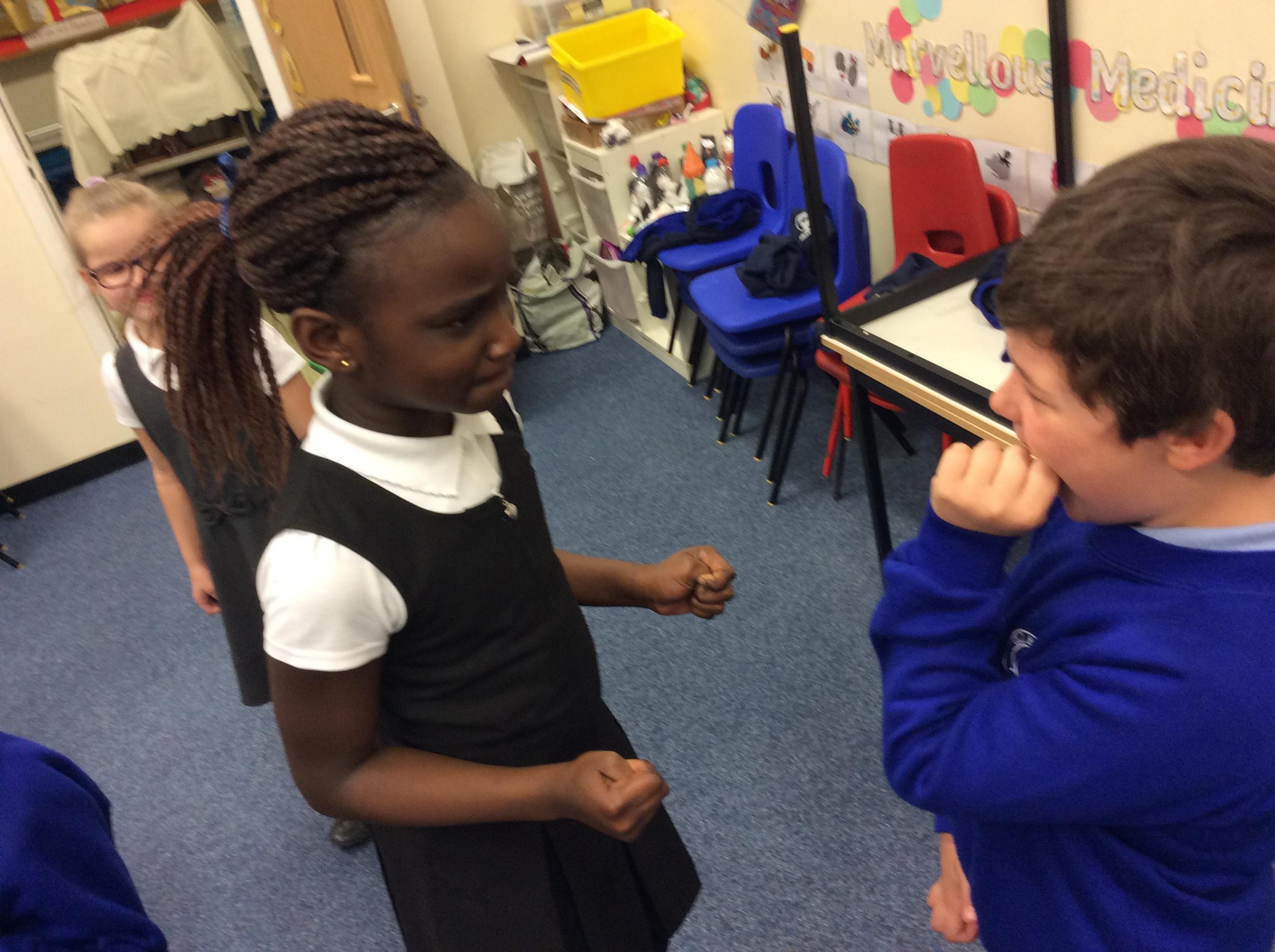 We worked with Nicky from the RSC to practise our scene. We had loads of fun and she gave us lots of directing ideas. Look at the video below to see part of our rehearsal.