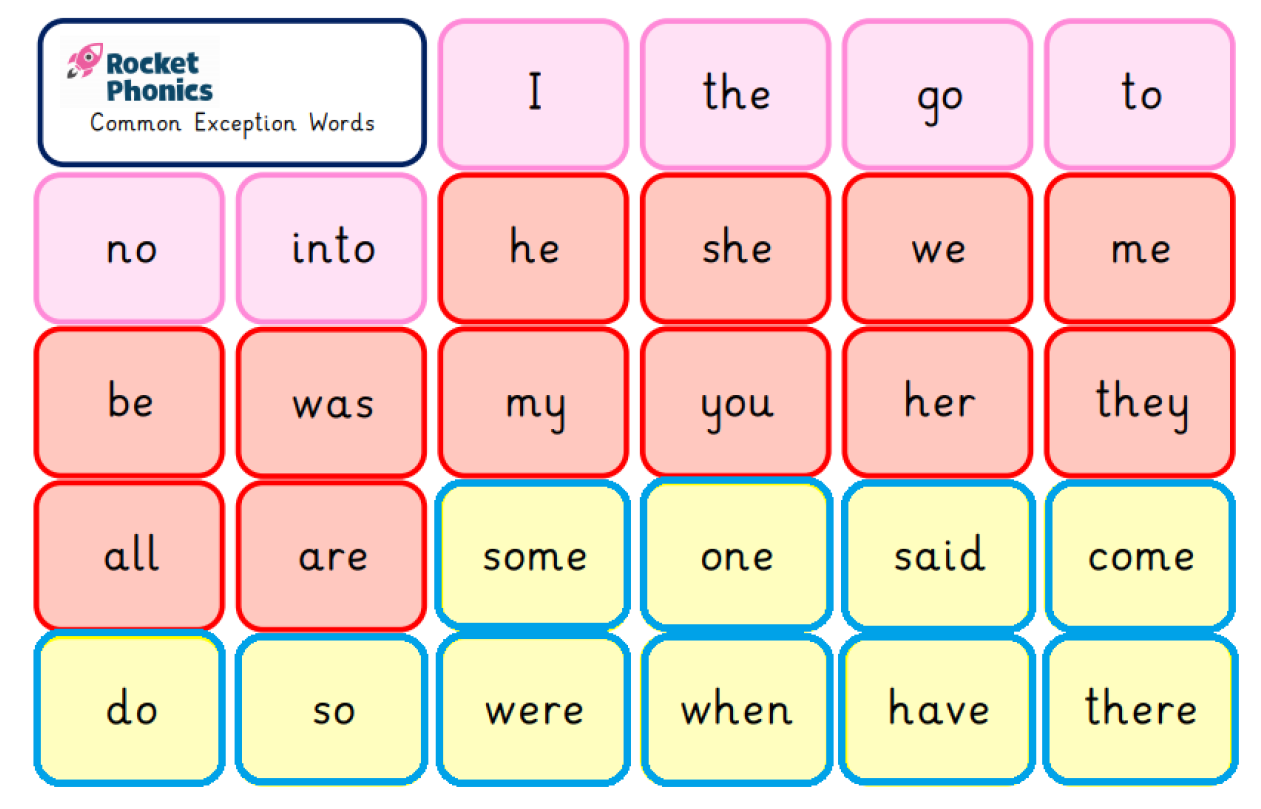 The most important thing you can do with your child is listen to them read and find the time to share books together. Below you can find the video links to all of the sounds covered in the rocket phonics books. As a guide, your child should be on yellow books in the Autumn term and green or orange books by the end of the summer term. Please also find a document with the common exception words below.