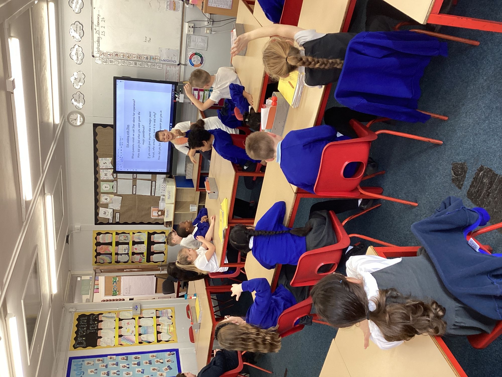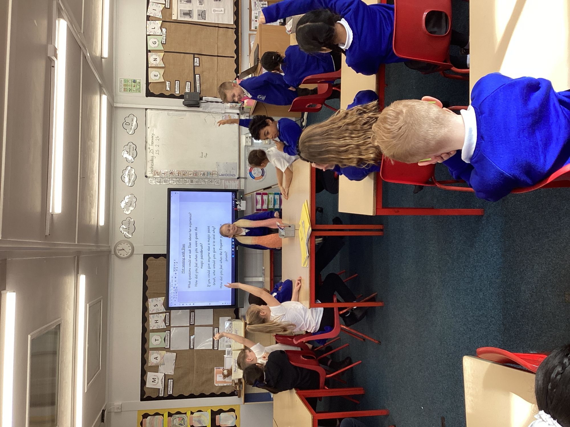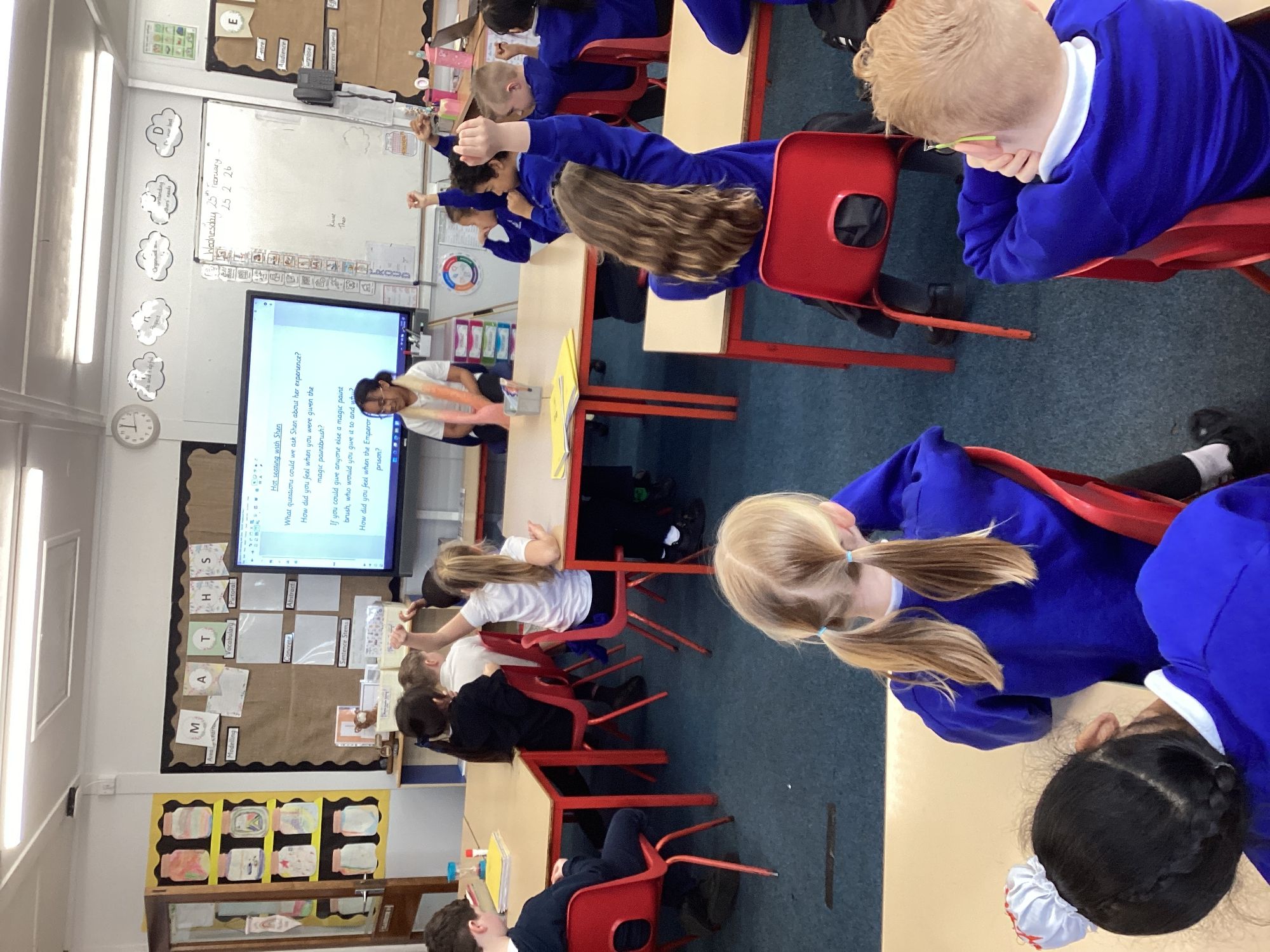 In Maths, we have begun diving into fractions. In English, the children are enjoying The Magic Paintbrush. They particularly loved our hot‑seating session, stepping into the shoes of some of the main characters to deepen their understanding and bring the story to life.