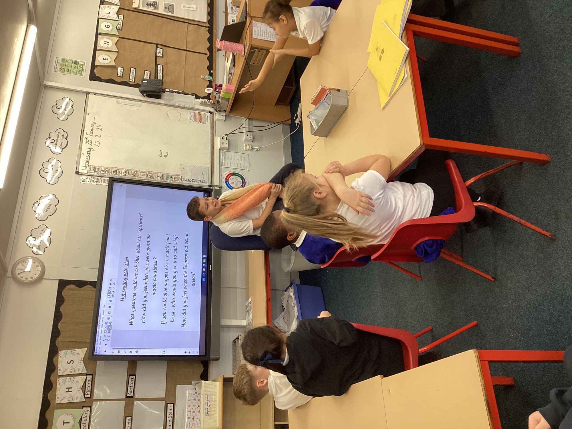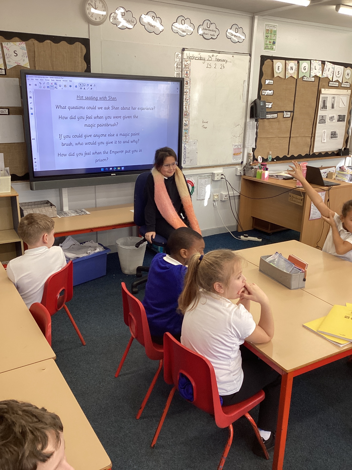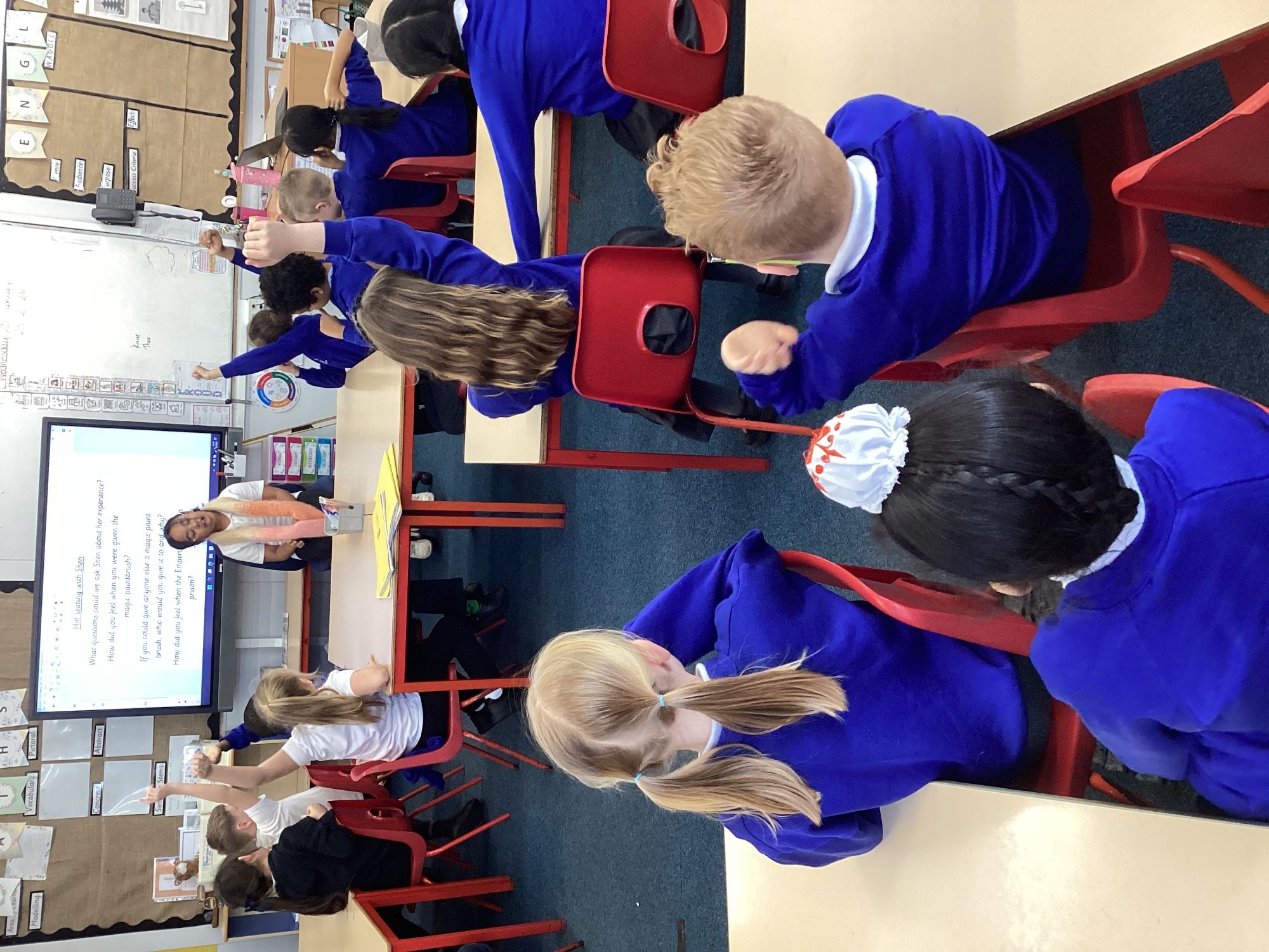 In Maths, we have begun diving into fractions. In English, the children are enjoying The Magic Paintbrush. They particularly loved our hot‑seating session, stepping into the shoes of some of the main characters to deepen their understanding and bring the story to life.