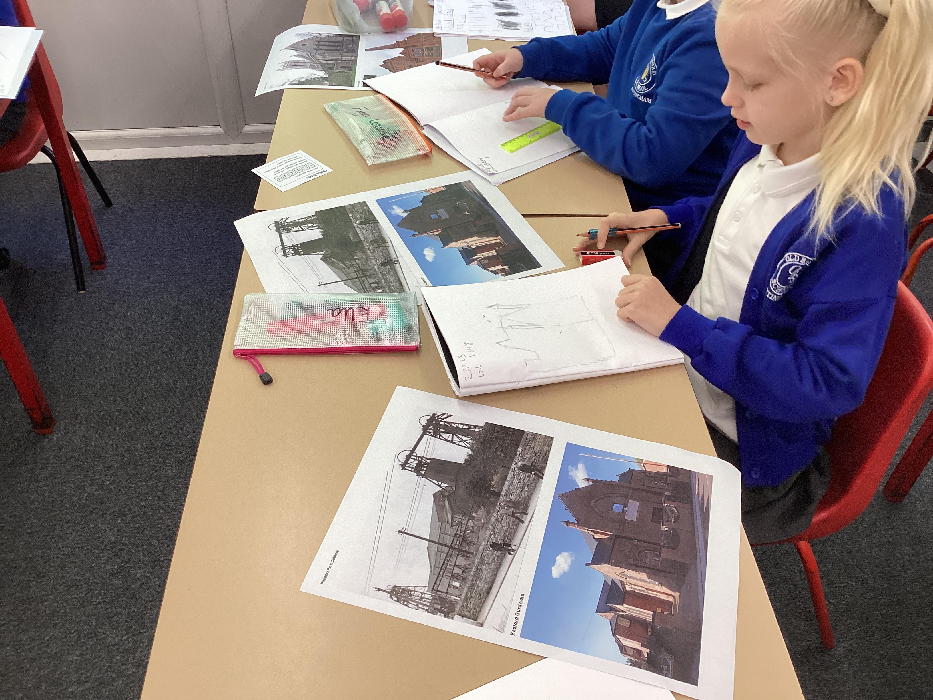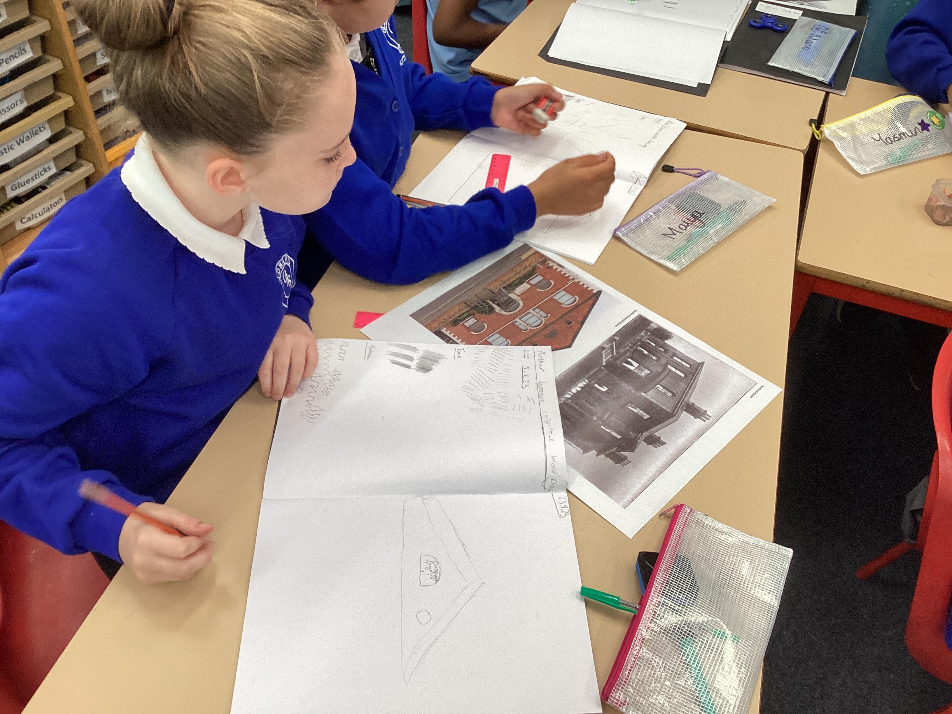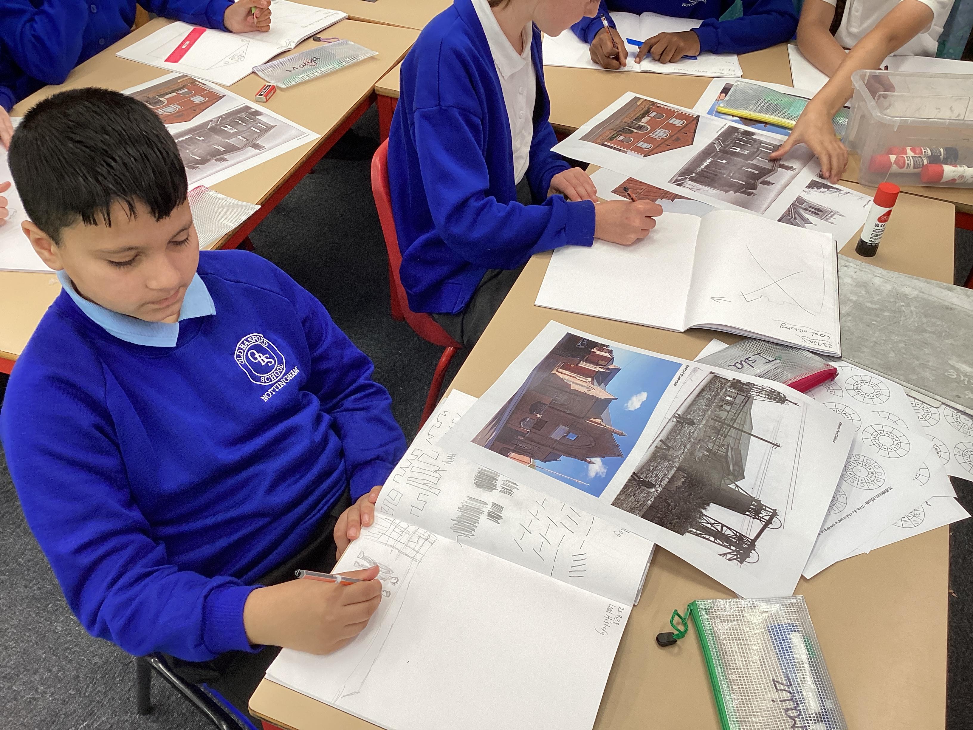 This morning, Year 5 created our very own tour of the local area. As well as sketching historical buildings in Old Basford like Basford House and St. Leos church, we also went outside to find out facts about them.