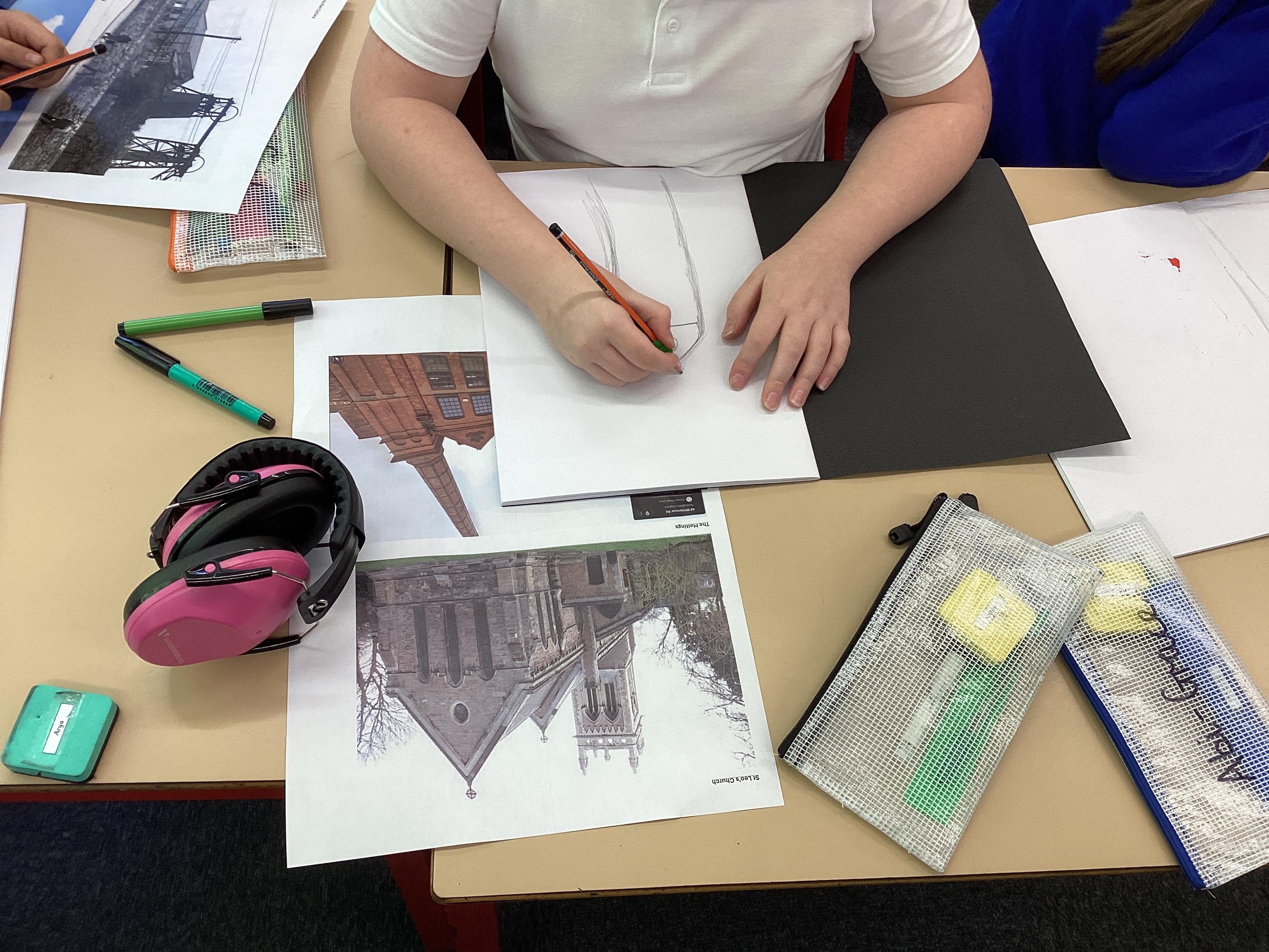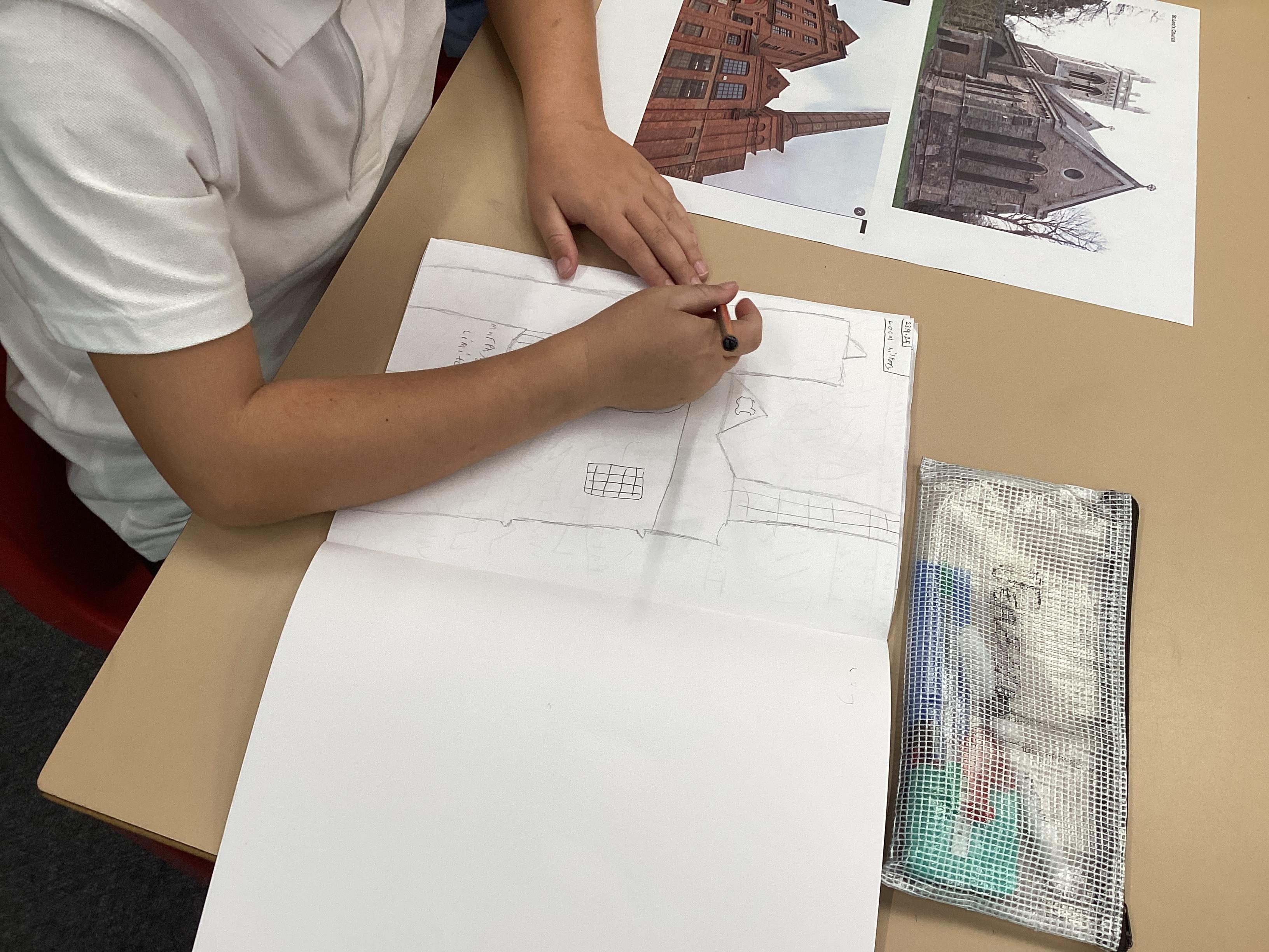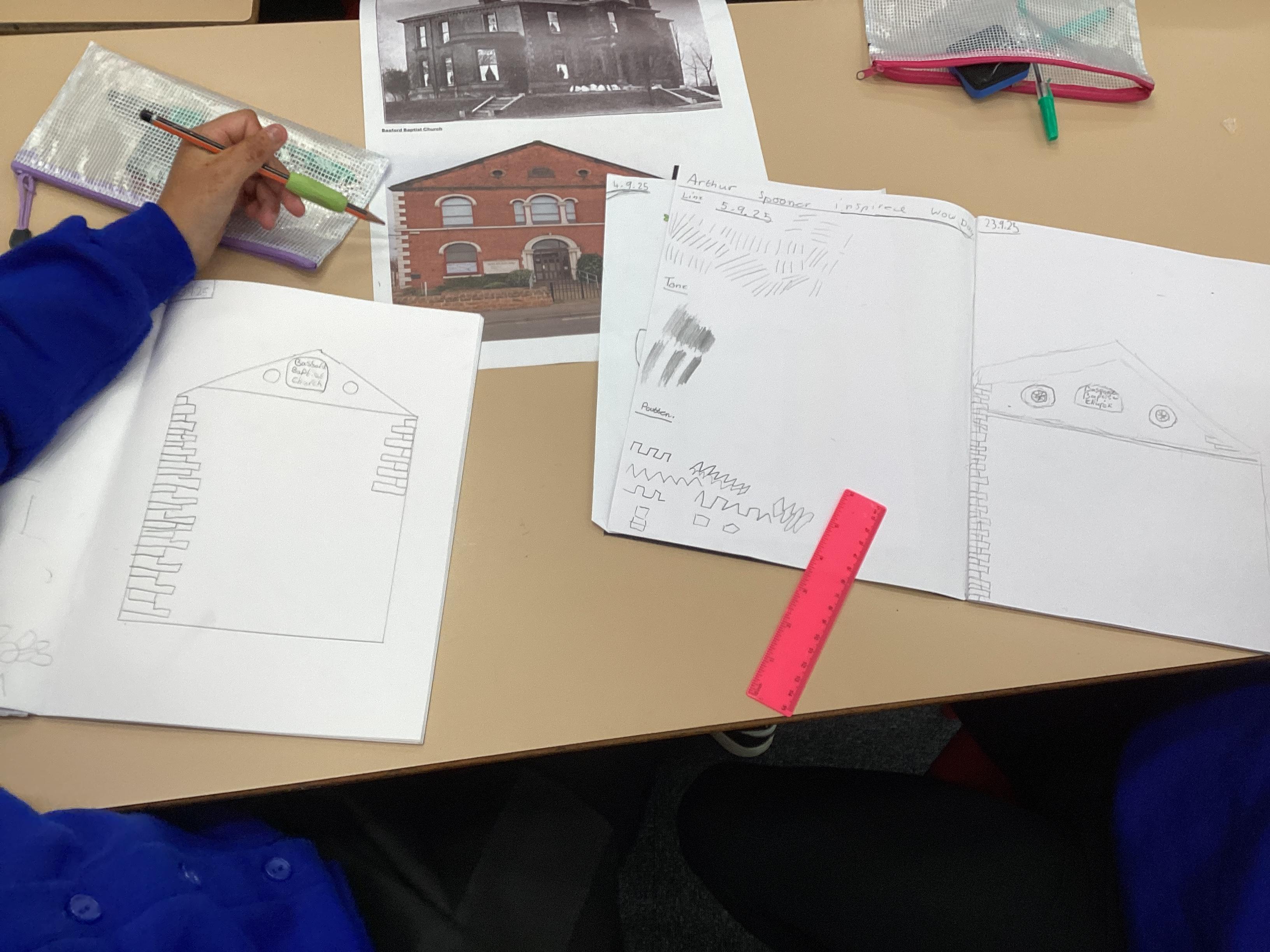 This morning, Year 5 created our very own tour of the local area. As well as sketching historical buildings in Old Basford like Basford House and St. Leos church, we also went outside to find out facts about them.