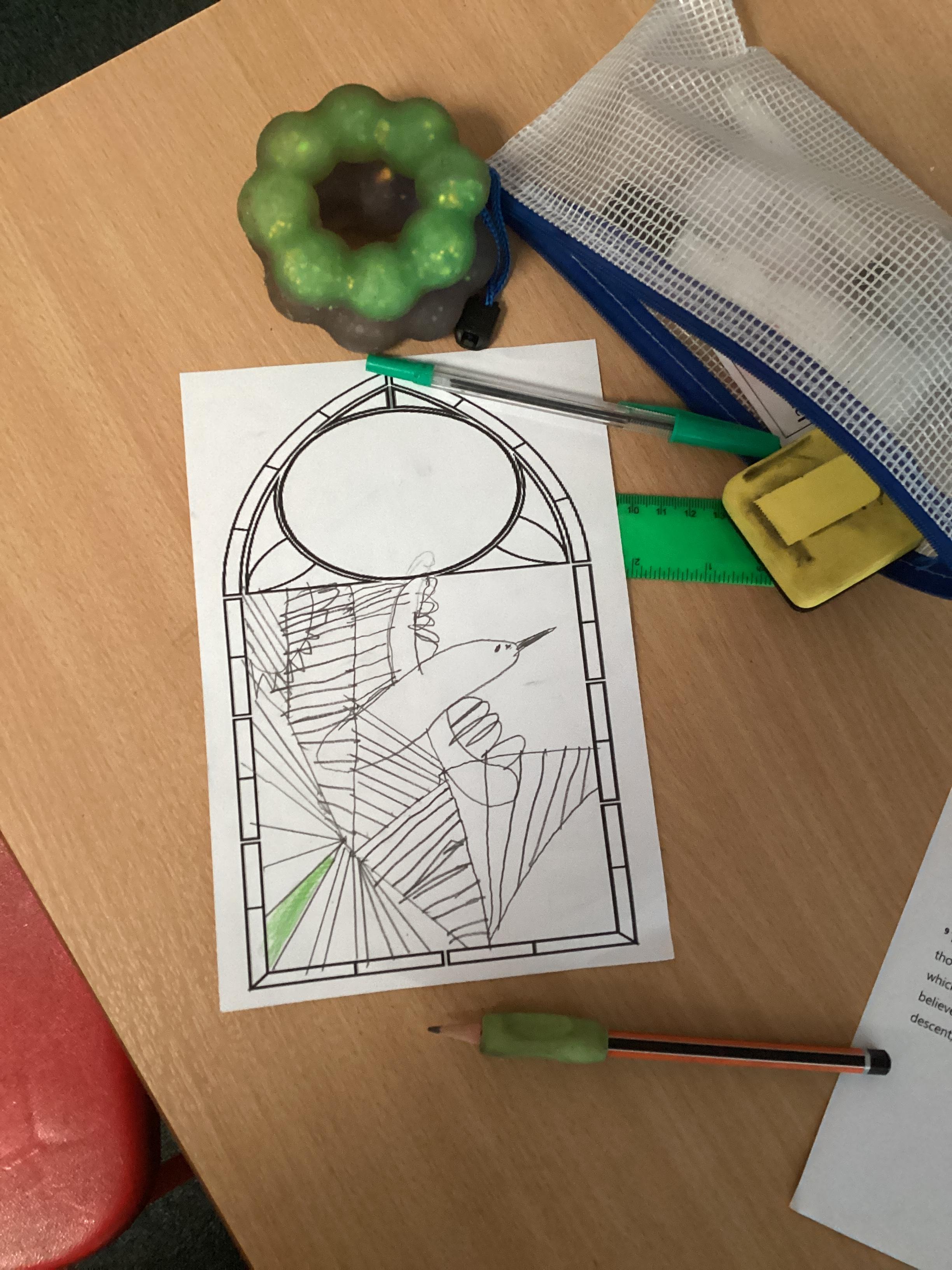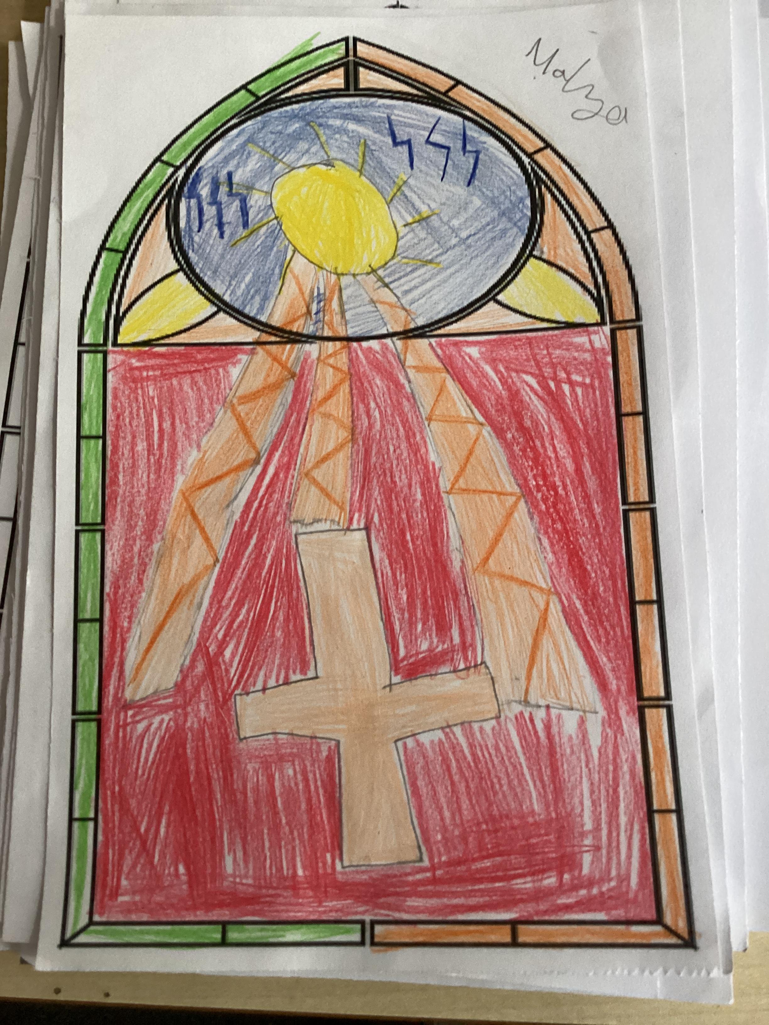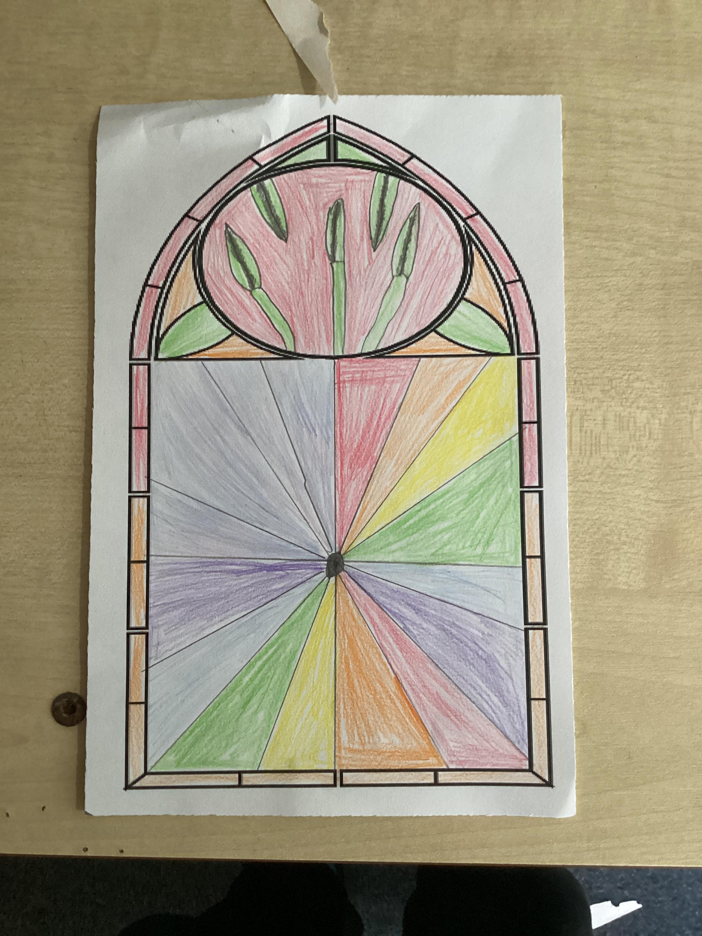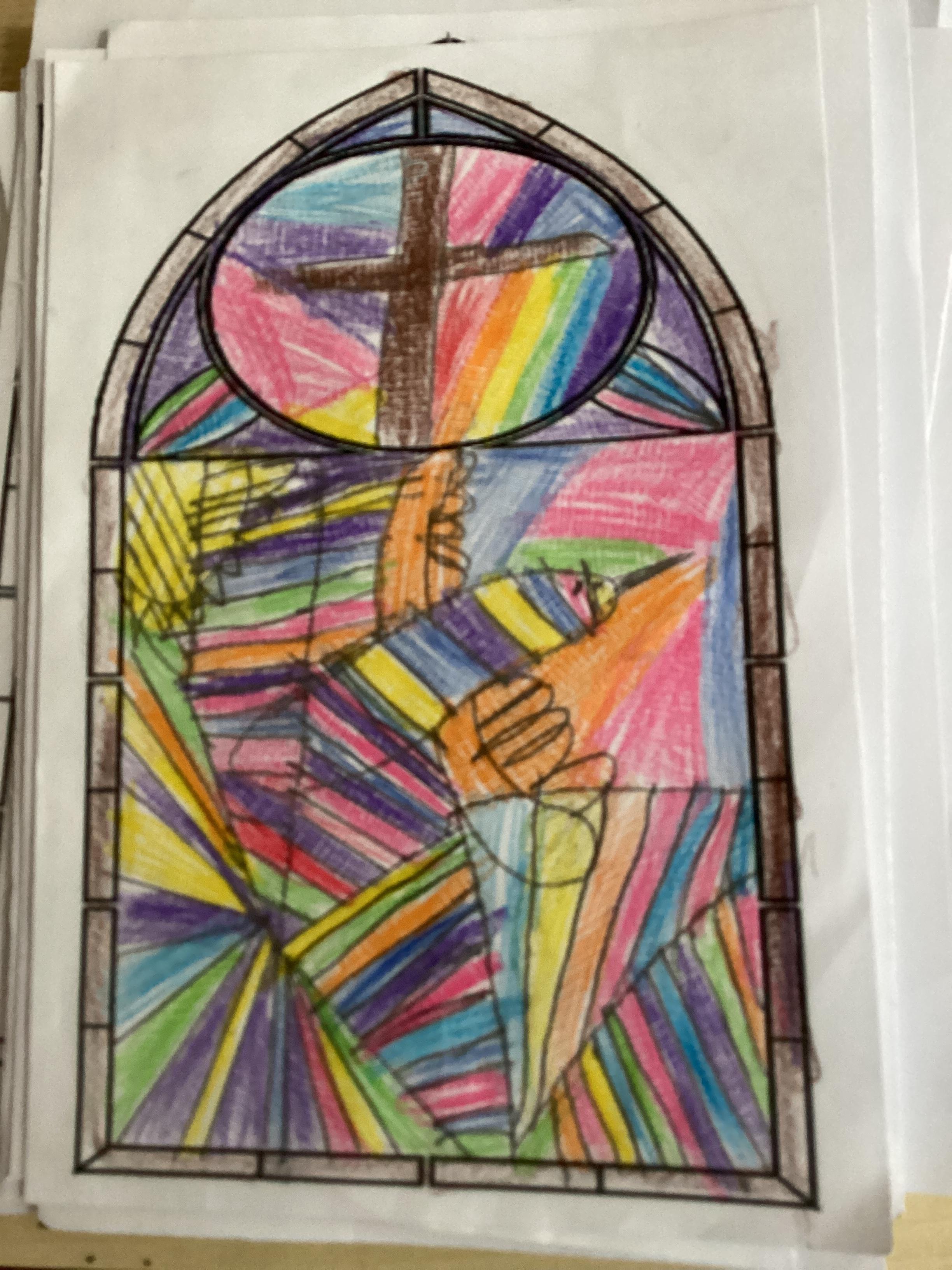 This afternoon, we looked at how Christianity is shown in a variety of artwork before creating our own design for a stained-glass window.