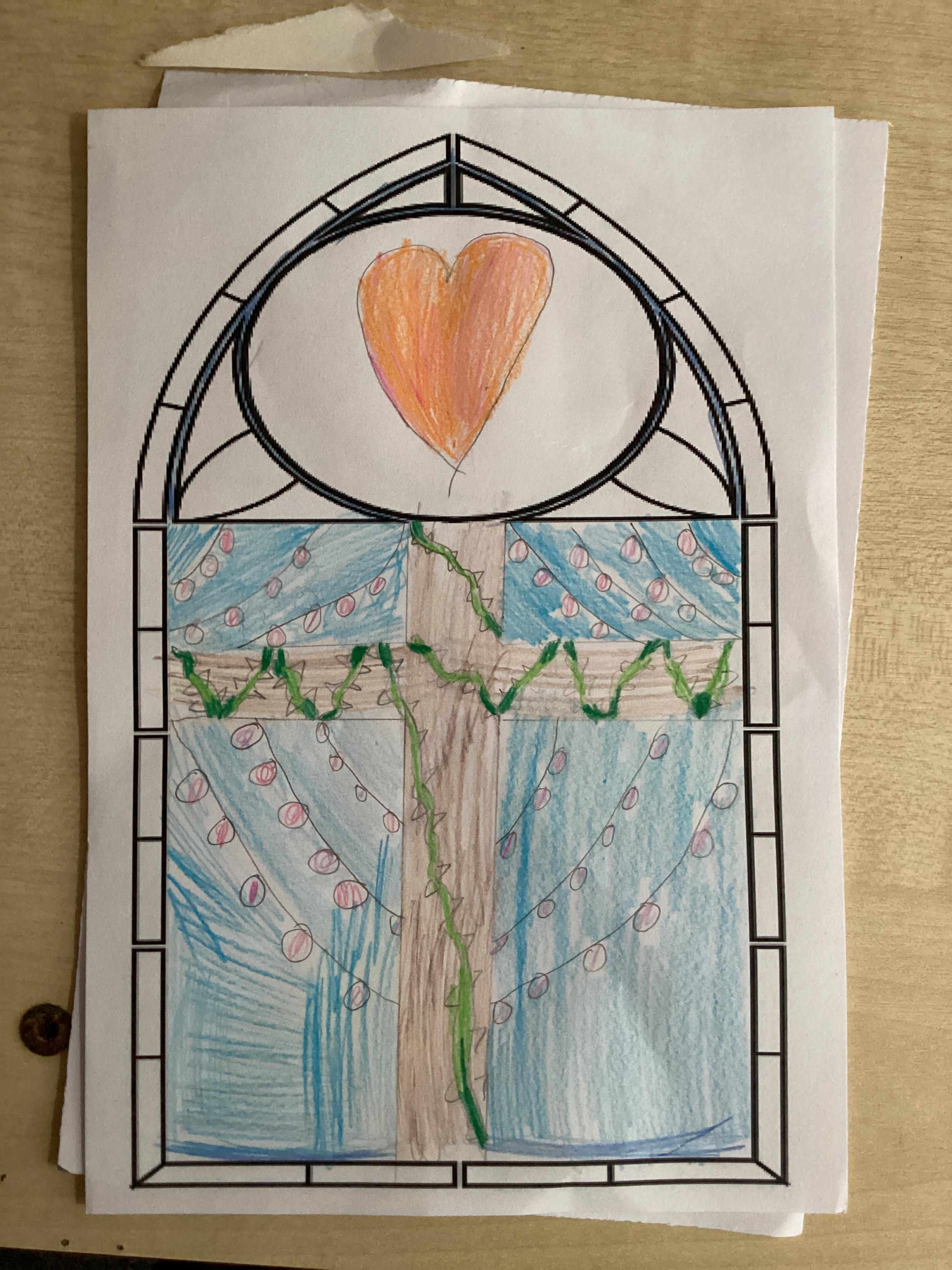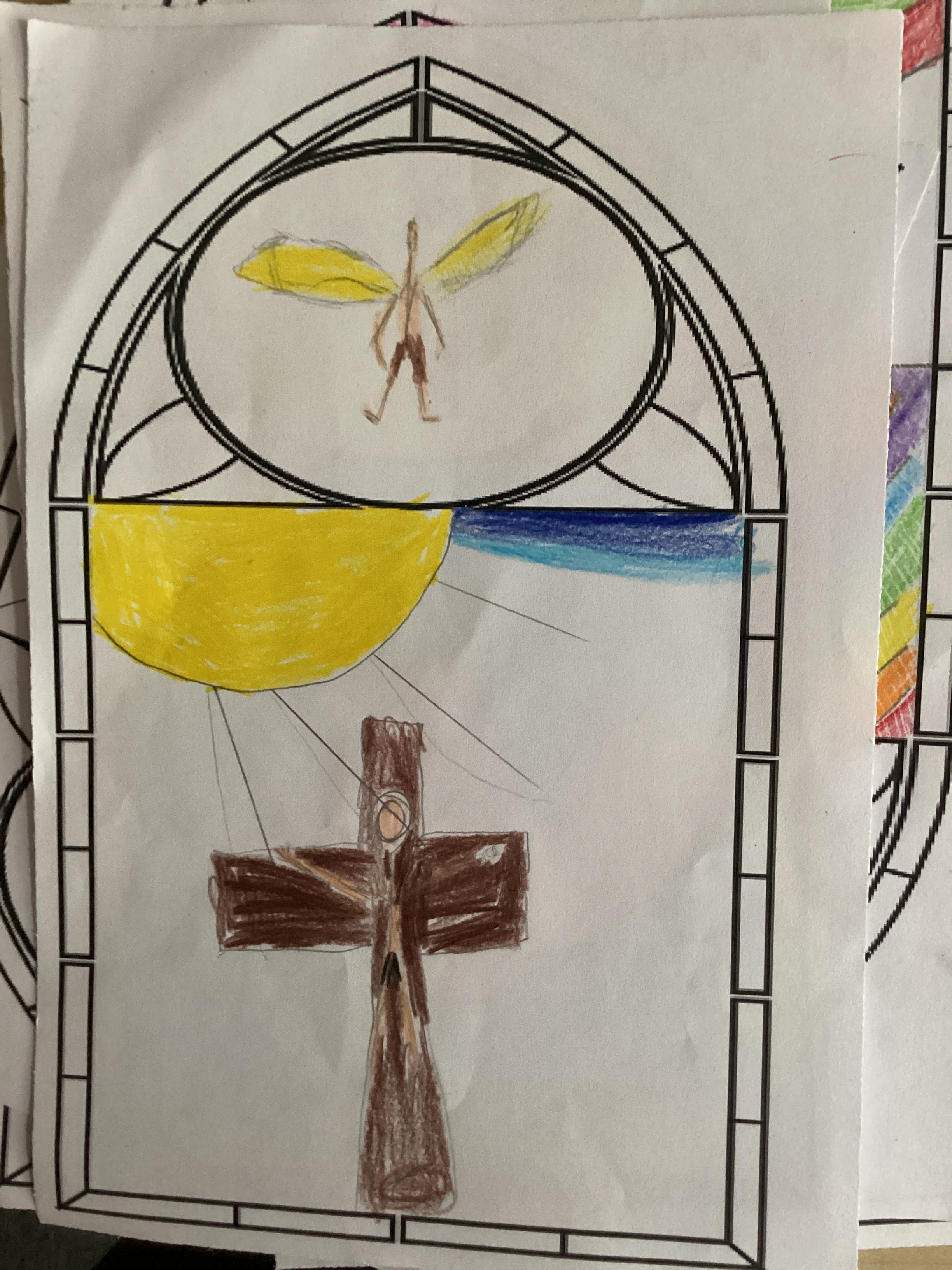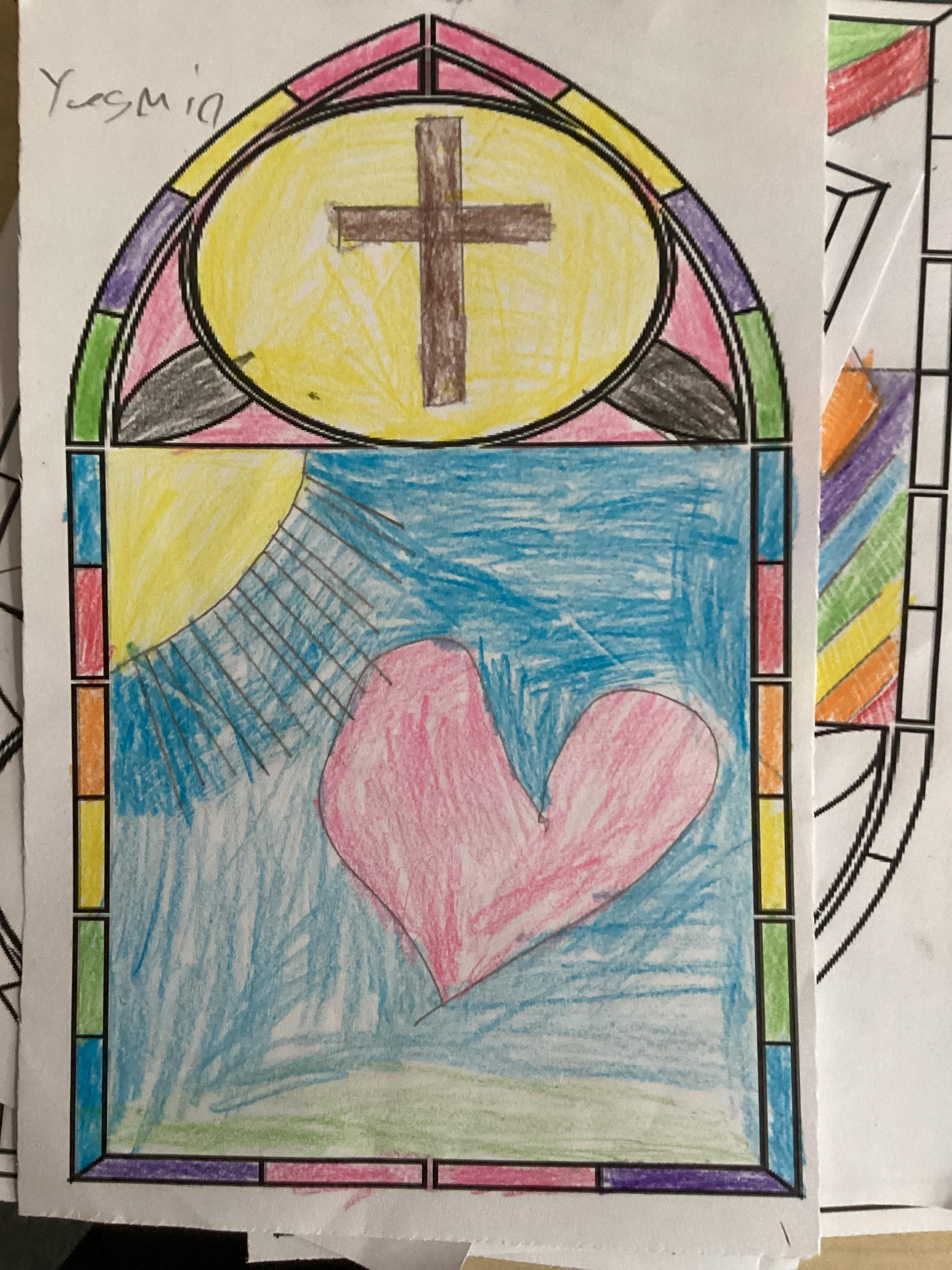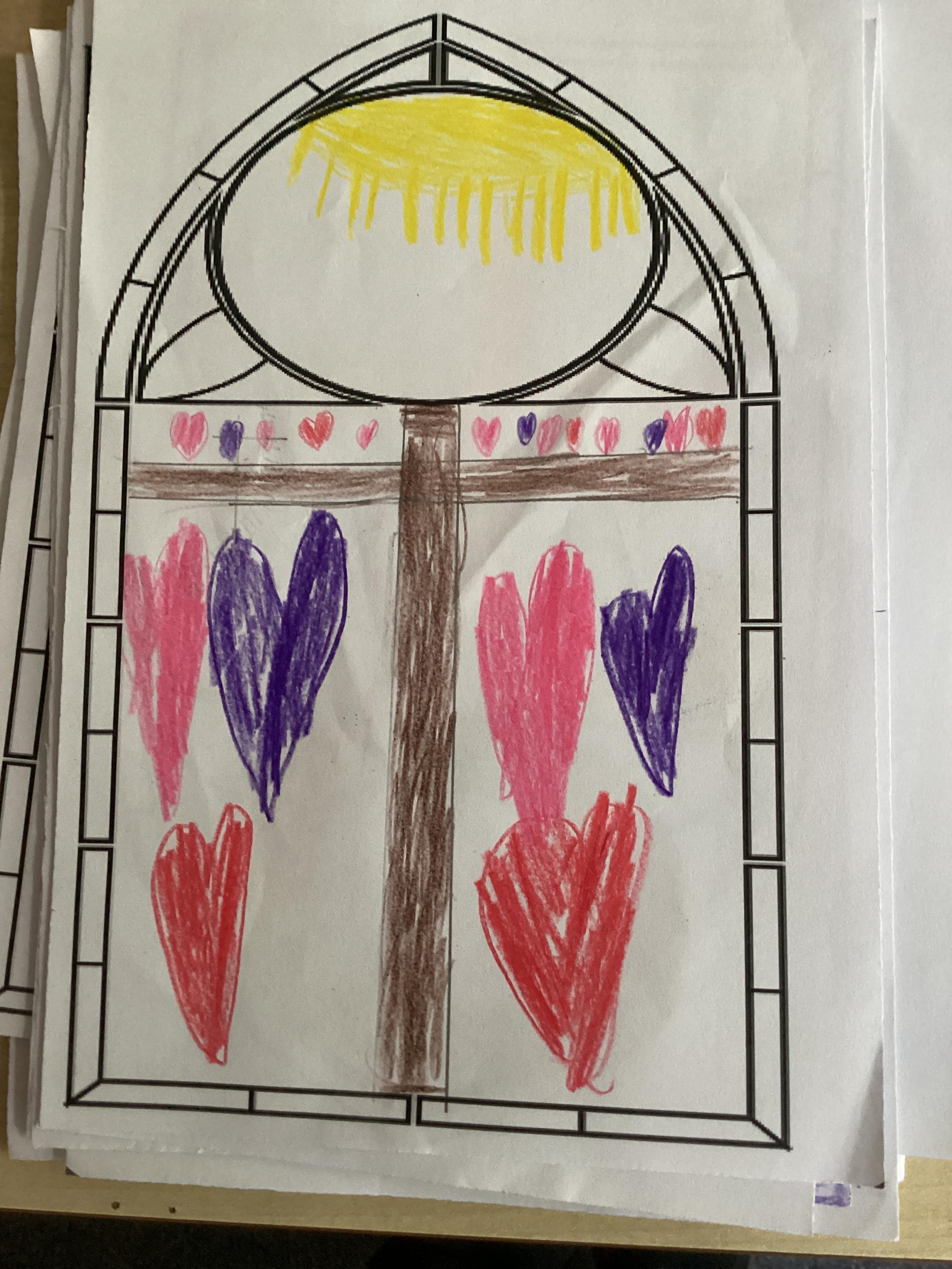 This afternoon, we looked at how Christianity is shown in a variety of artwork before creating our own design for a stained-glass window.