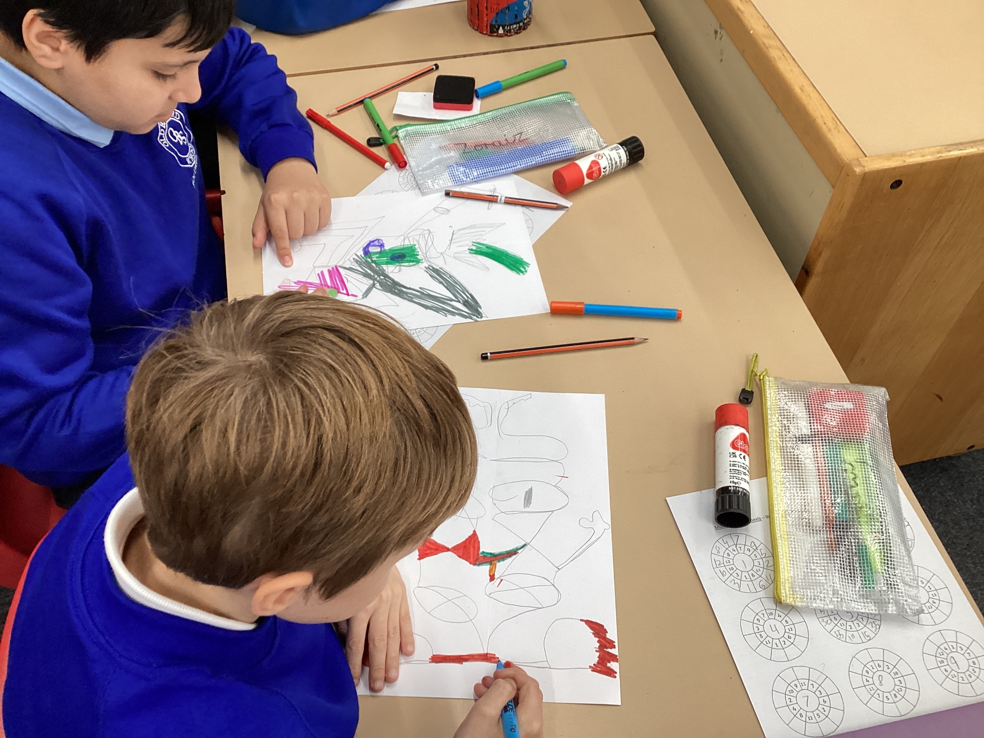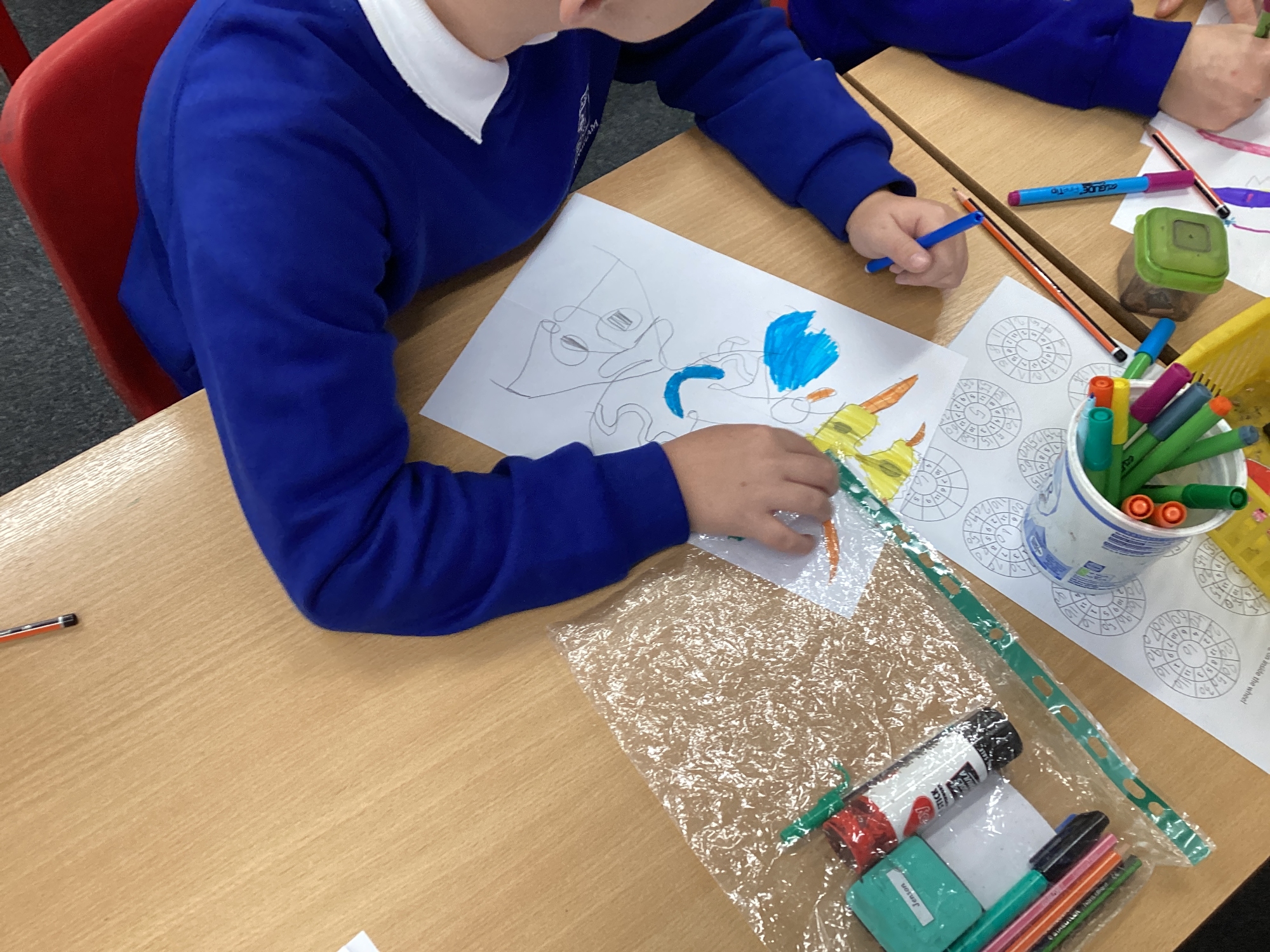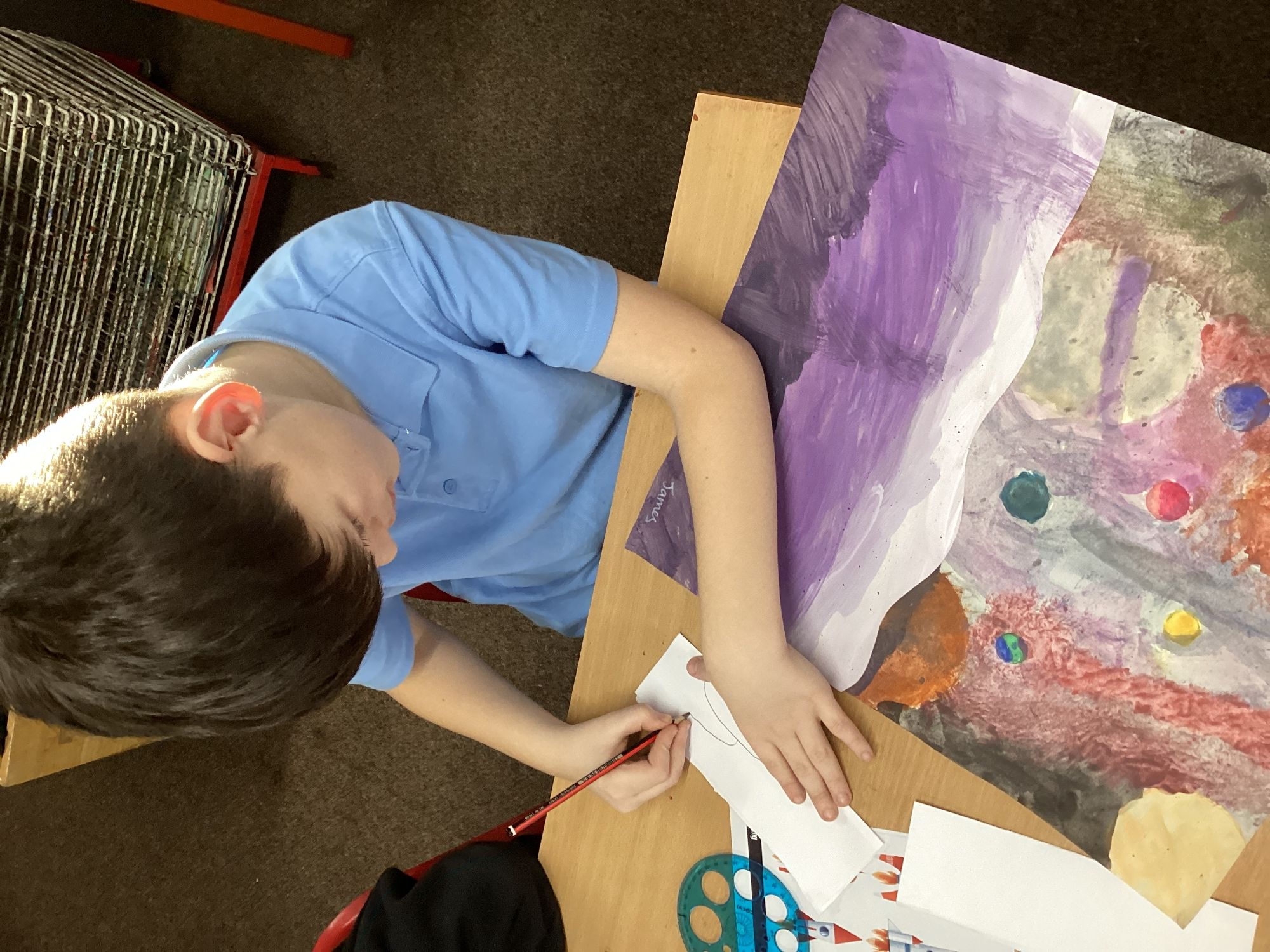 This afternoon, Year 5 continued their amazing art with Mrs Maker. After drawing our planets, we used watercolours, brushes, and sponges to add lots of fantastic patterns and colours to our paintings. We can’t wait to carry on next week!