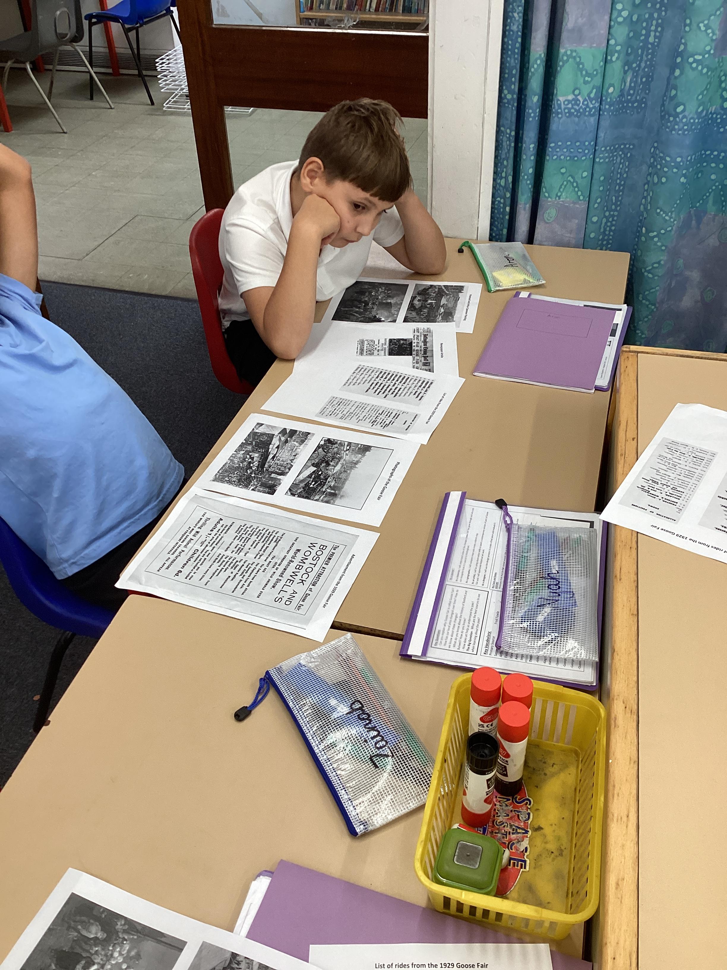 As part of our local history topic, we learned about how the Goose Fair has changed over time by looking at a variety of historical sources, such as newspapers, videos, photographs and more.