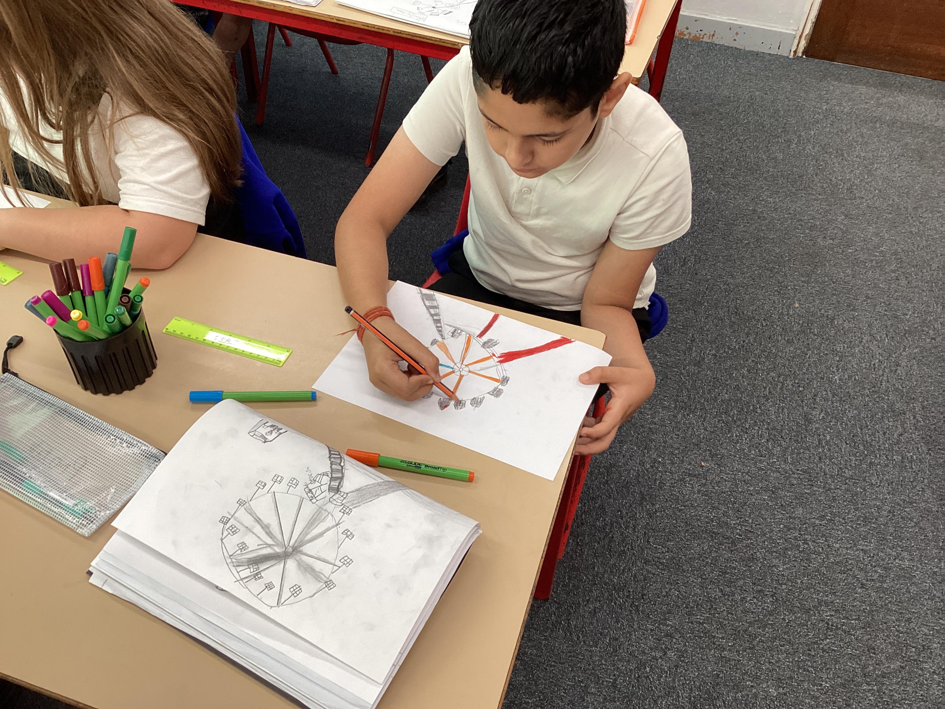We have had a super start to the new school year in Year 5. We have been thinking about the school rules, our aspirations for this year and how we can achieve more when we work together as a team. We have also had our first Wow day of the year. We looked at Arthur Spooner's painting, 'The Goose Fair, Nottingham' and have researched different rides at Goose Fair. We went onto design our own fairground ride, thinking about the artistic skills of using different tones, patterns and colours. A great first week in Year 5, well done to all of the children.